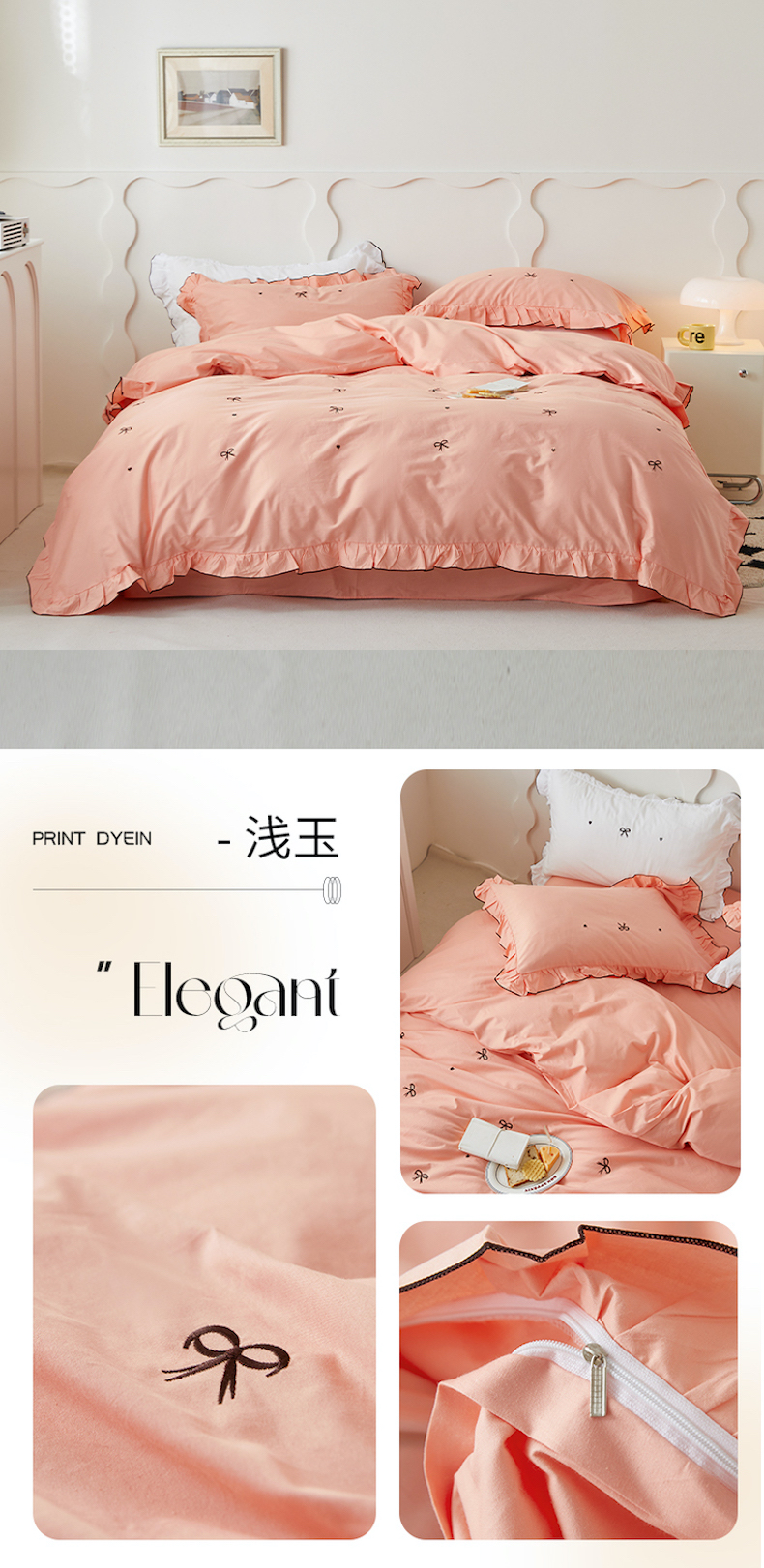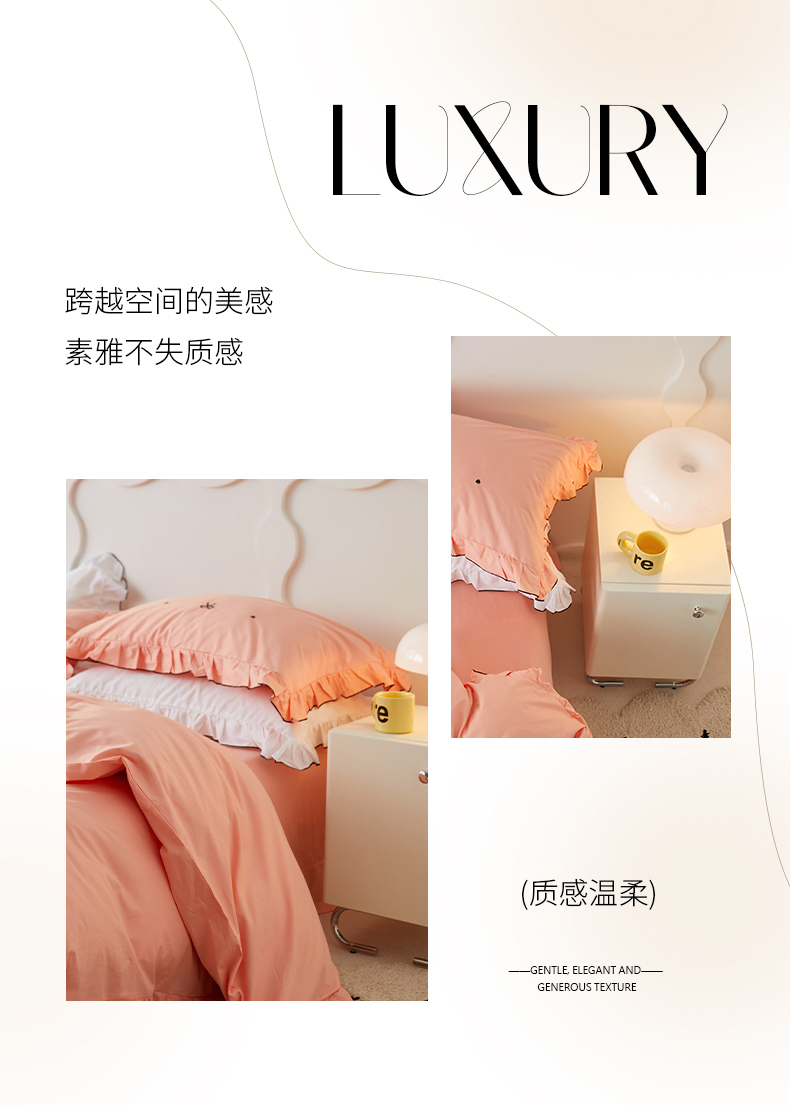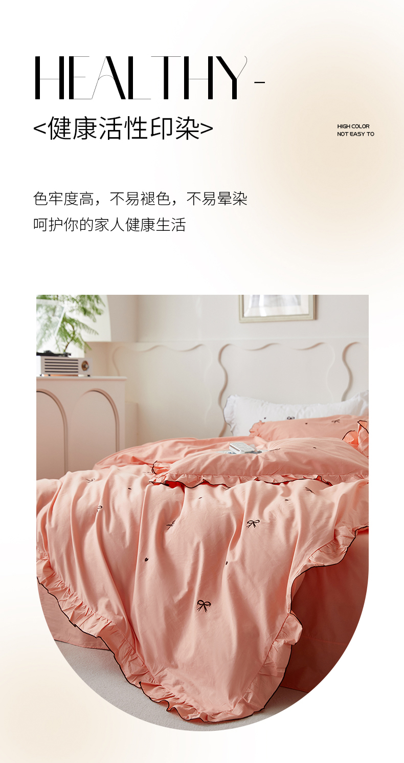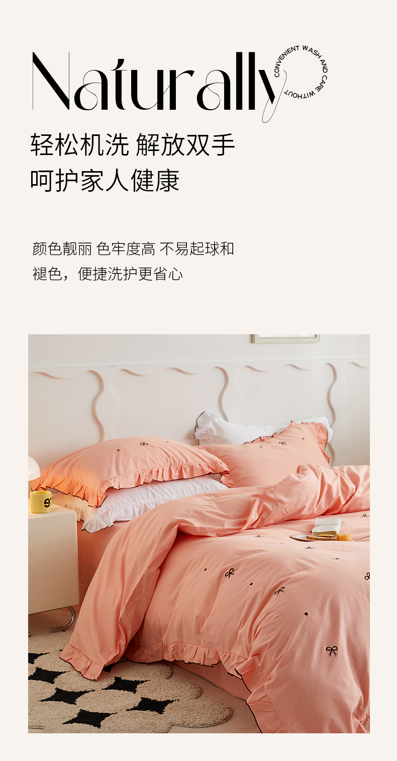 (总)梦可莱 2024新款亲肤刺绣荷叶边四件套-心灵迷恋,豆沙,奶油粉,奶油黄,牛油果绿,清新绿,香芋紫