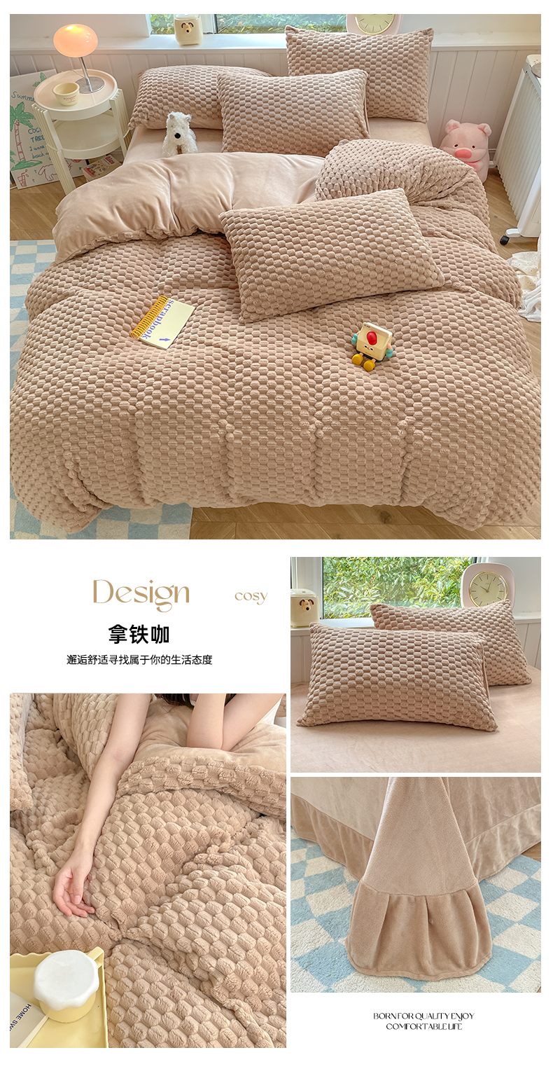 当前位置: 91家纺网 > 商品网购 > 床品套件 > 四件套 > 牛奶绒四件套 > 欧邦 爆款A类金龟绒提花豆豆绒牛奶绒单被套四件套 拿铁咖