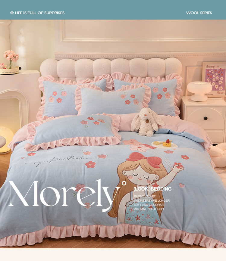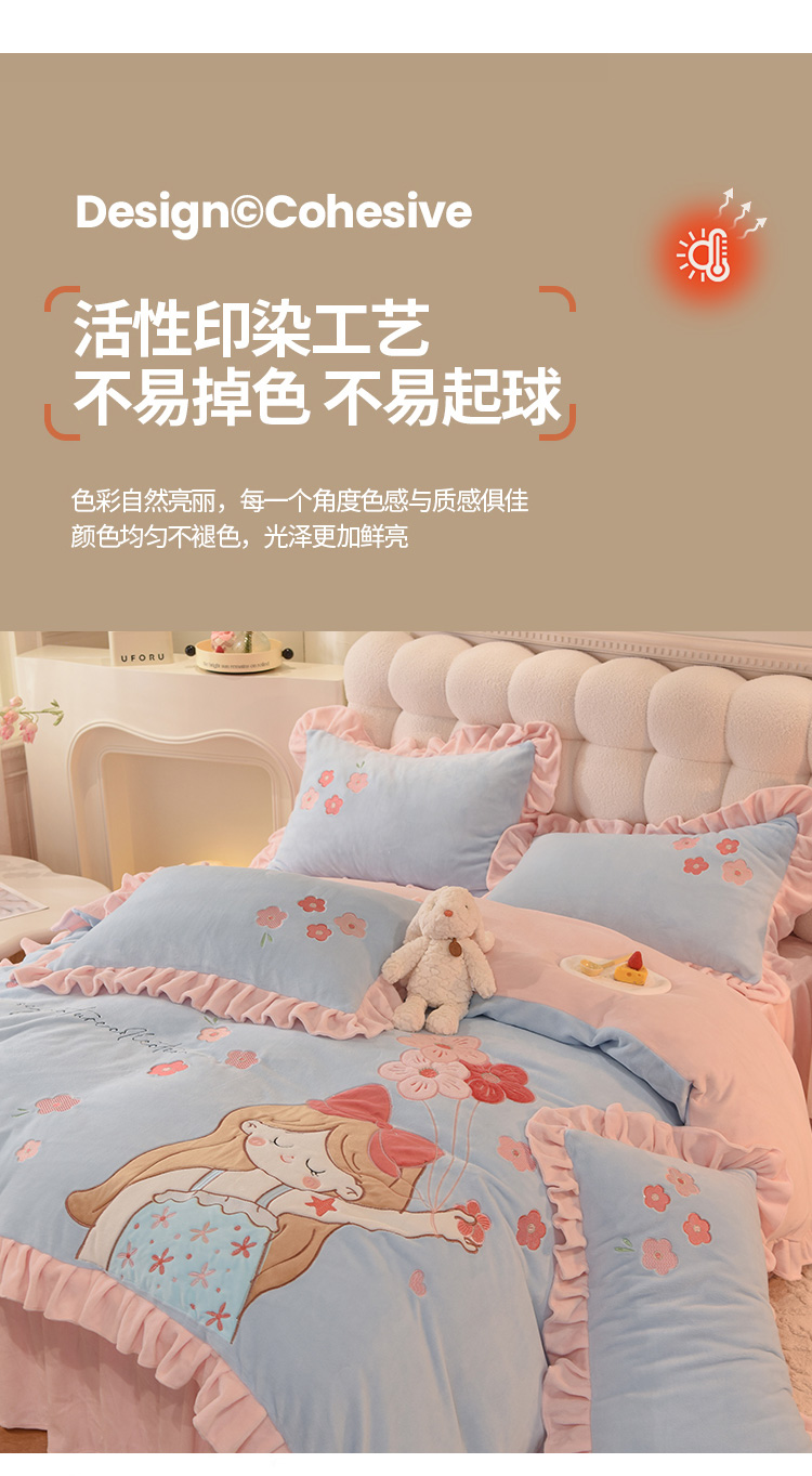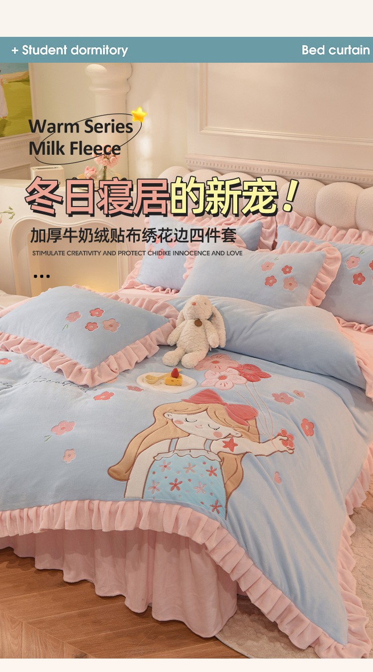 当前位置: 91家纺网 > 商品网购 > 床品套件 > 四件套 > 牛奶绒四件套 > 欧冠 2023新款高档贴布绣甜心公主牛奶绒四件套 甜心公主-蓝粉