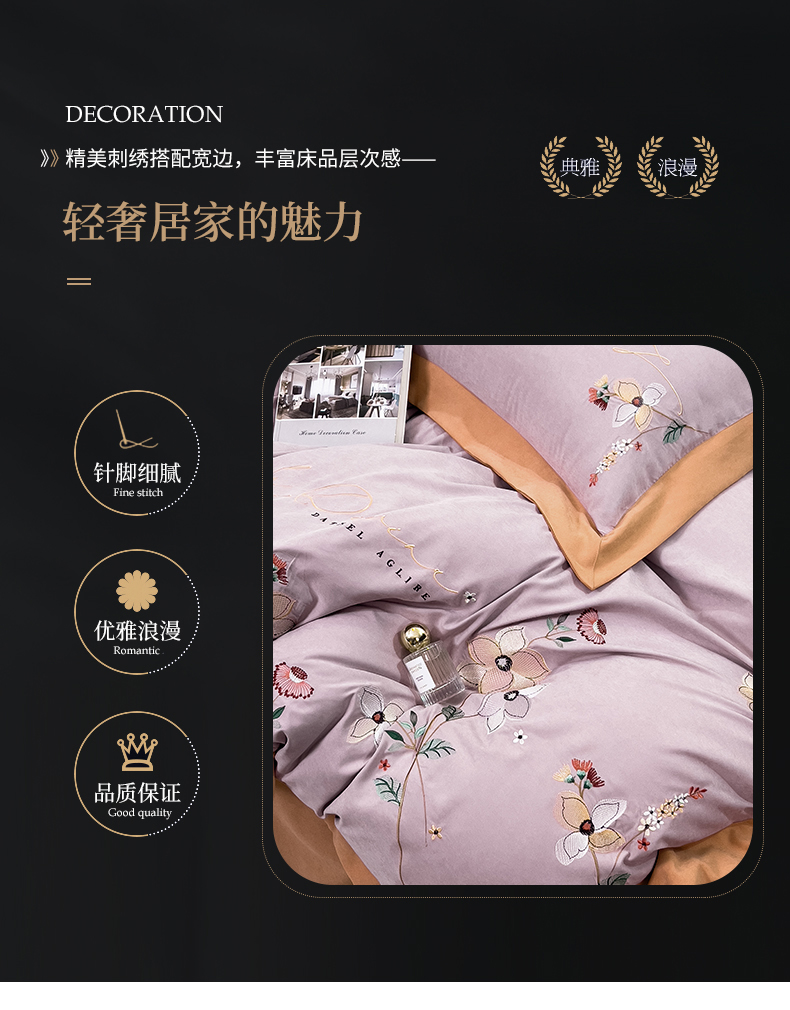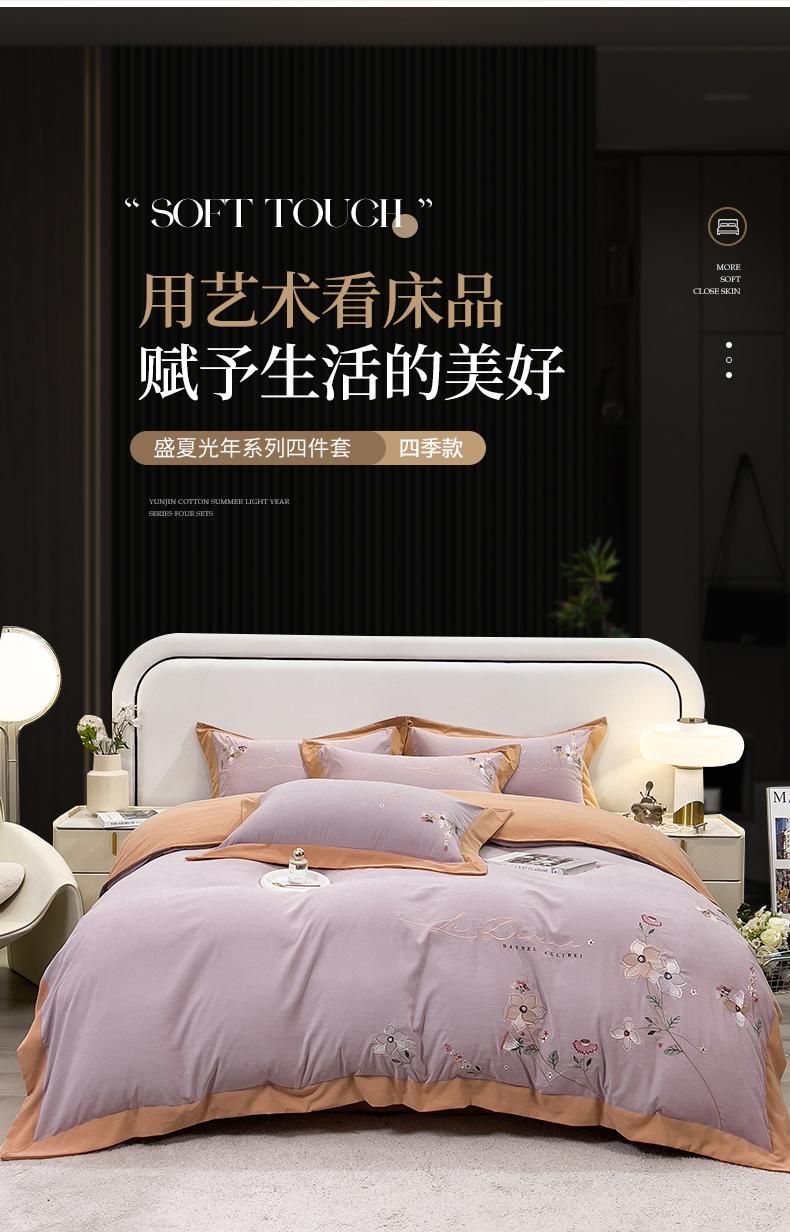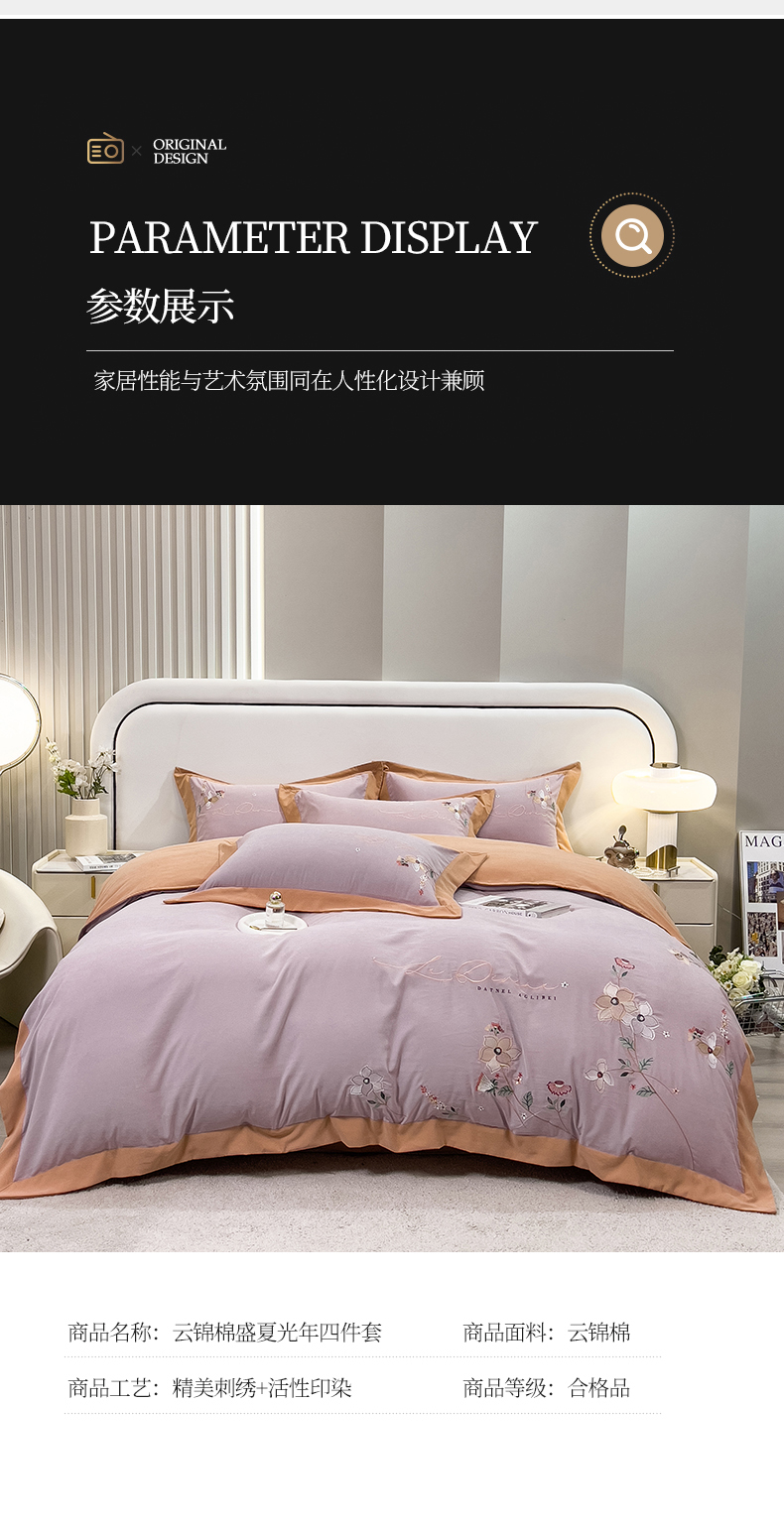 商品名称:丝印良品 2023新款秋冬保暖云锦棉刺绣宽边盛夏光年系列四件套 盛夏光年-魅紫