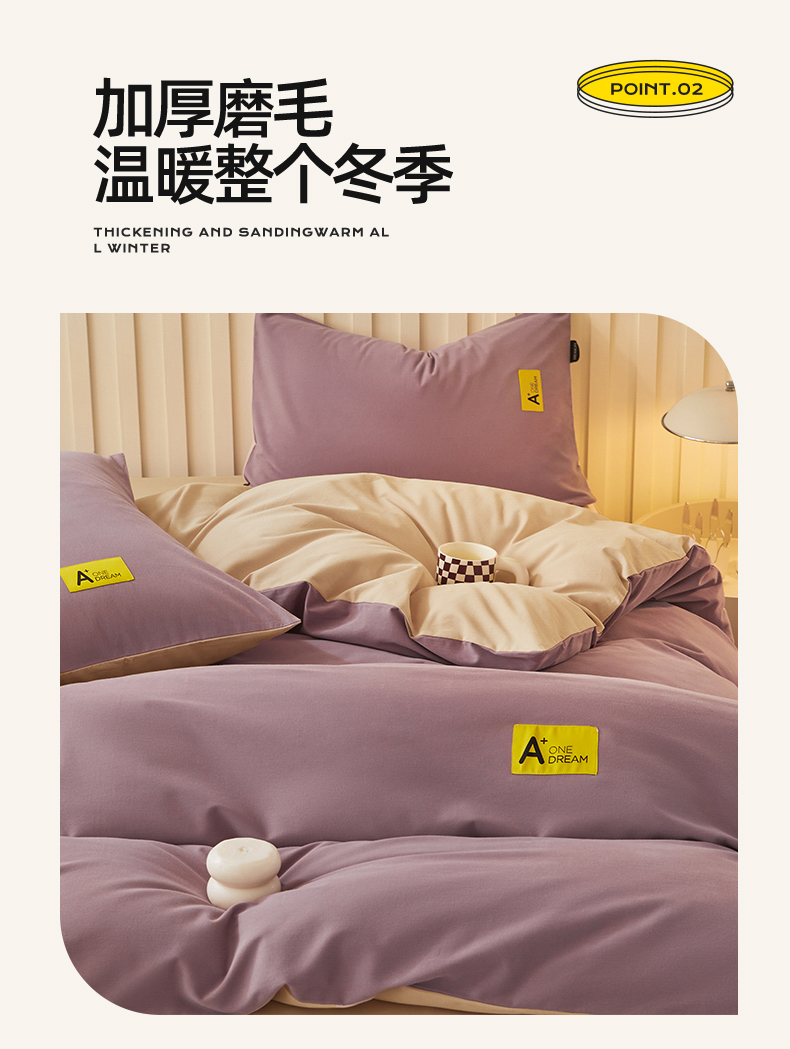 蓝米卡夫 2024秋冬全棉加厚磨毛A+四件套系列 A+沙紫