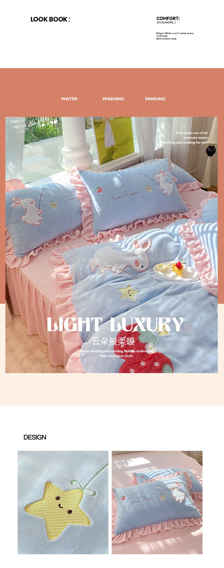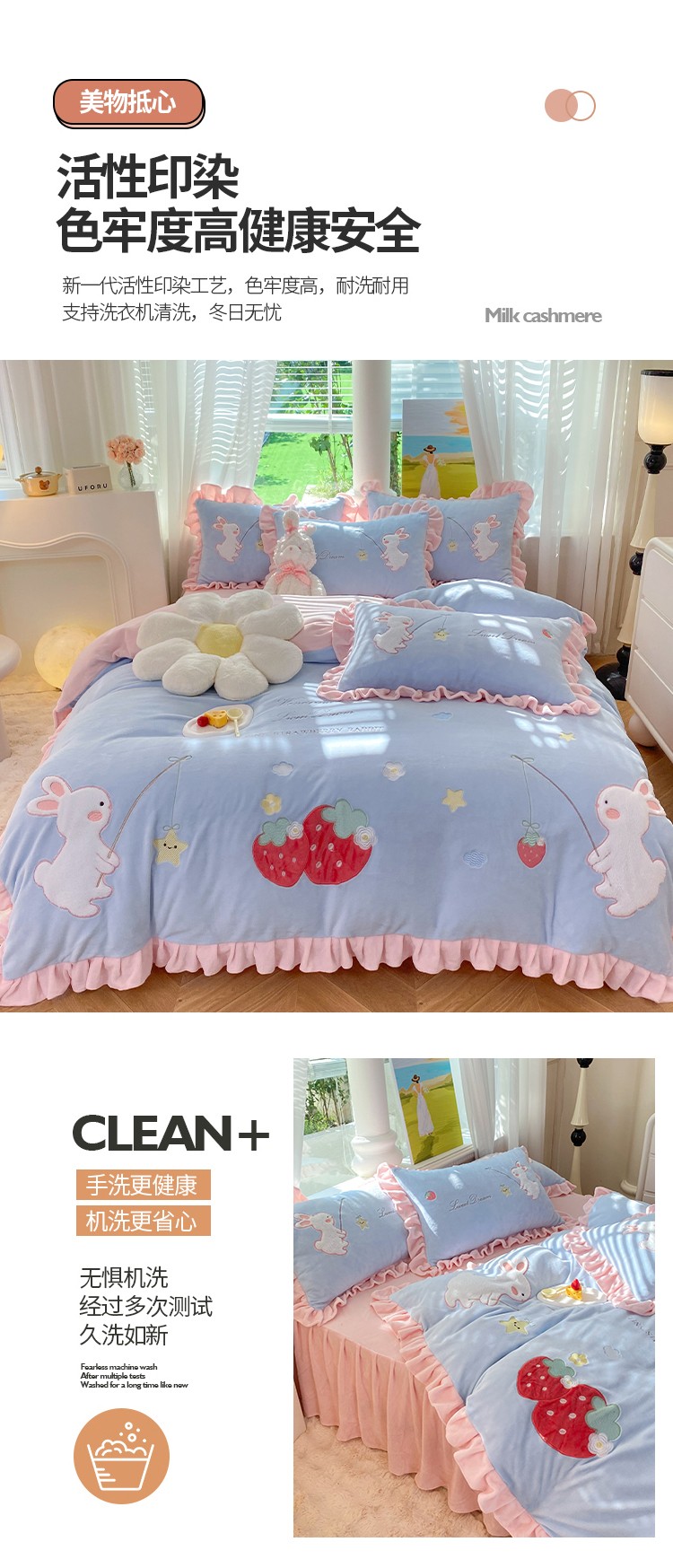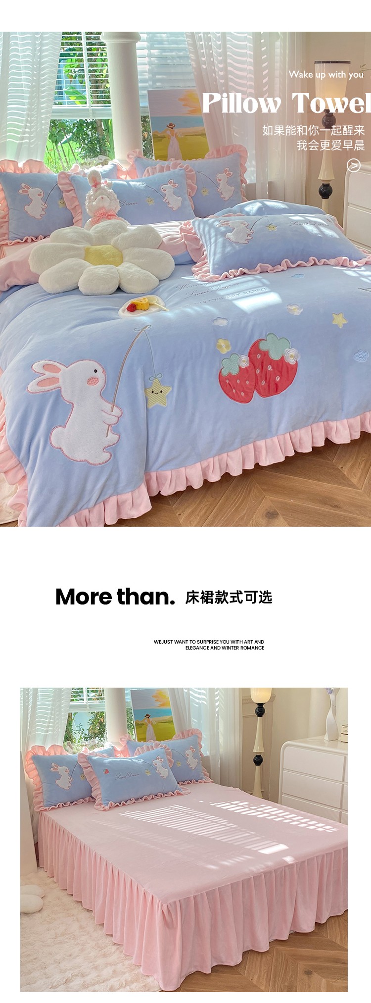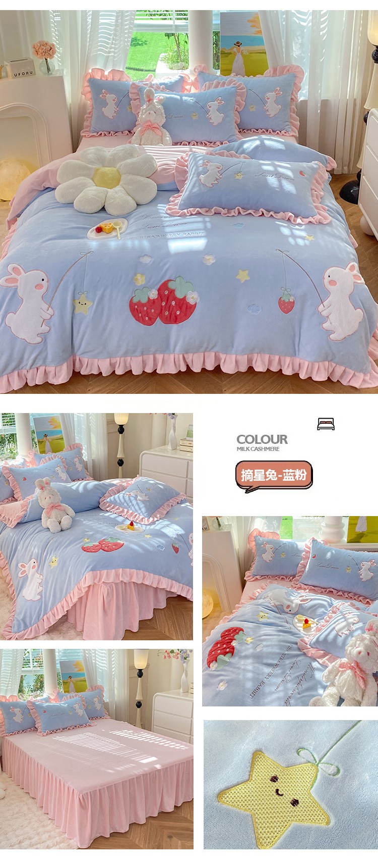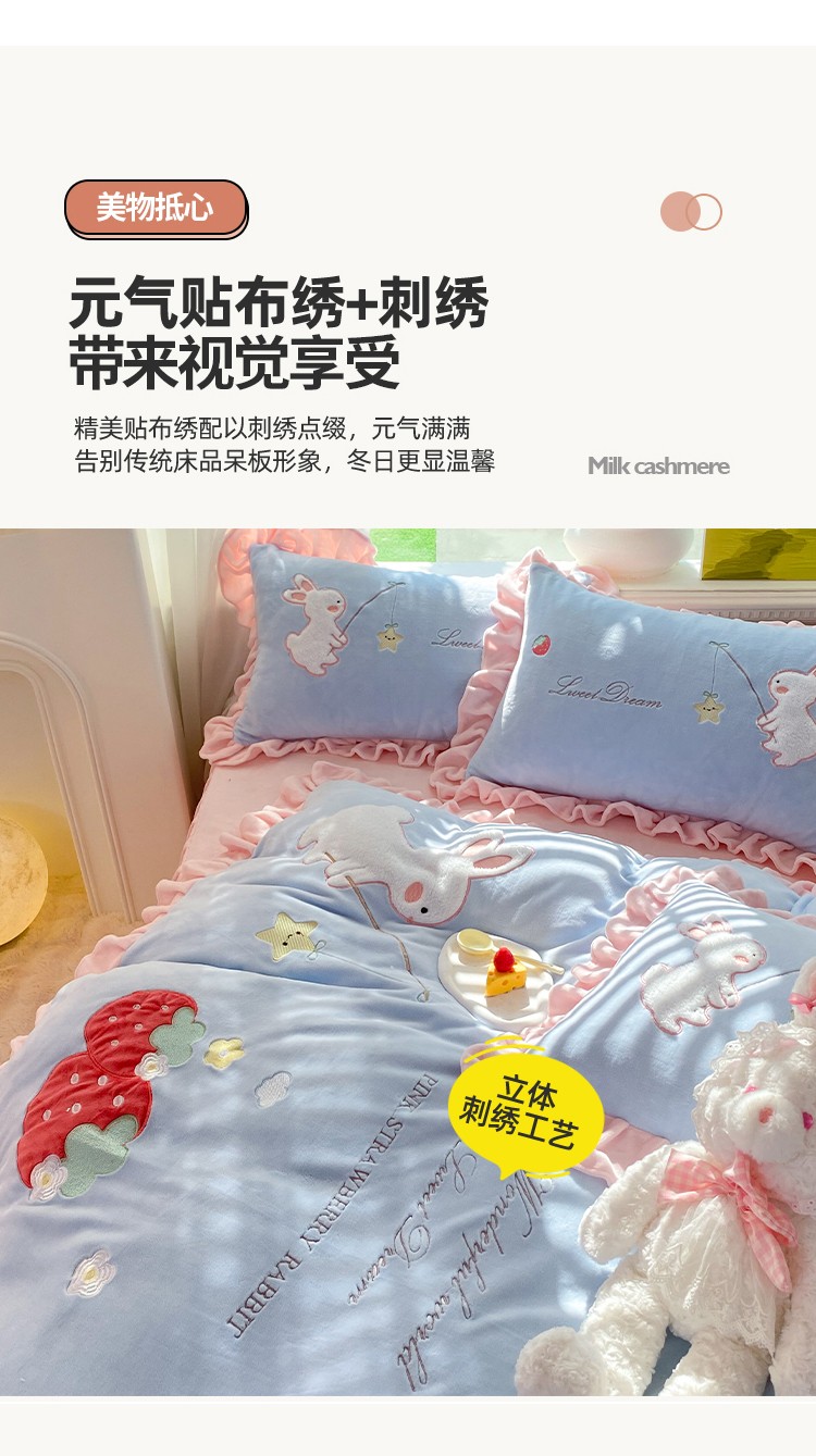 当前位置: 91家纺网 > 商品网购 > 床品套件 > 四件套 > 牛奶绒四件套 > 欧冠 2023新款牛奶绒摘星兔贴布绣牛奶绒四件套 摘星兔-蓝粉