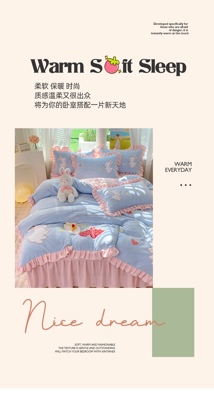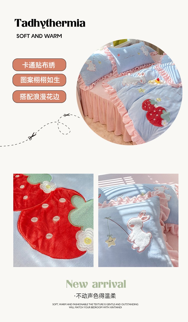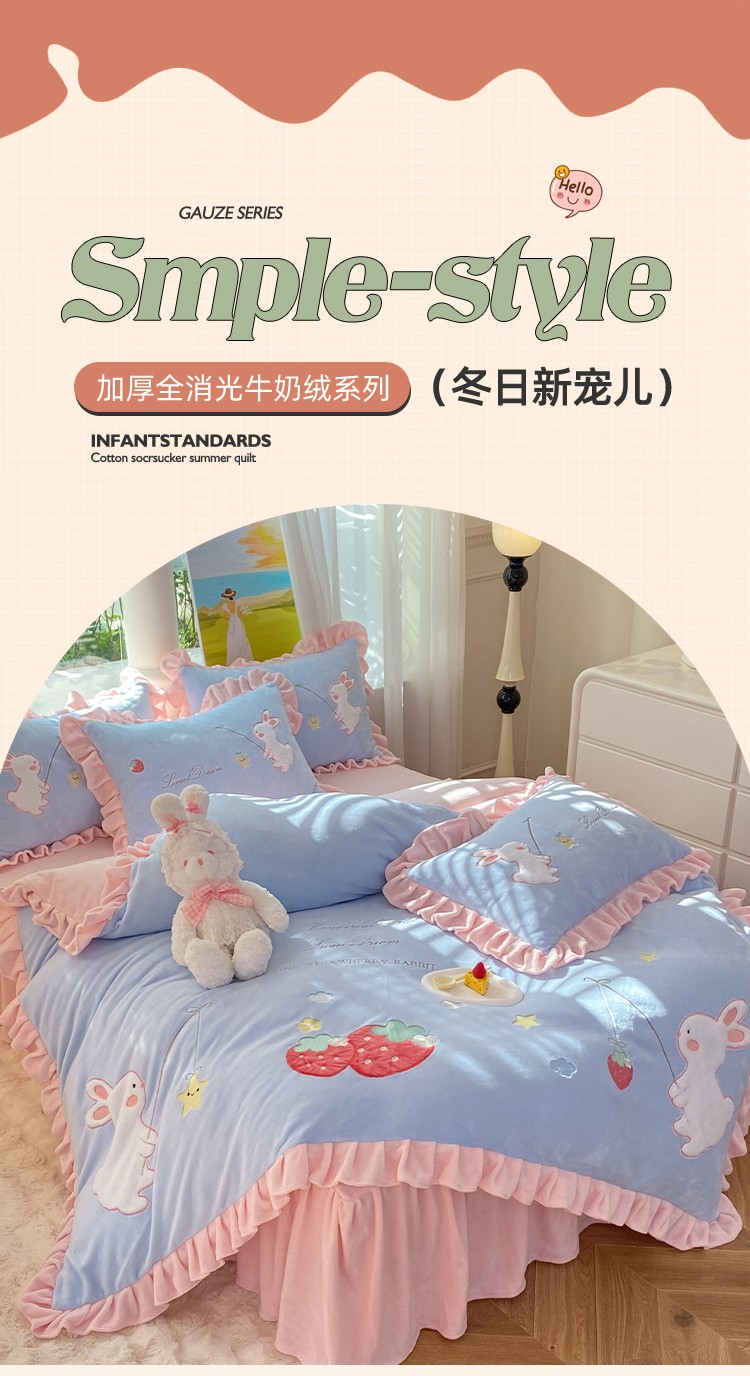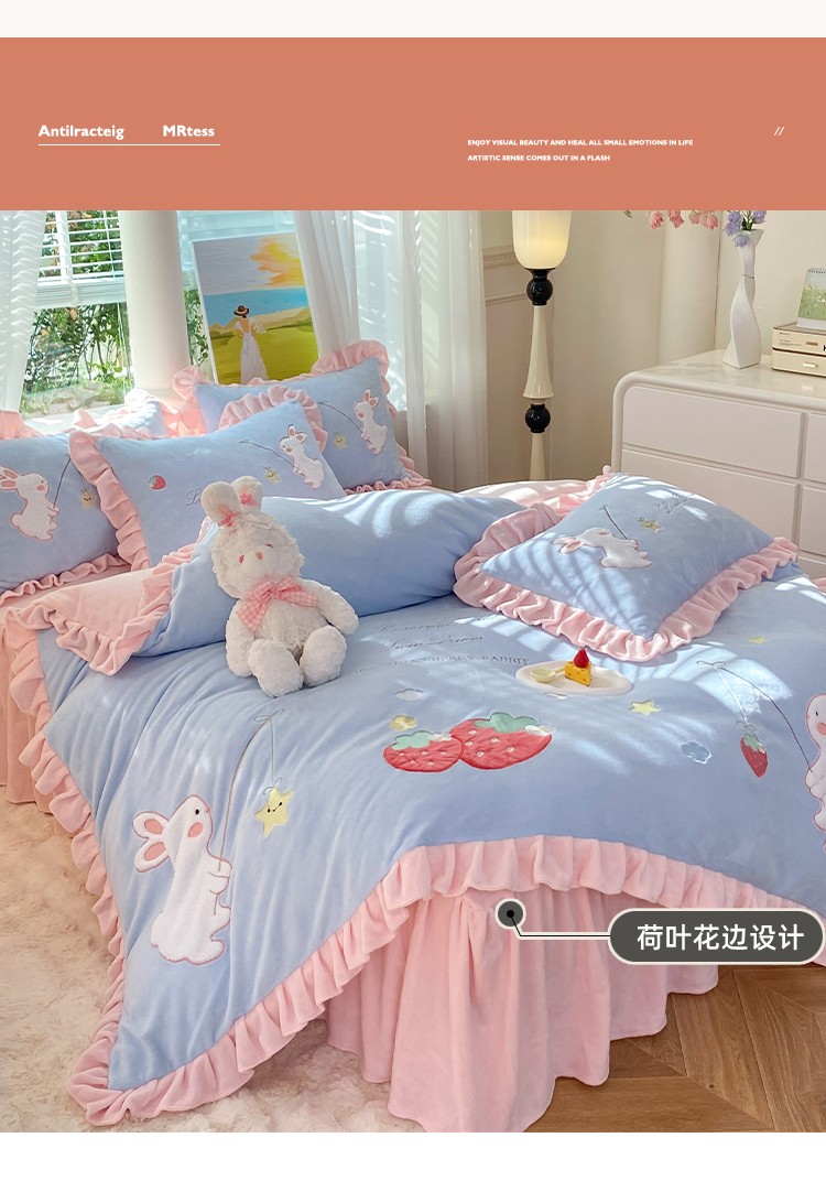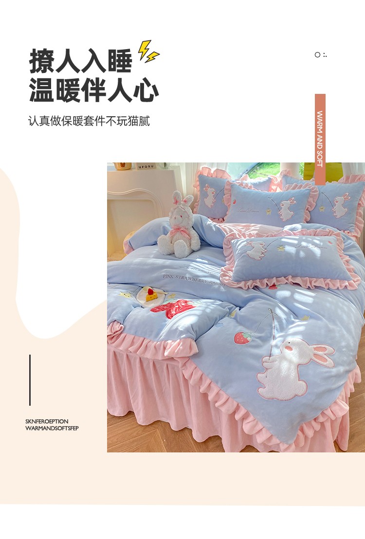 当前位置: 91家纺网 > 商品网购 > 床品套件 > 四件套 > 牛奶绒四件套 > 欧冠 2023新款牛奶绒摘星兔贴布绣牛奶绒四件套 摘星兔-蓝粉