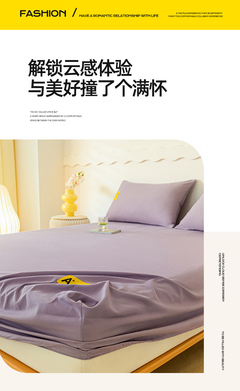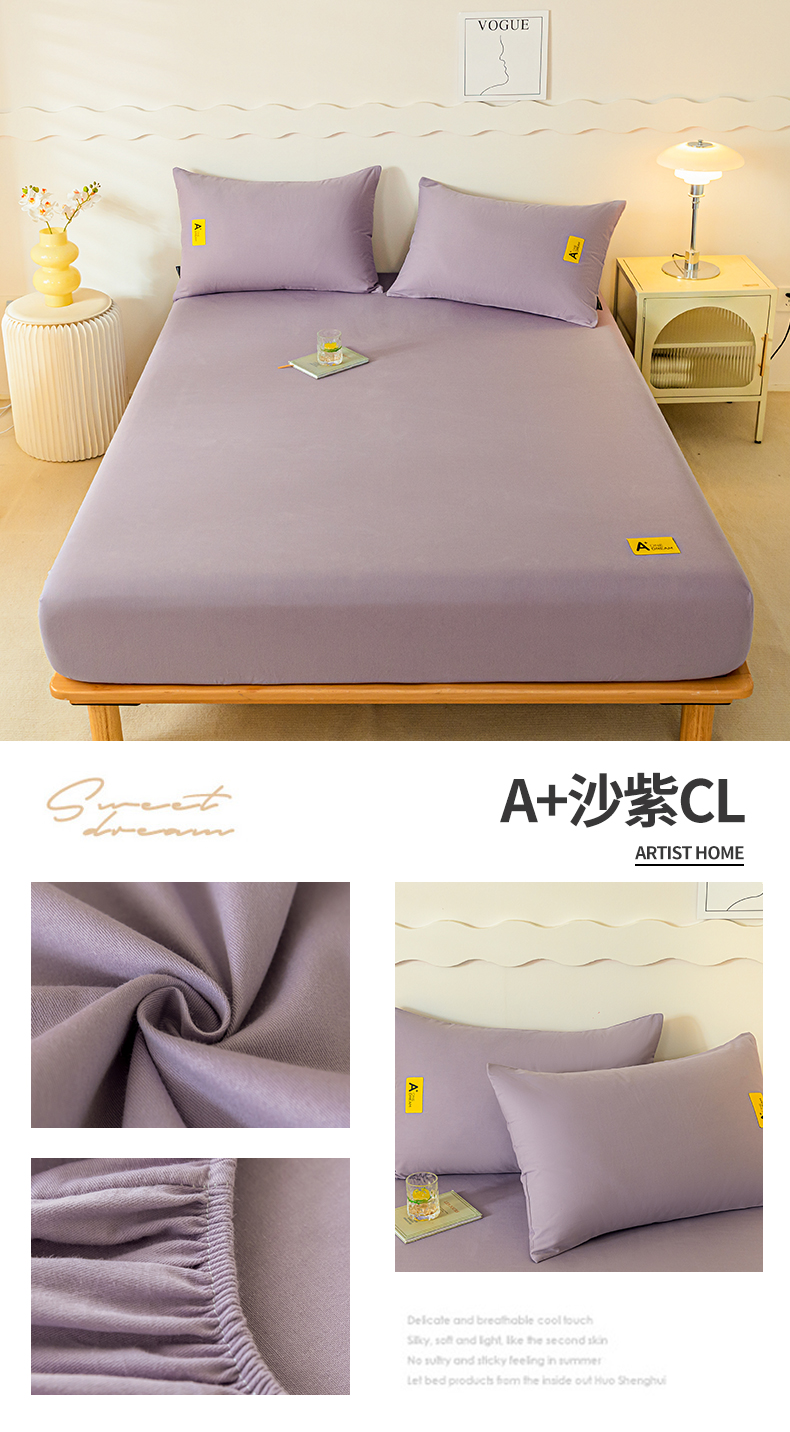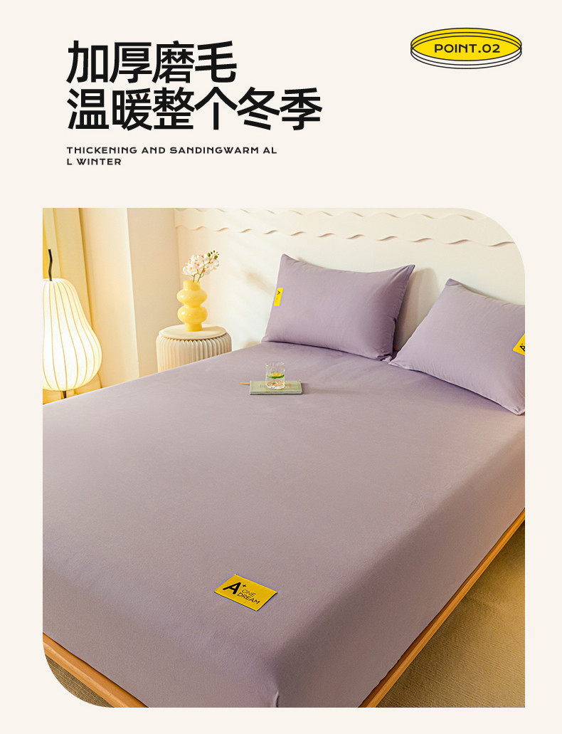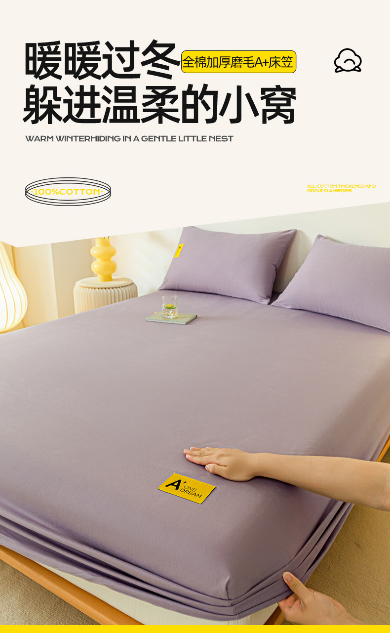 蓝米卡夫 2024秋冬全棉加厚磨毛A+单床笠三件套 A+沙紫CL