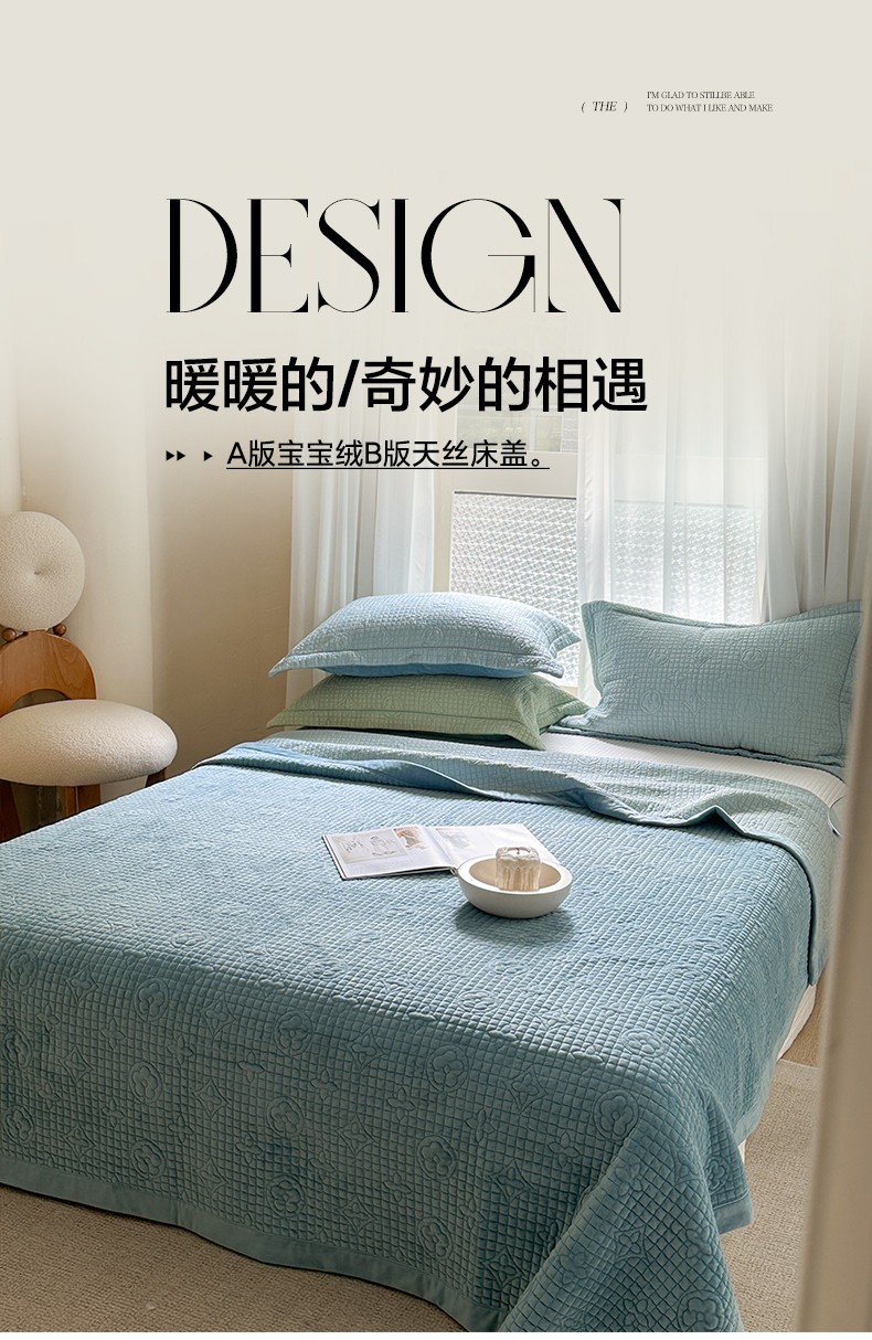 商品名称:琳可 2023新款宝宝绒莱赛尔天丝两用砂洗床盖三件套 丁蓝_绒