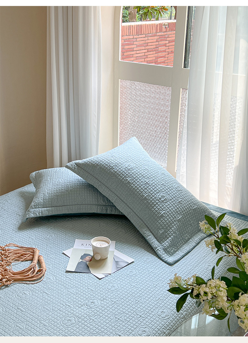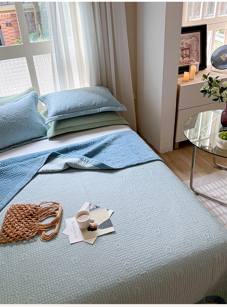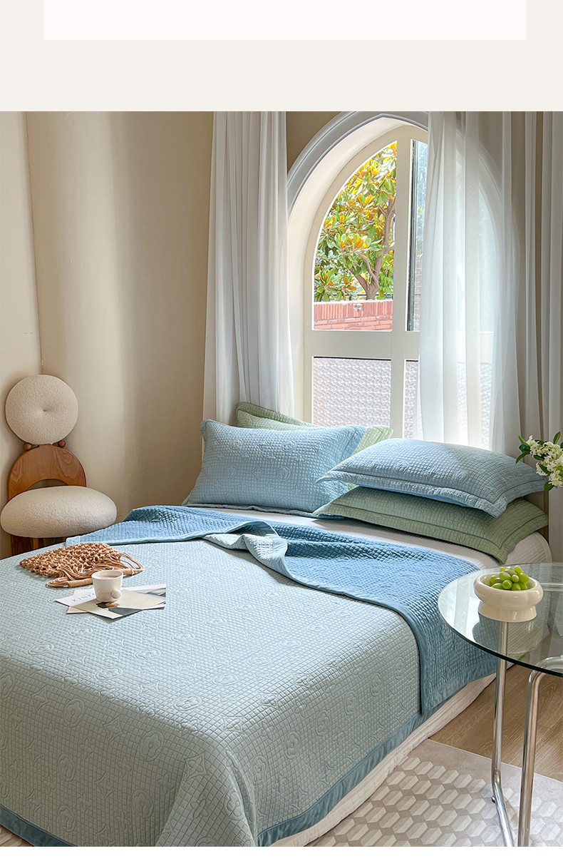 2022新款40S纯棉水洗棉韩版全棉荷叶边夹棉绗缝床盖三件套,海盐蓝,静谧灰,抹茶绿,奶油黄,千黛紫,浅豆沙,悠悠粉,云朵白,马卡桔,青草绿