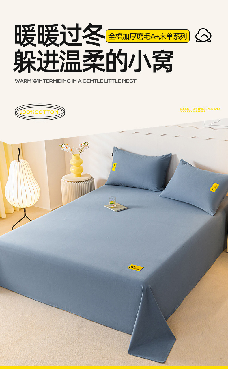 蓝米卡夫 2024秋冬全棉加厚磨毛A+单床单三件套 A+宾利蓝CD