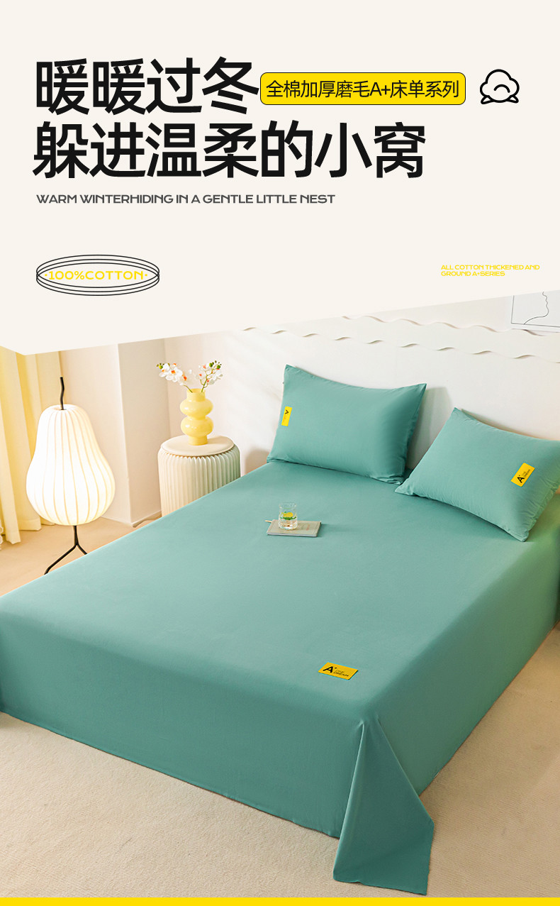 蓝米卡夫 2024秋冬全棉加厚磨毛A+单床单三件套 A+叶青绿CD