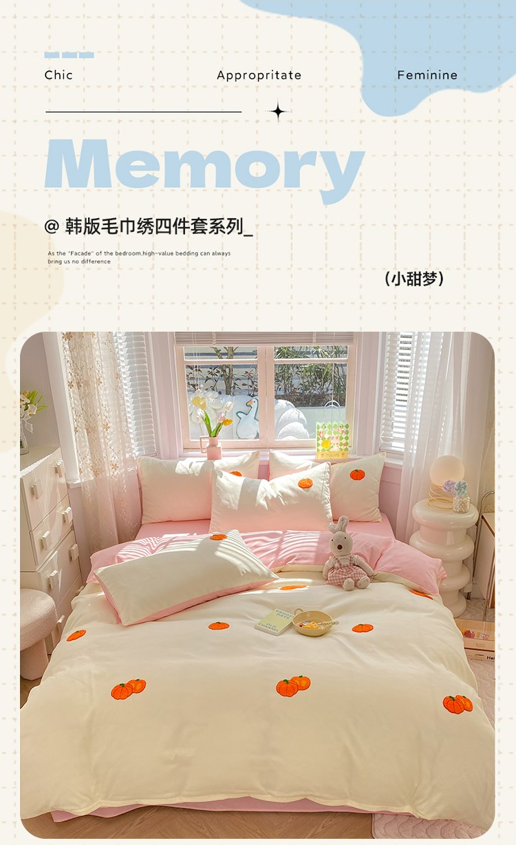 欧冠 2023新款秋冬保暖专版水洗棉麻毛巾绣四件套 南瓜派