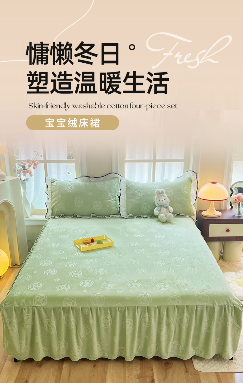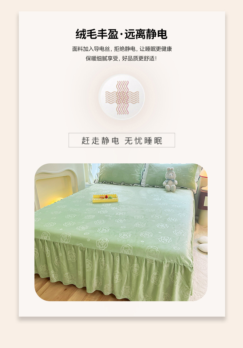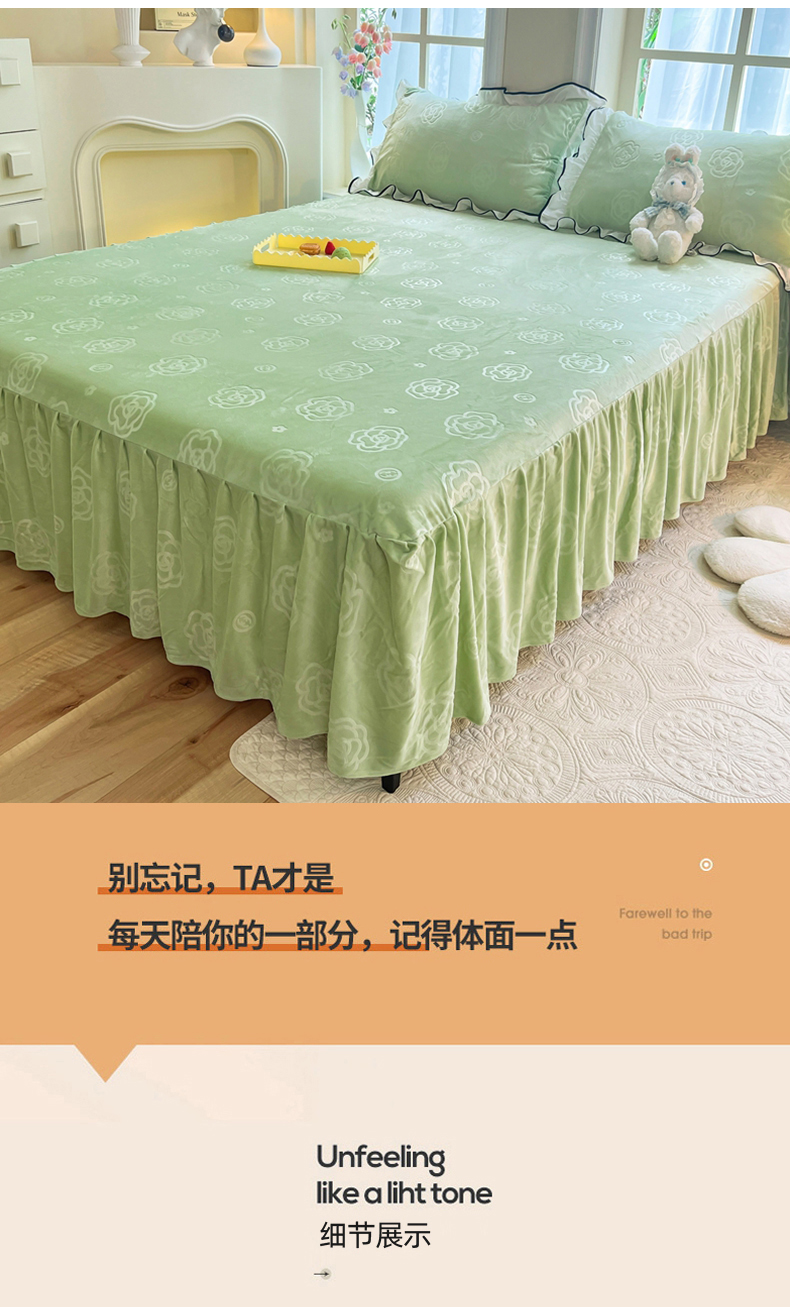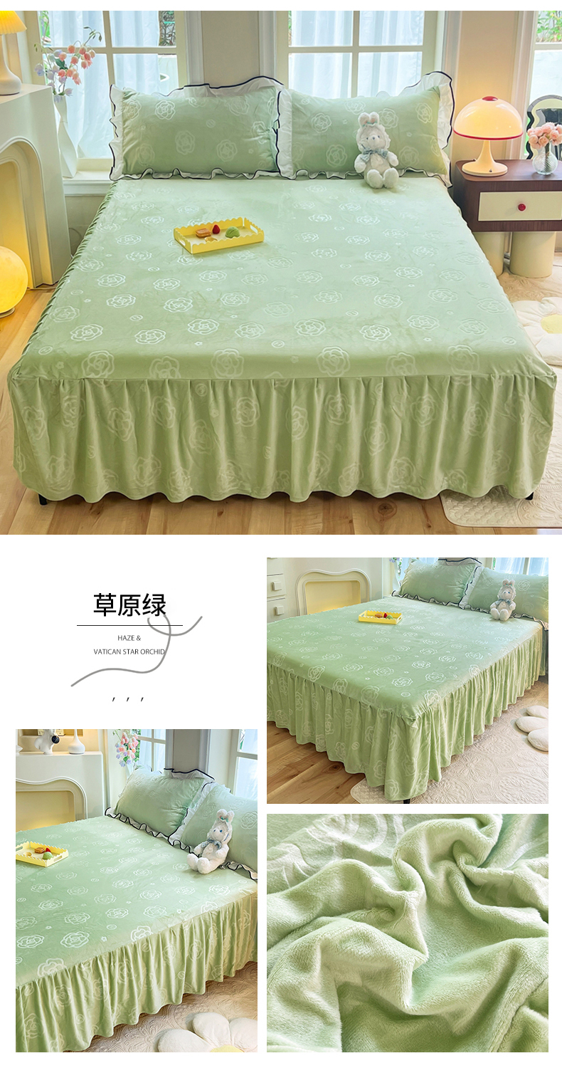 商品名称:逸尚阁 2023秋冬新款宝宝绒单品床裙-香语 草原绿-裙