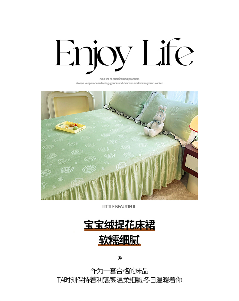 逸尚阁 2023秋冬新款宝宝绒单品床裙-香语 草原绿-裙