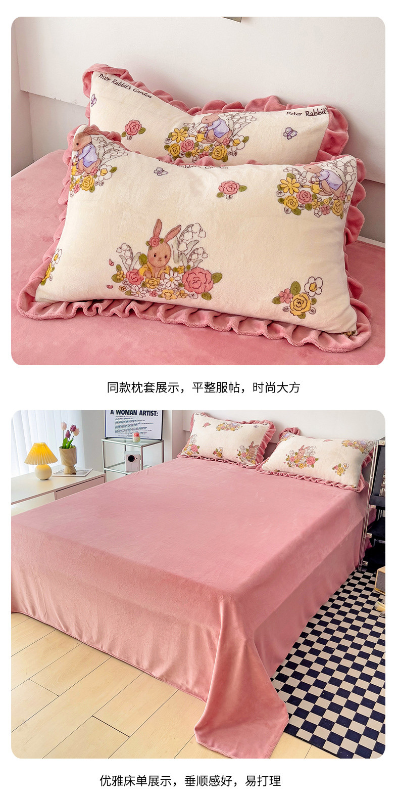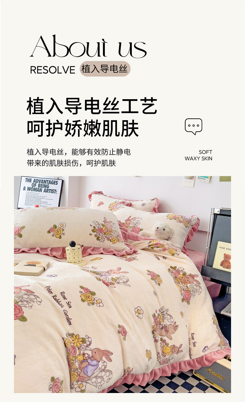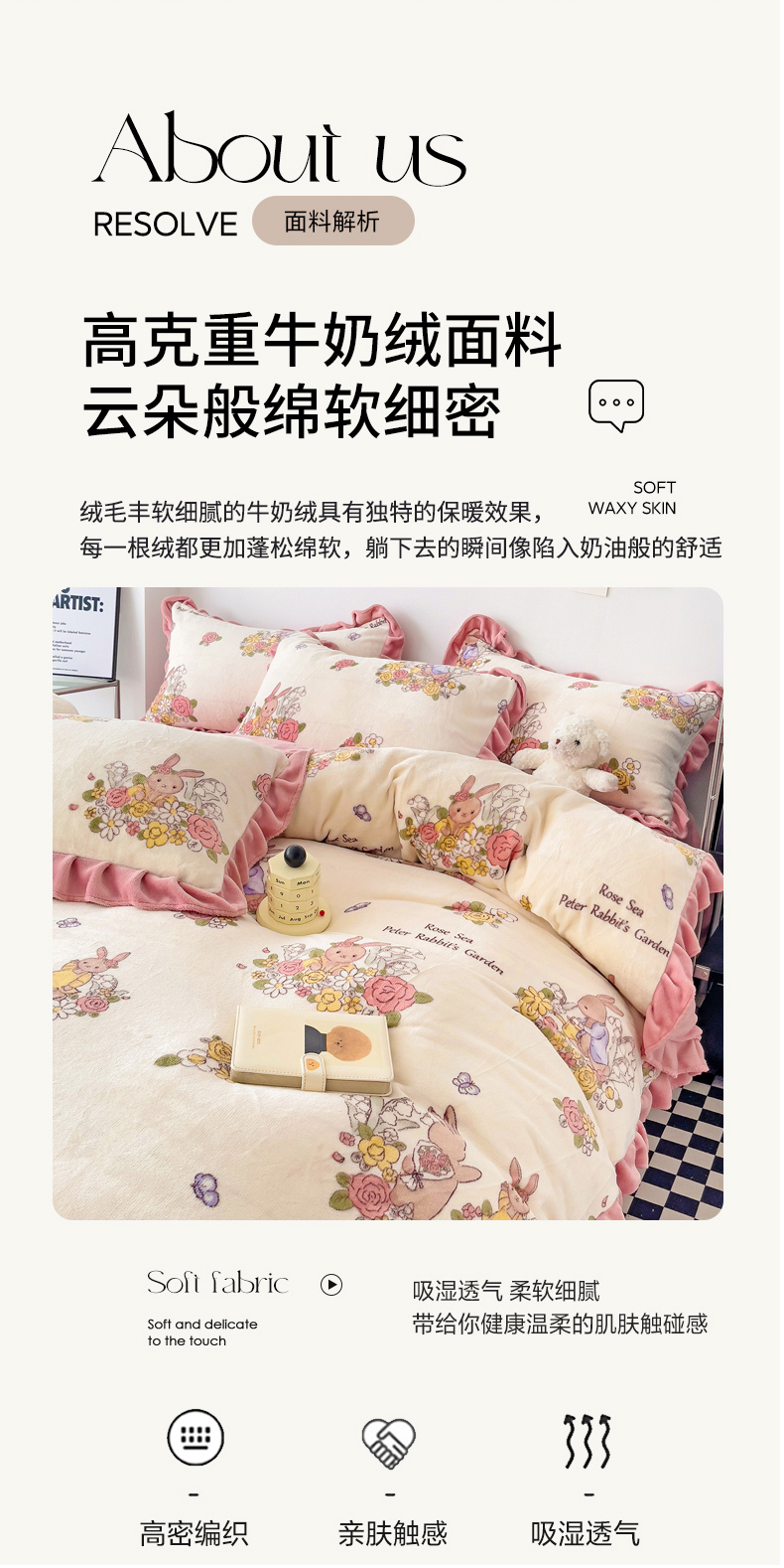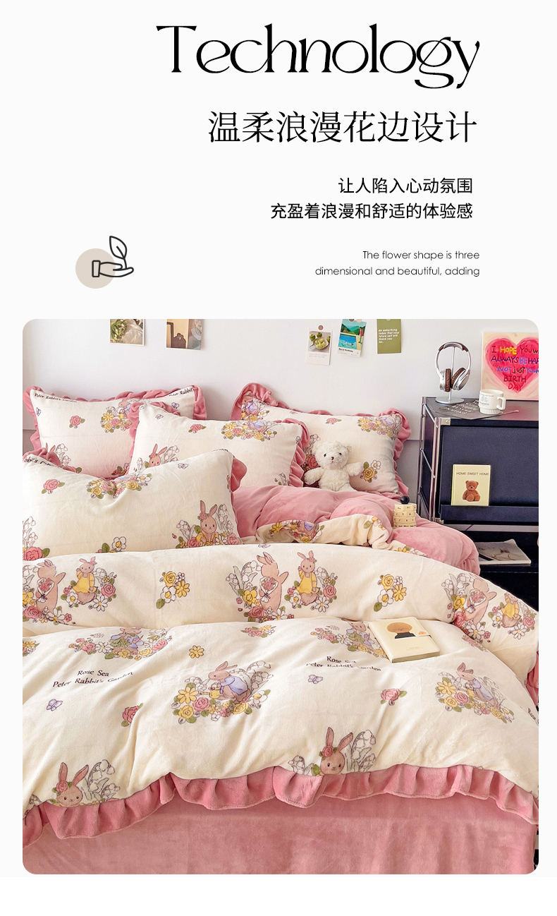 商品名称:家之硕 2023新款韩版荷叶边印花牛奶绒四件套 兔先生