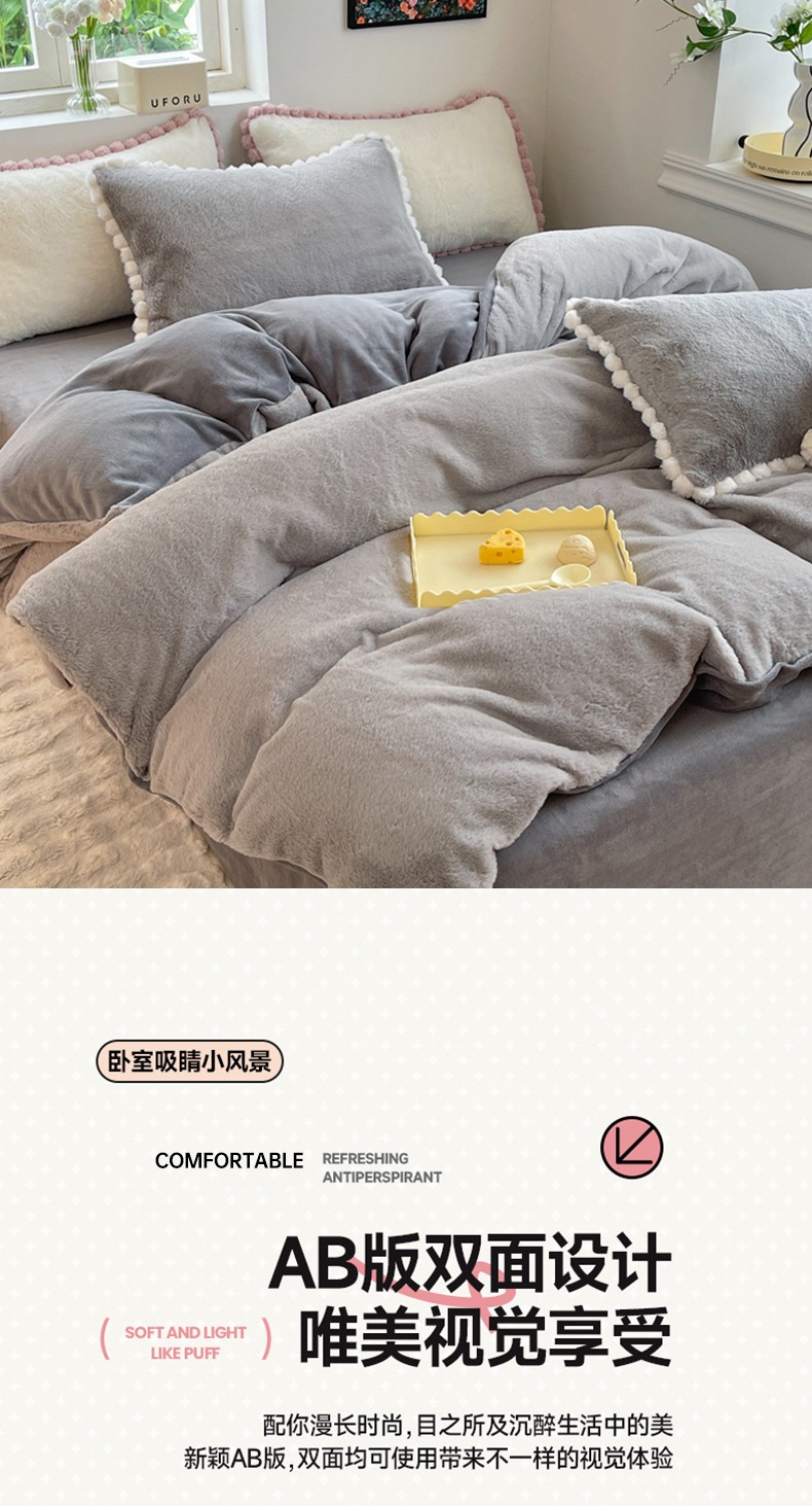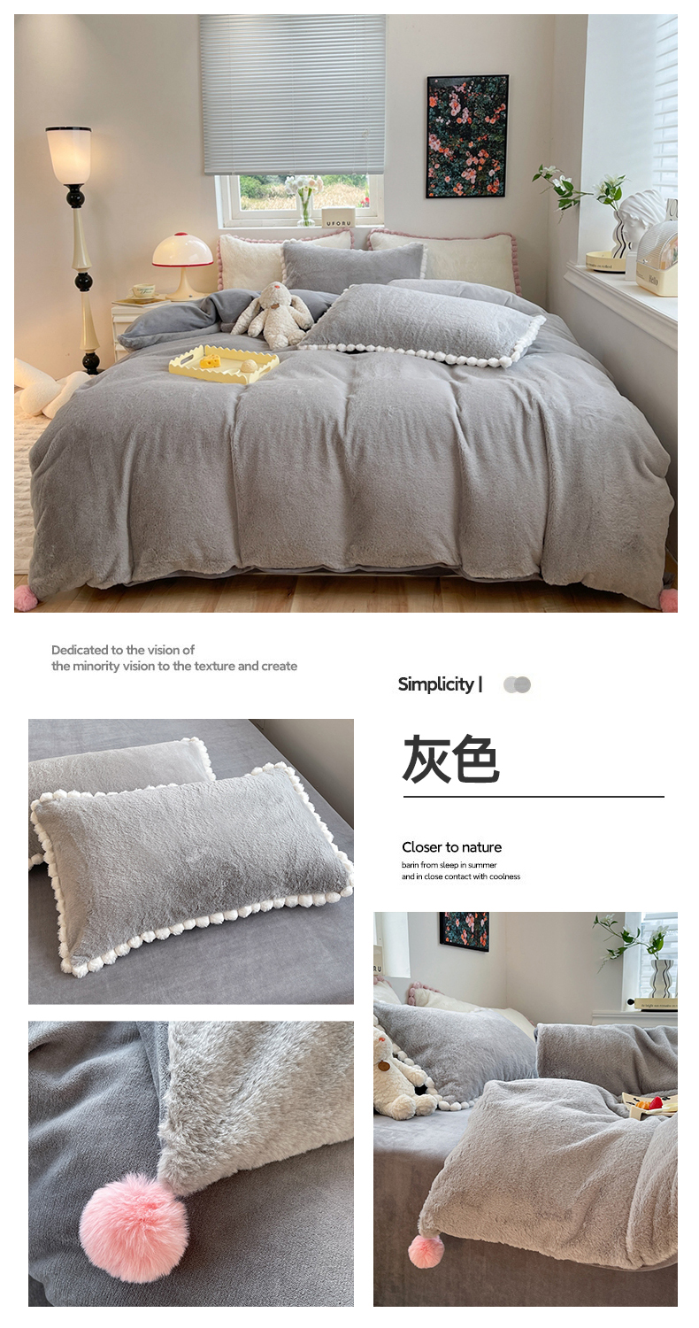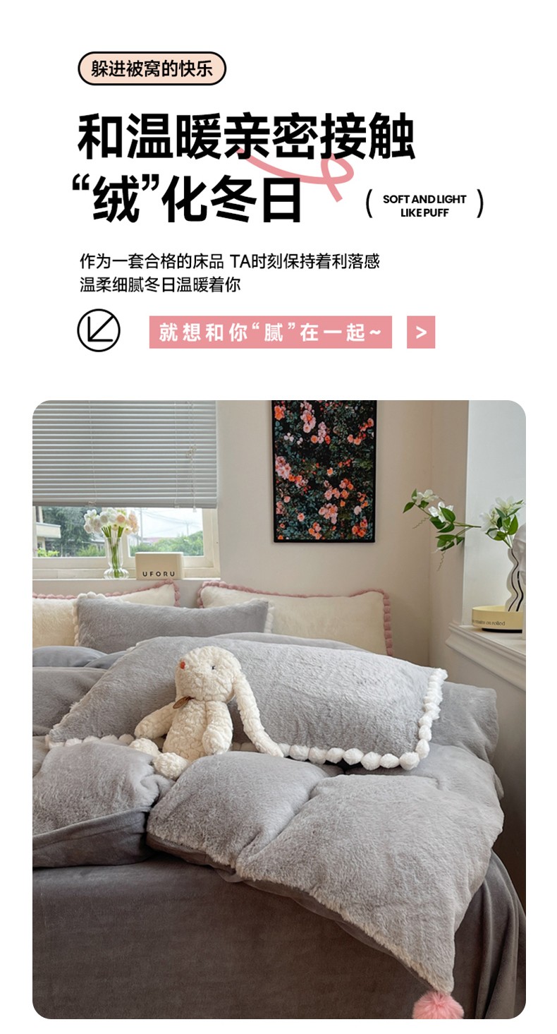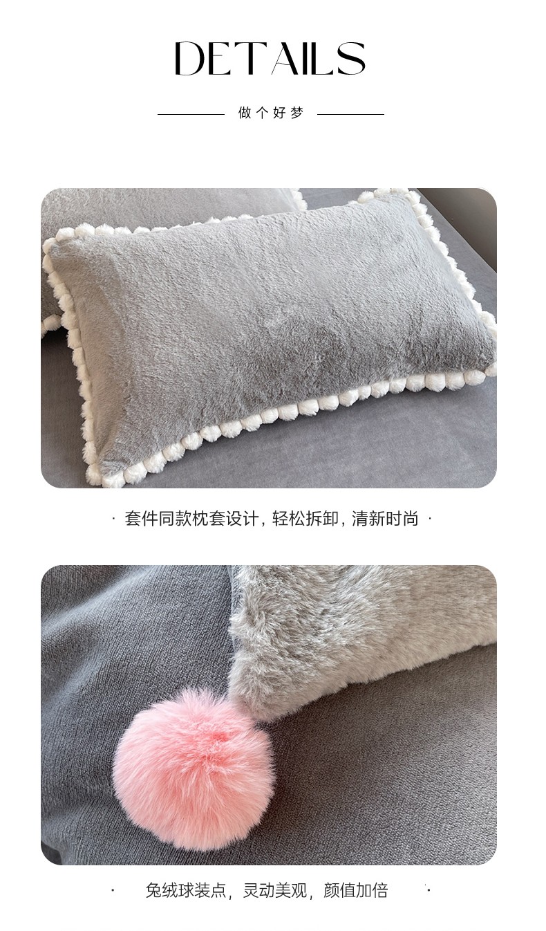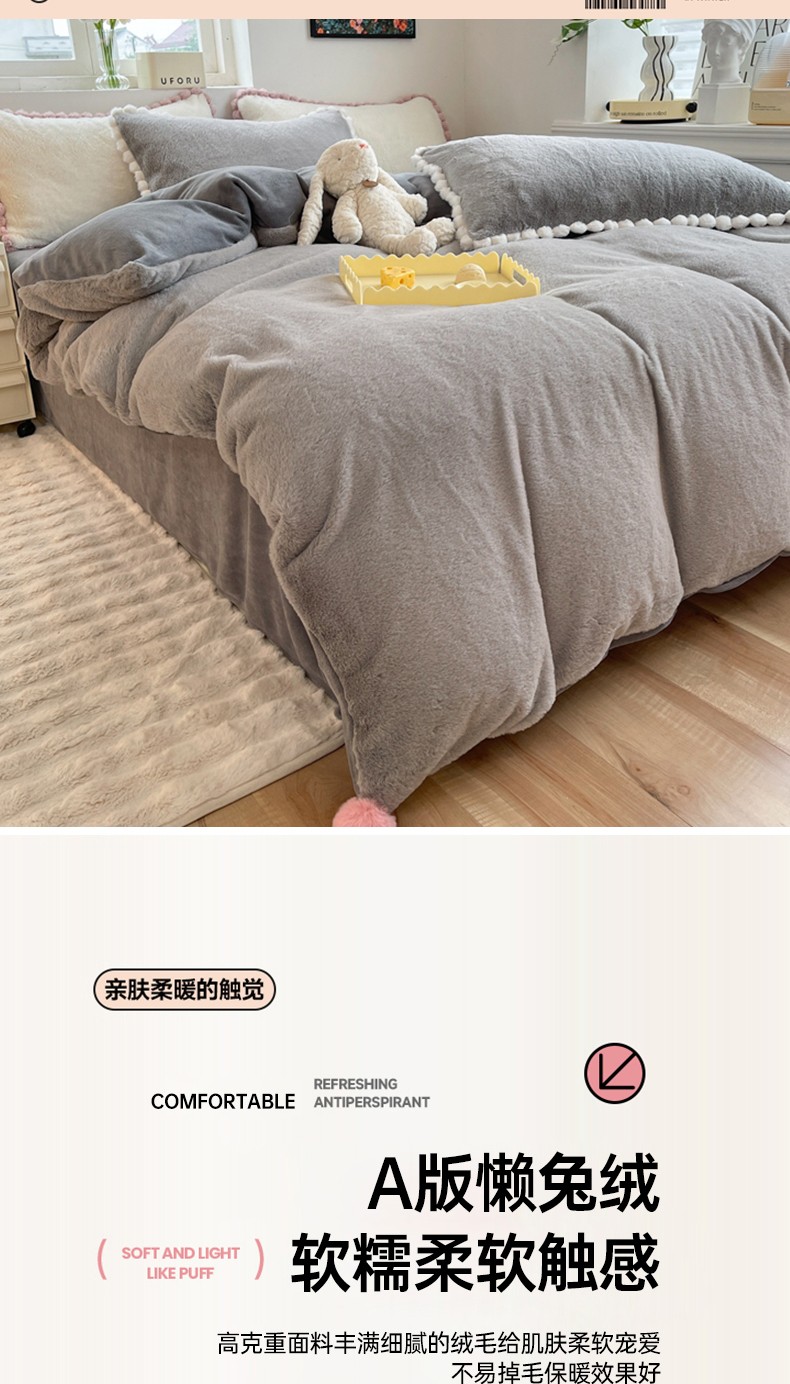 商品名称:艾米家居 2023新款秋冬懒兔绒四件套-球球款 灰色
