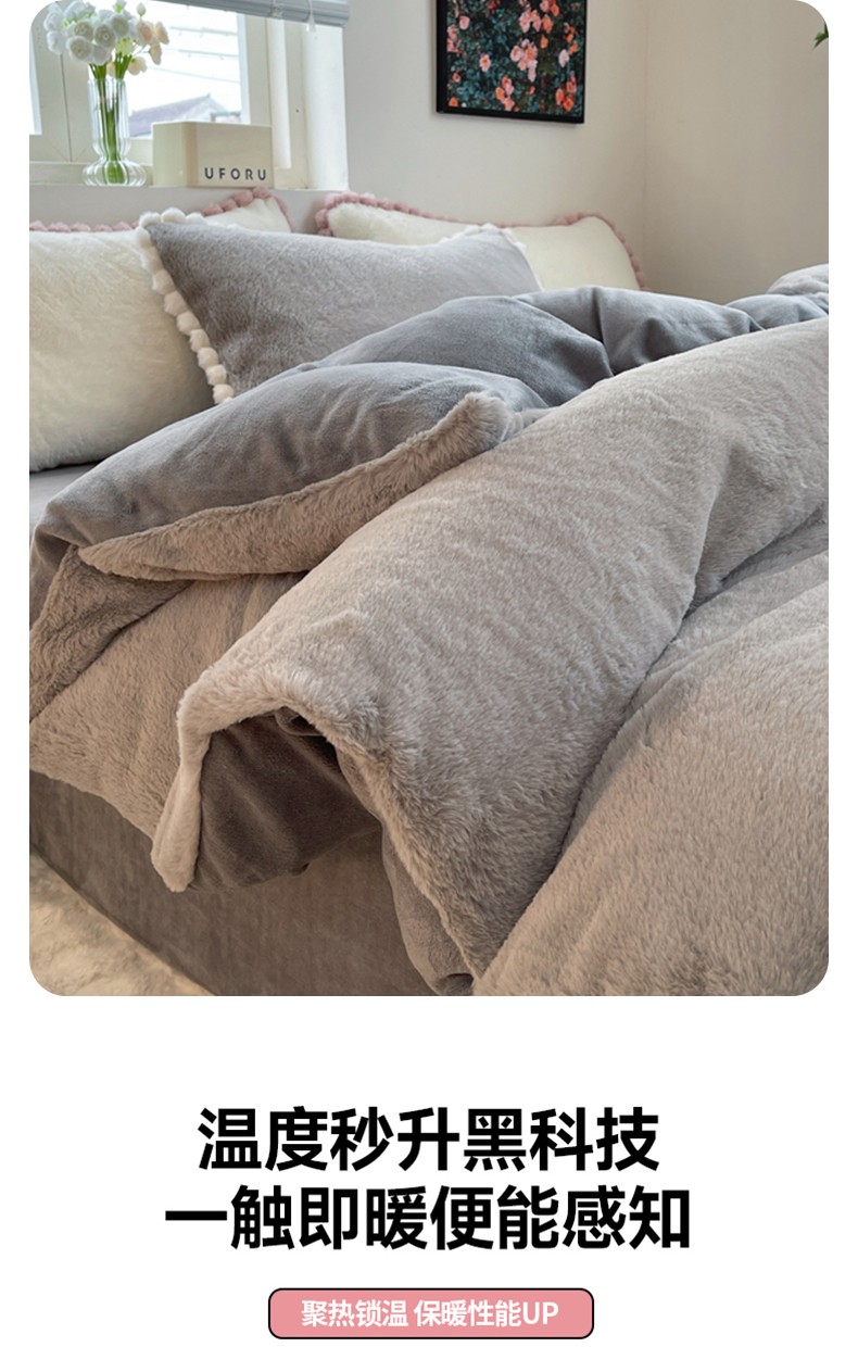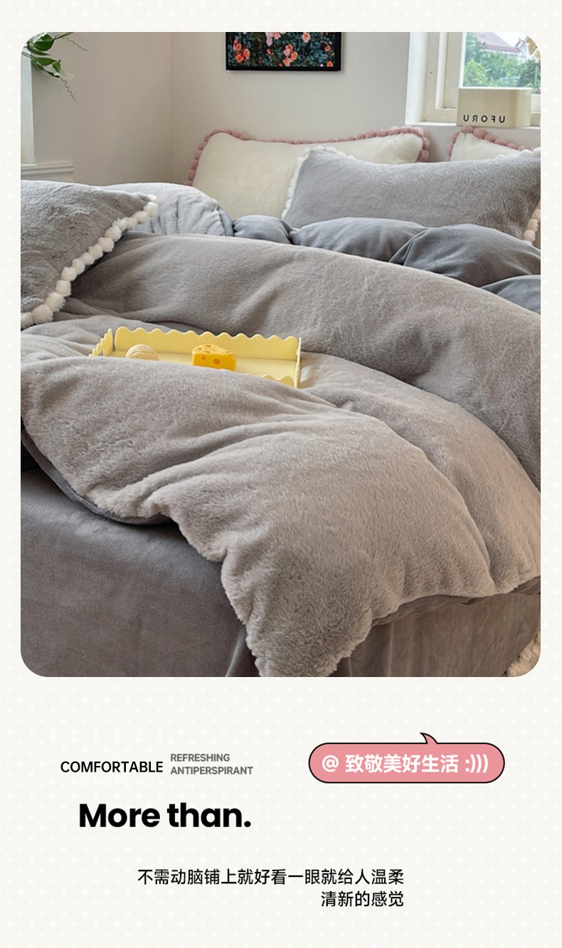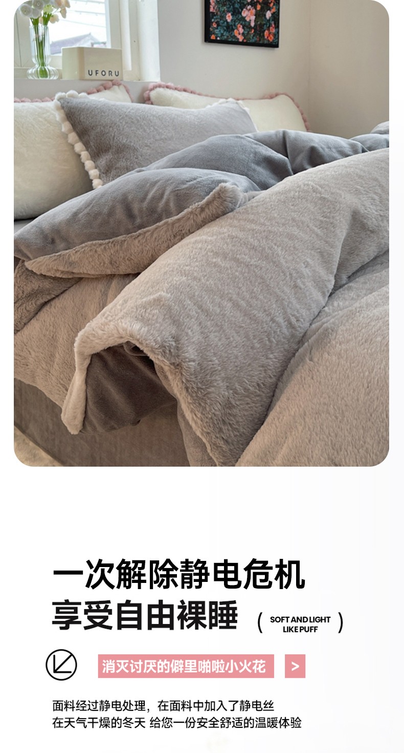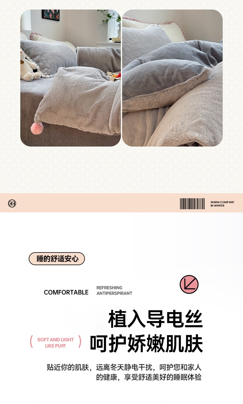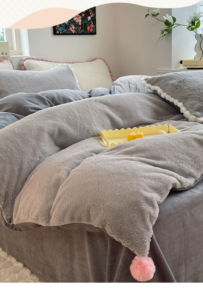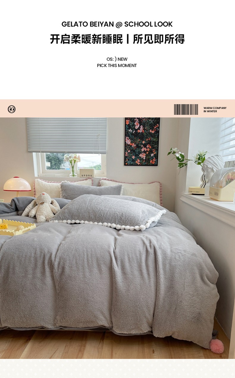 商品名称:艾米家居 2023新款秋冬懒兔绒四件套-球球款 灰色