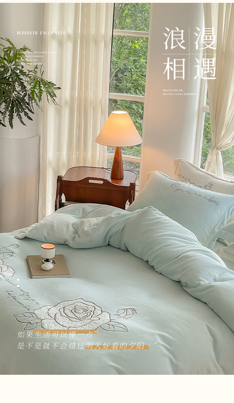 (总)名品优仓2023新款毛巾绣撞色荷叶边四件套,拾光兔,铃兰花开,爱丽兔,太阳花清爽绿,太阳花芝芝奶绿,兔然暴富