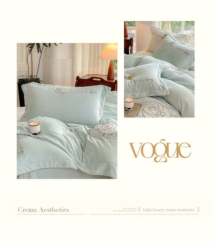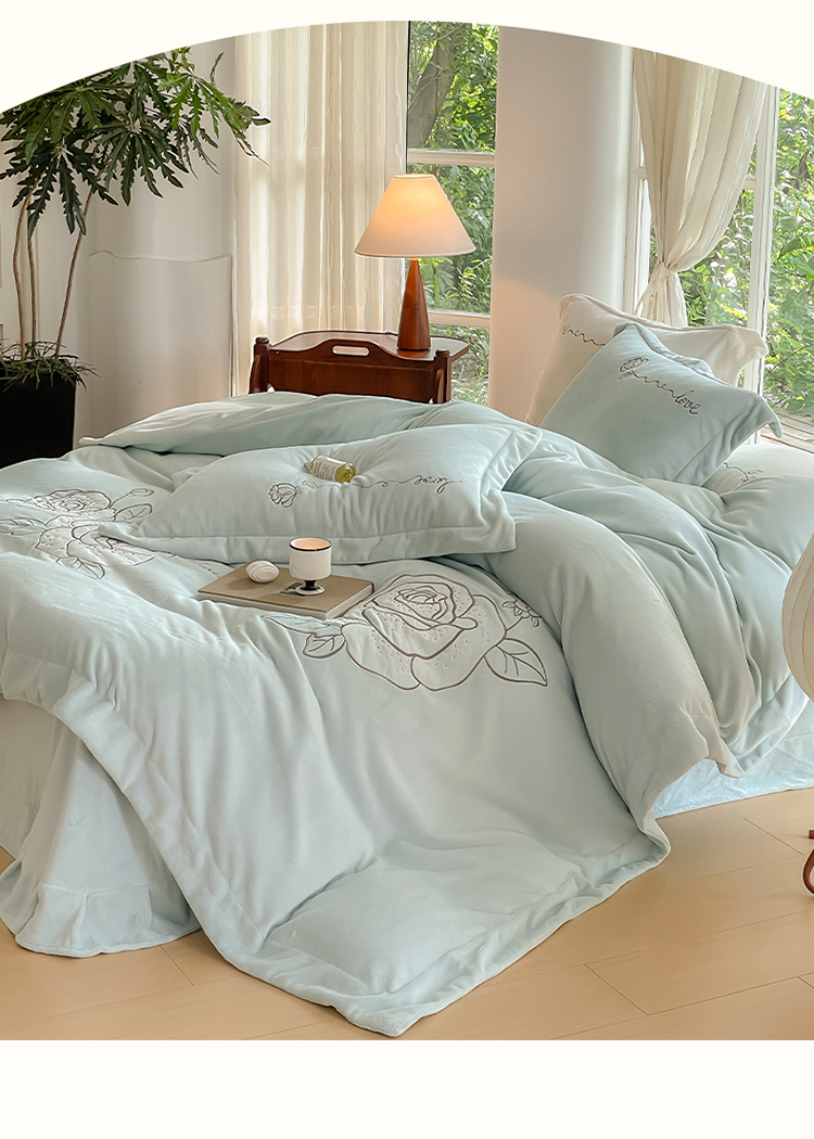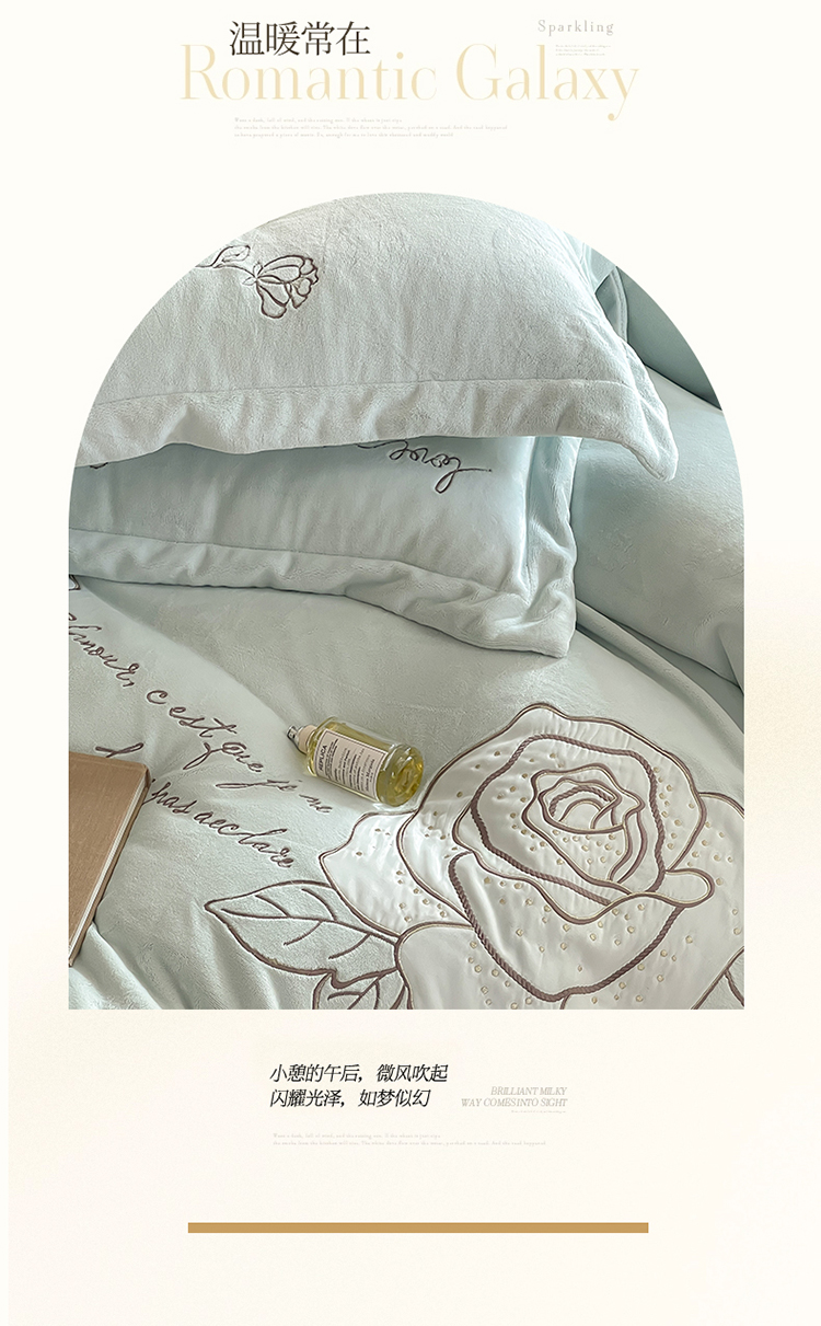 商品名称:名品优仓 2023新款高克重230g牛奶绒绣花温妮莎系列四件套 繁星蓝