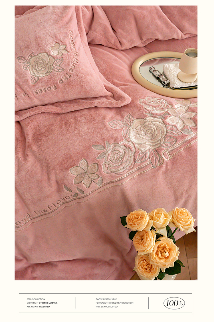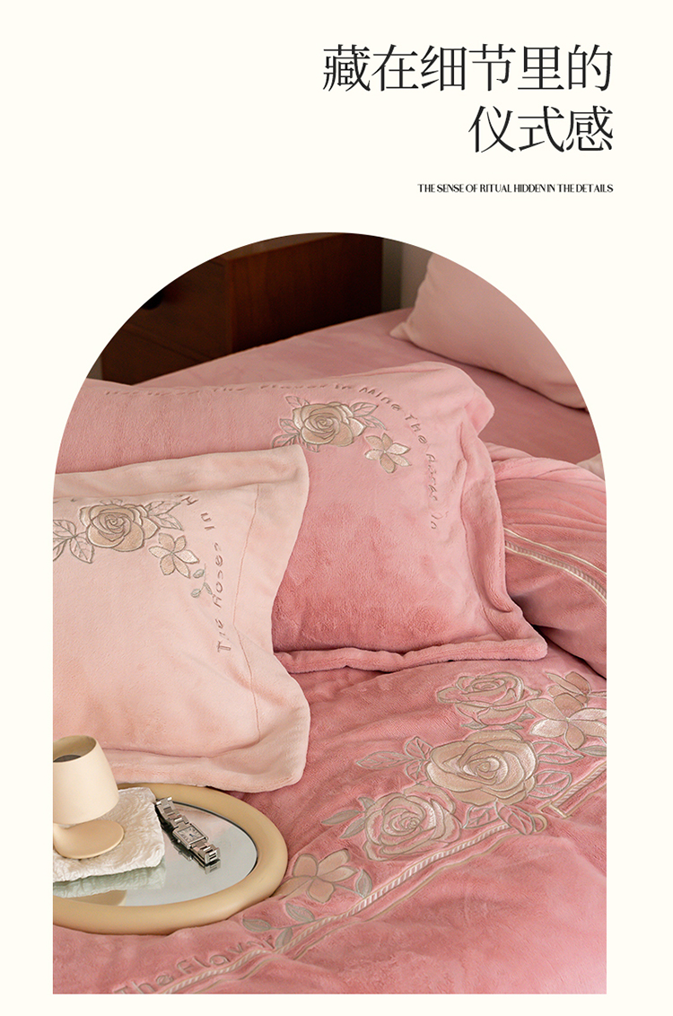 名品优仓 2023新款高克重230g牛奶绒绣花蔓璃系列四件套 皮红