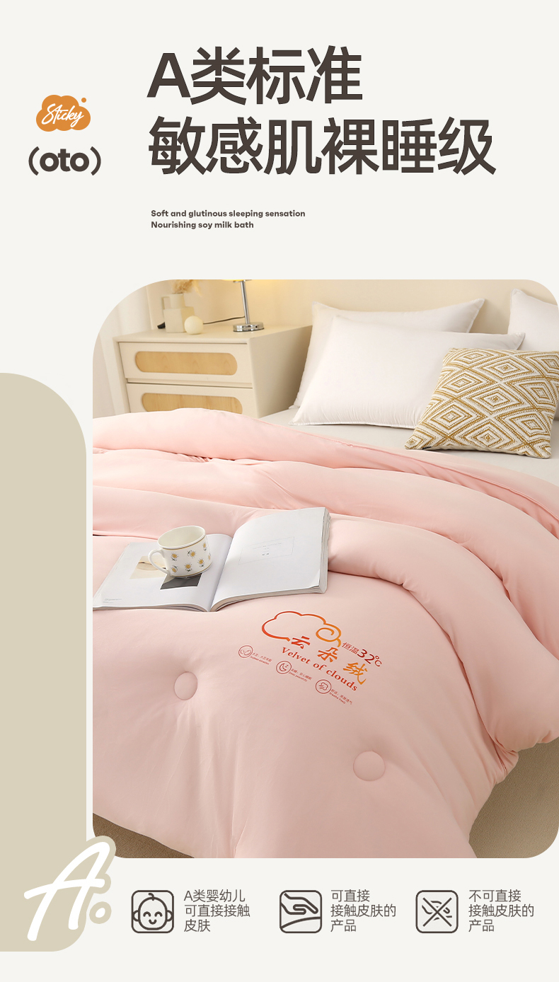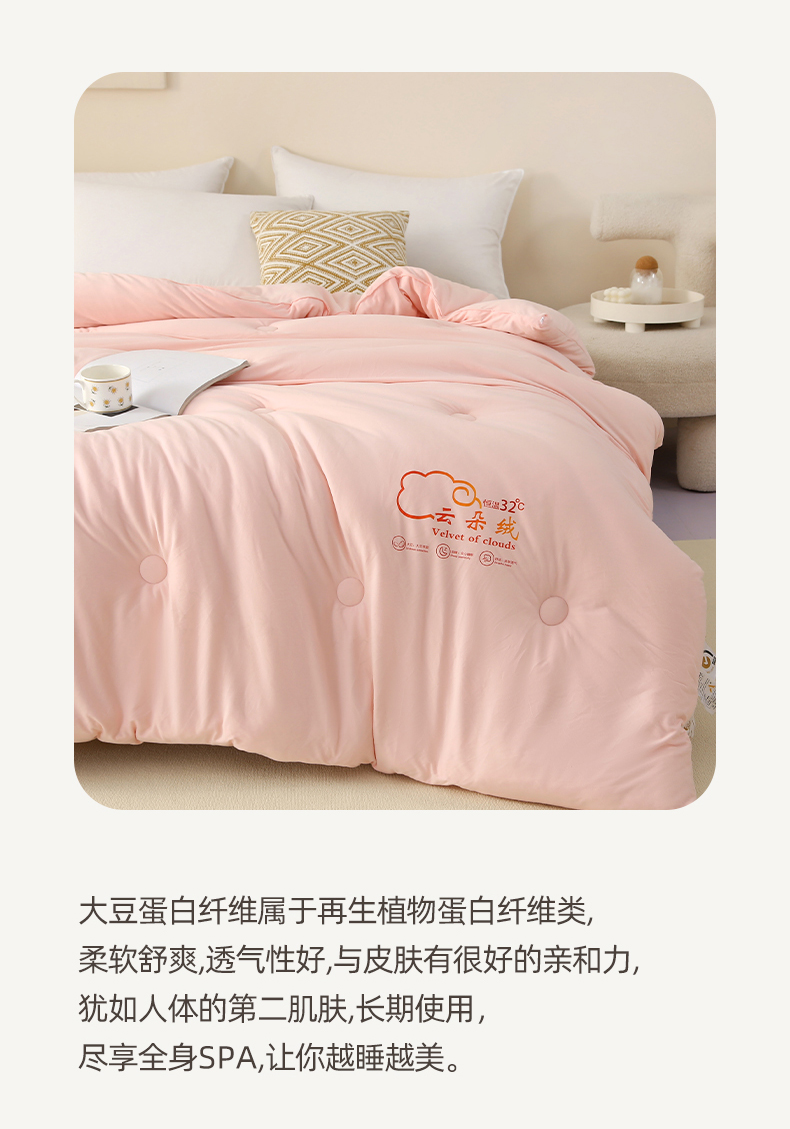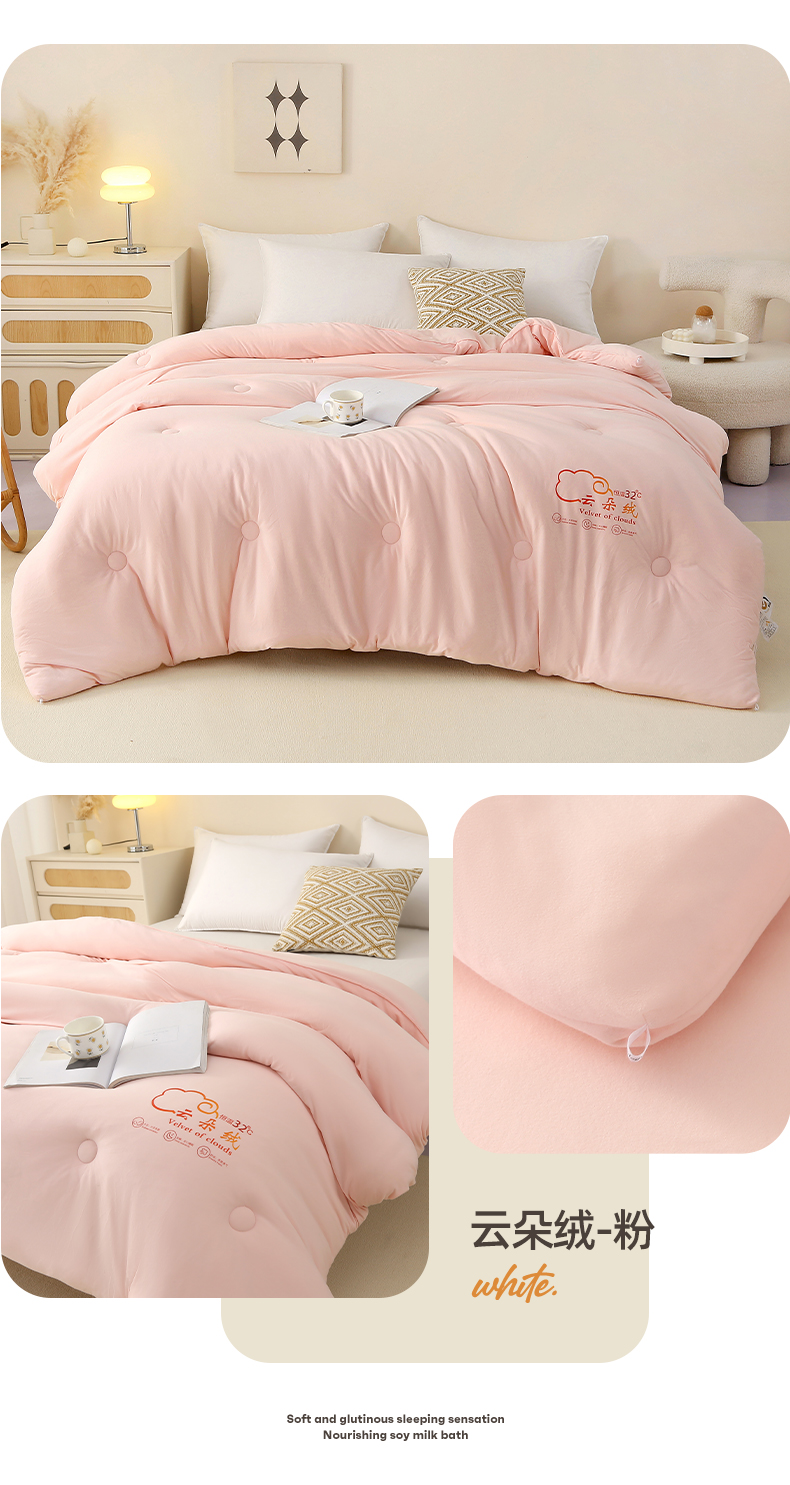 • 91家纺网 家纺一手货源 找家纺 薇玛仕 2023新款A类云朵绒恒温大豆被春秋被加厚冬被 云朵绒-粉