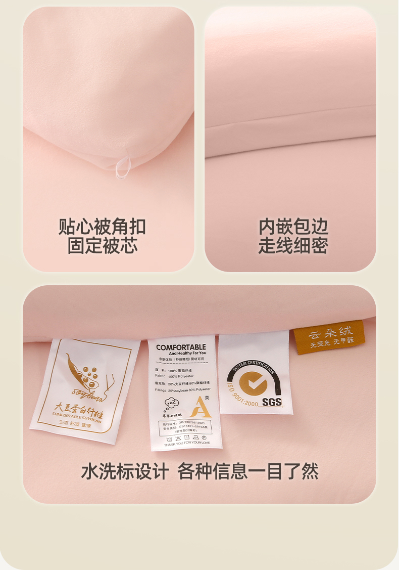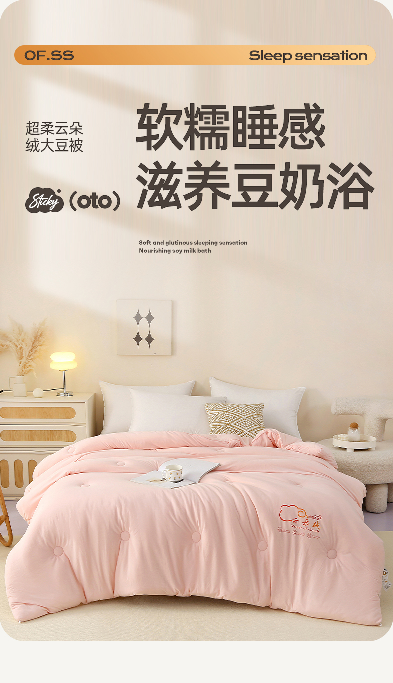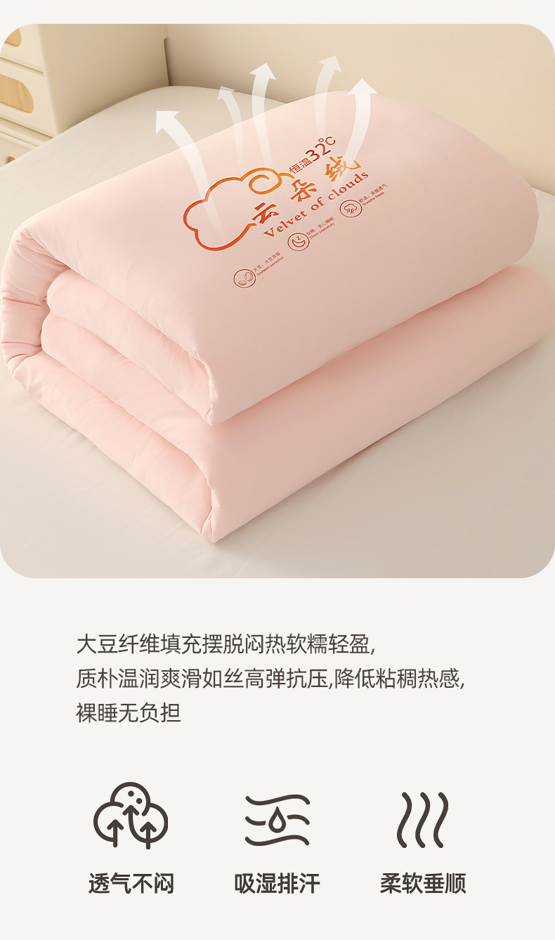 • 91家纺网 家纺一手货源 找家纺 薇玛仕 2023新款A类云朵绒恒温大豆被春秋被加厚冬被 云朵绒-粉