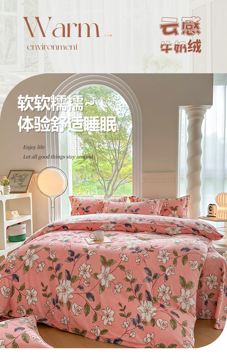 2024秋冬新款牛奶绒单被套 红薇