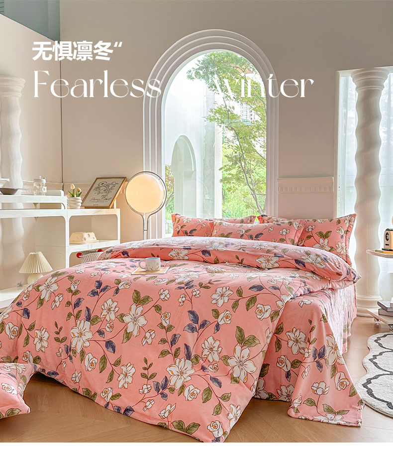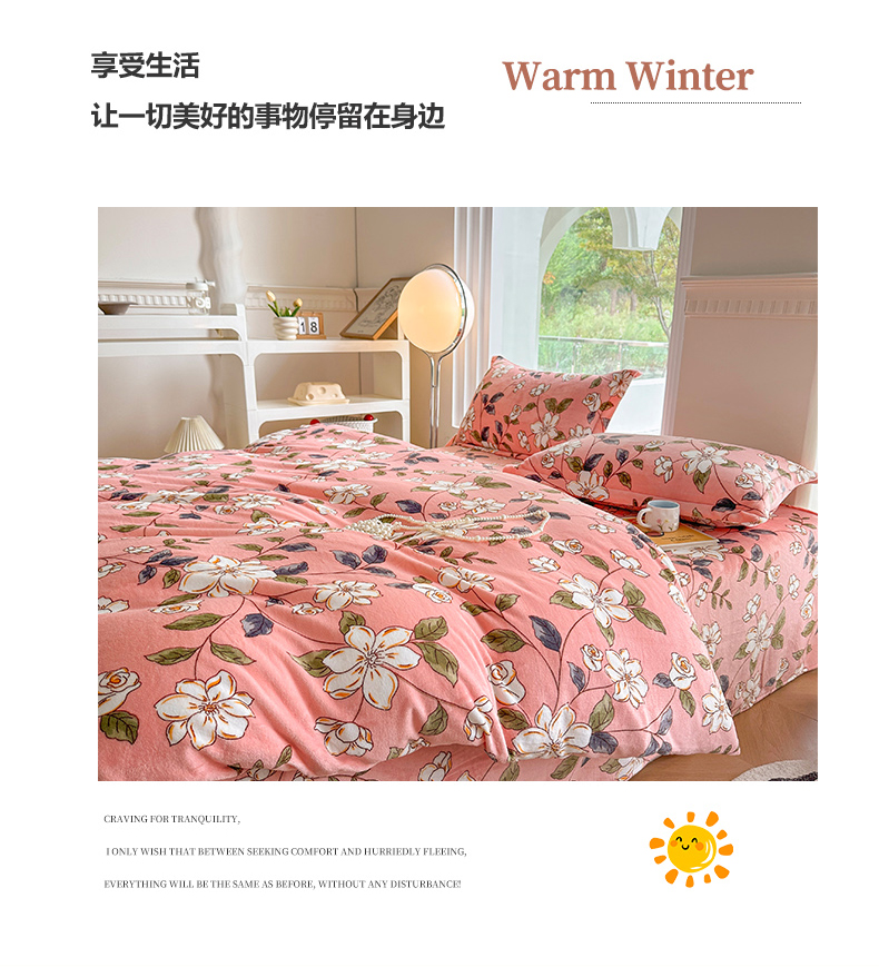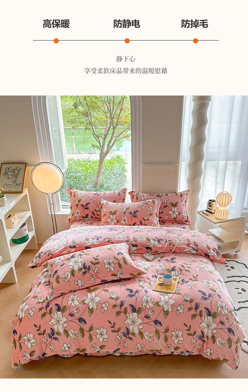 (总)胜权家纺 2024新款小香风牛奶绒夹棉床盖四件套-芭莎系列,芭莎-粉,芭莎-绿,芭莎-紫,芭莎-米