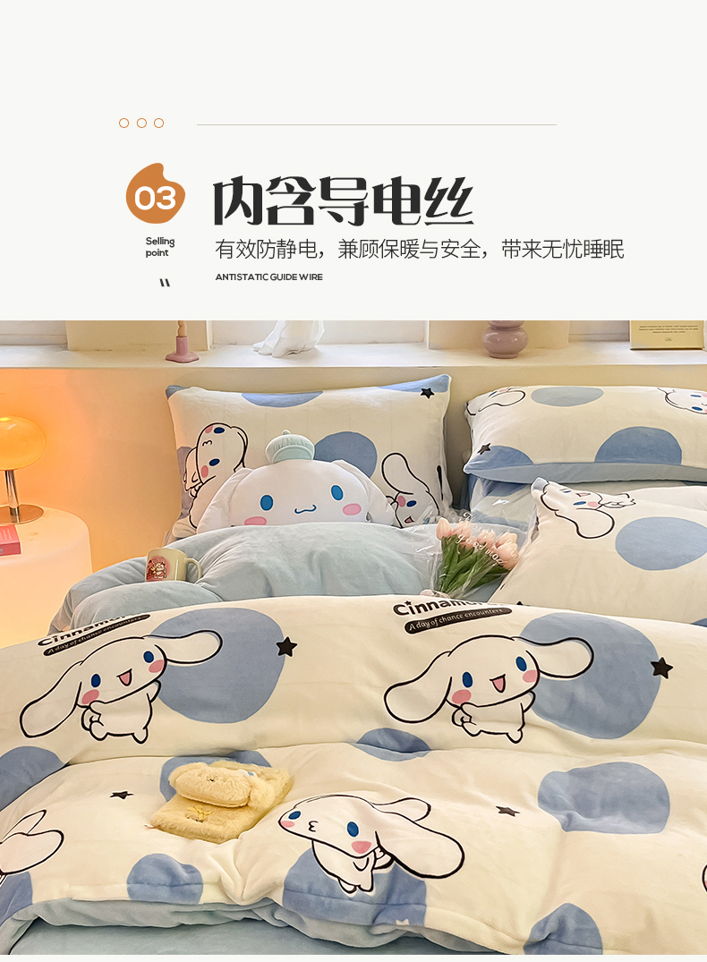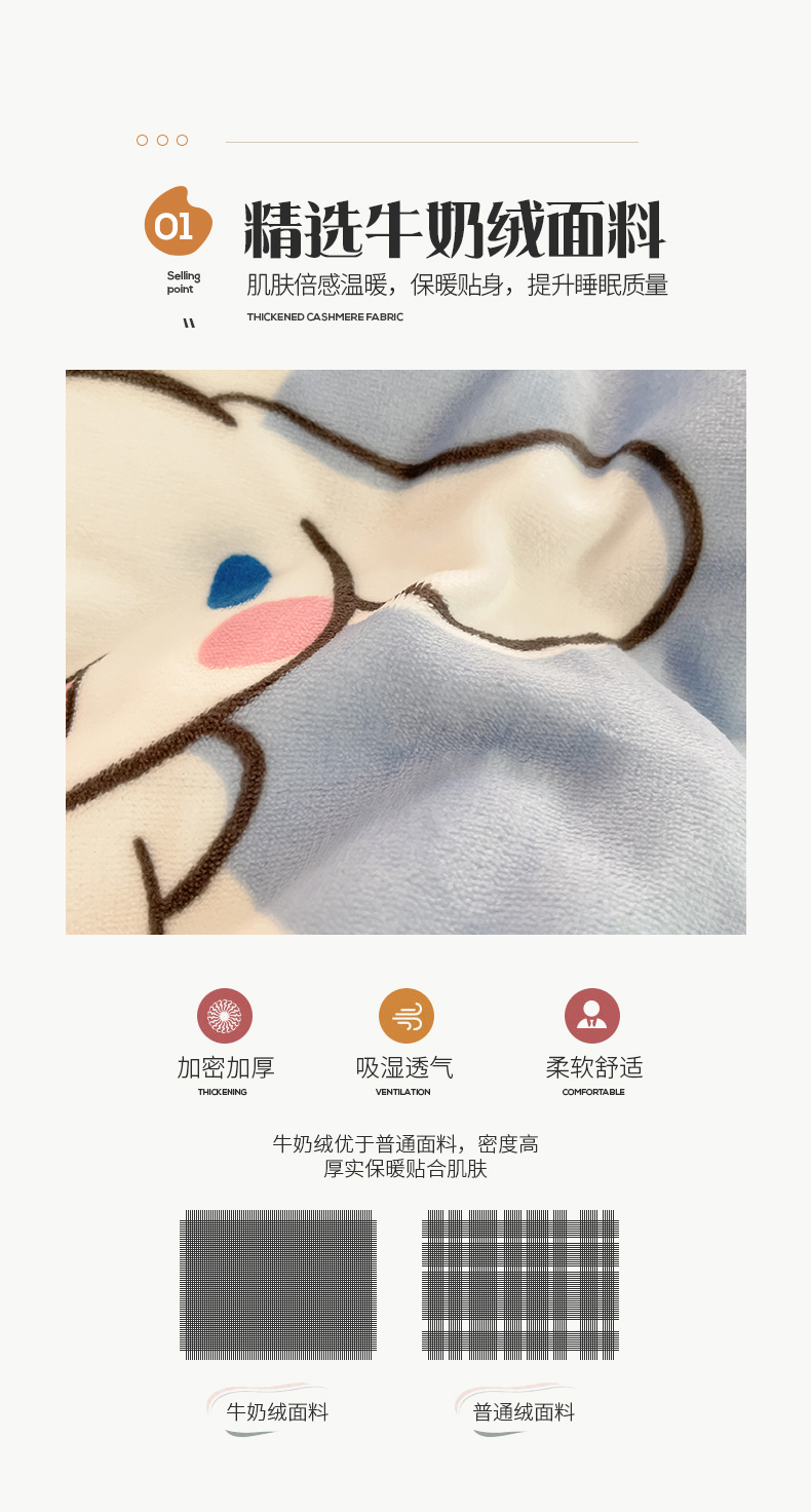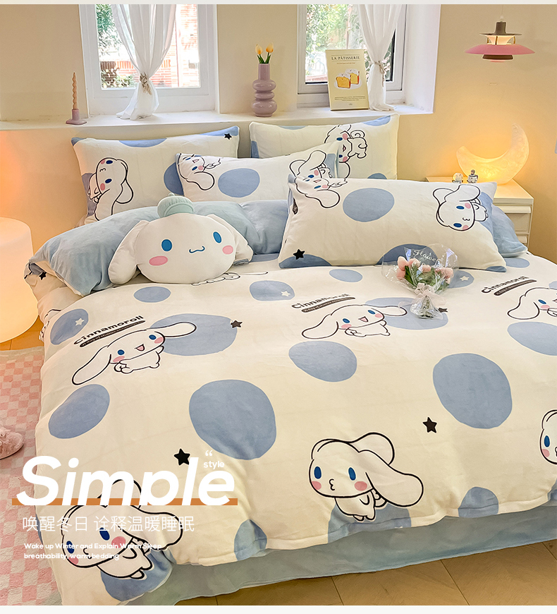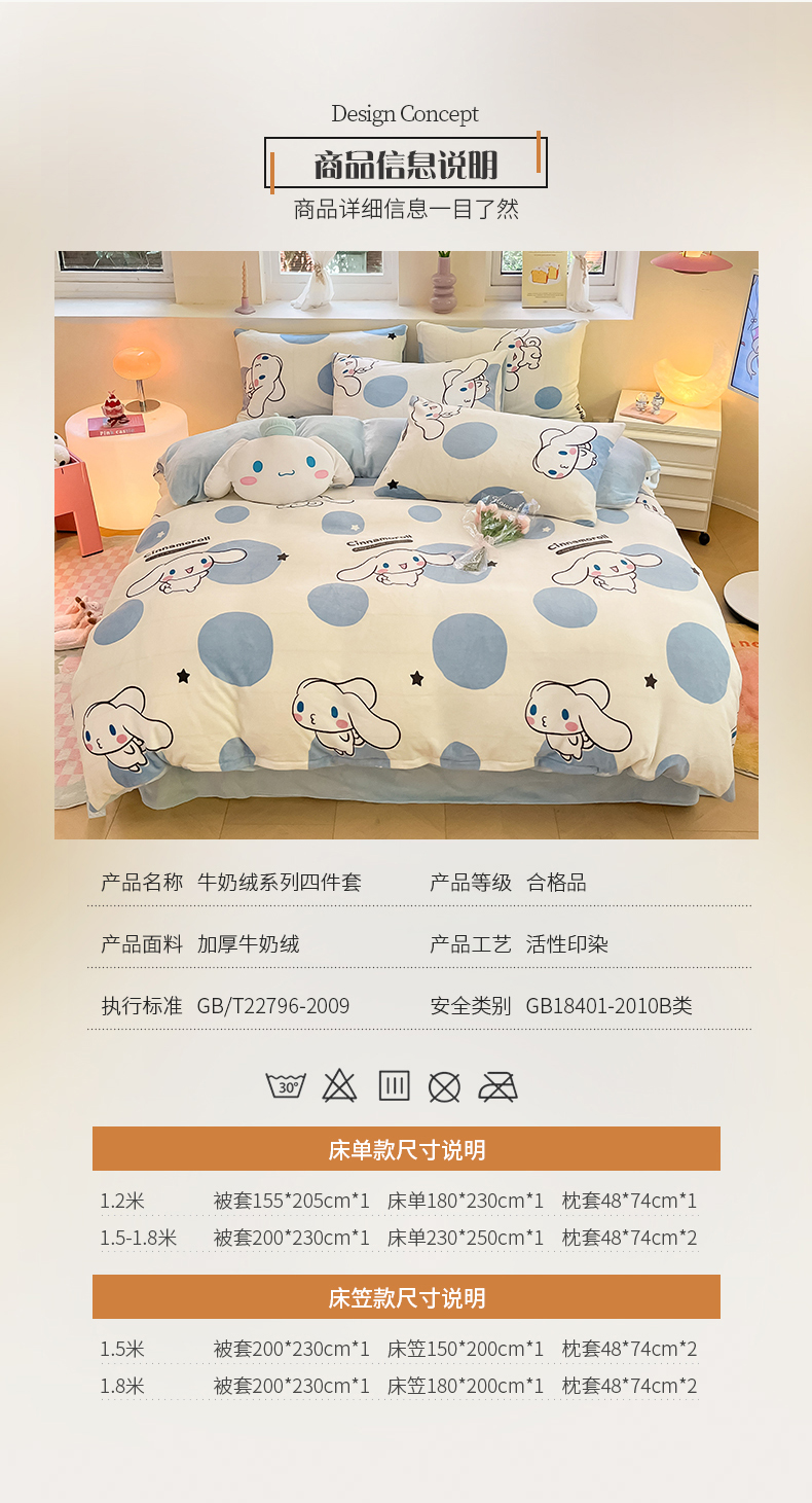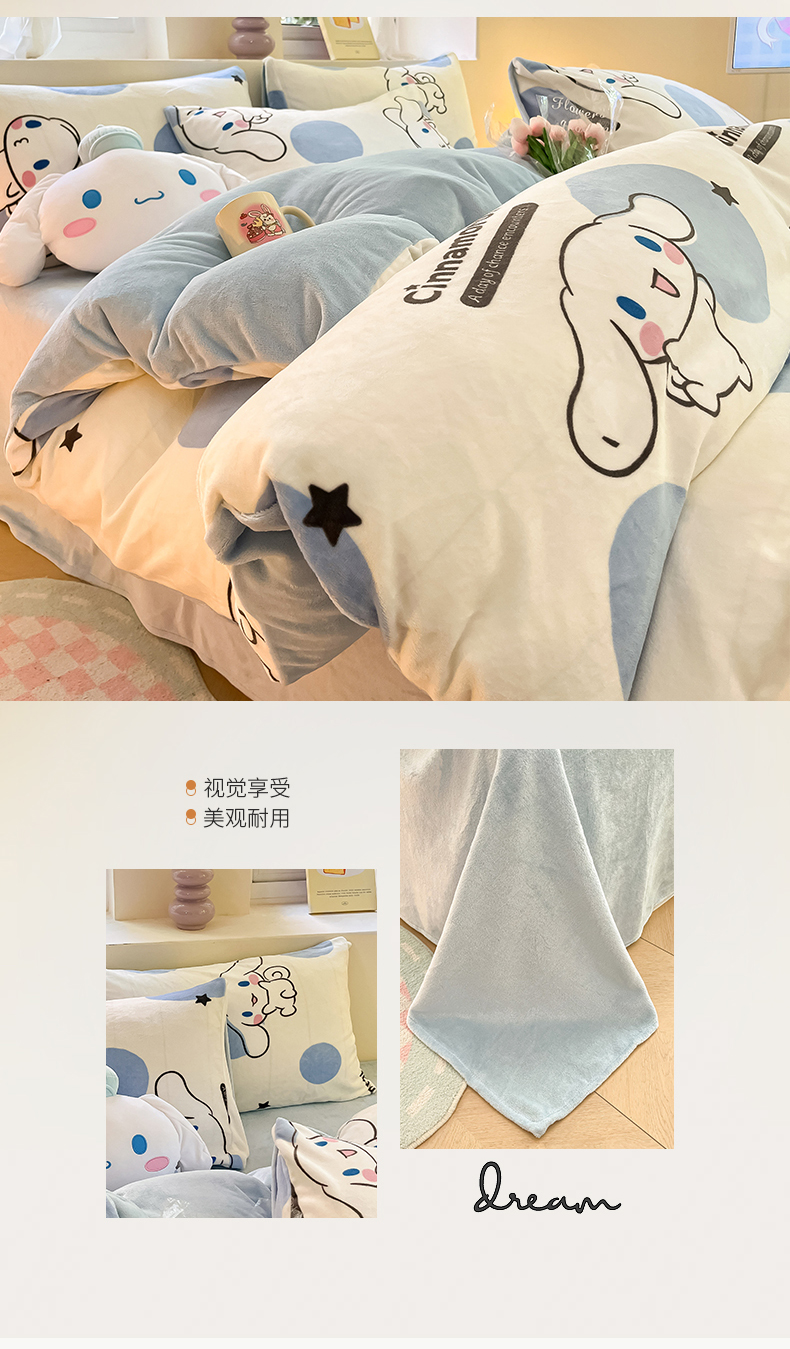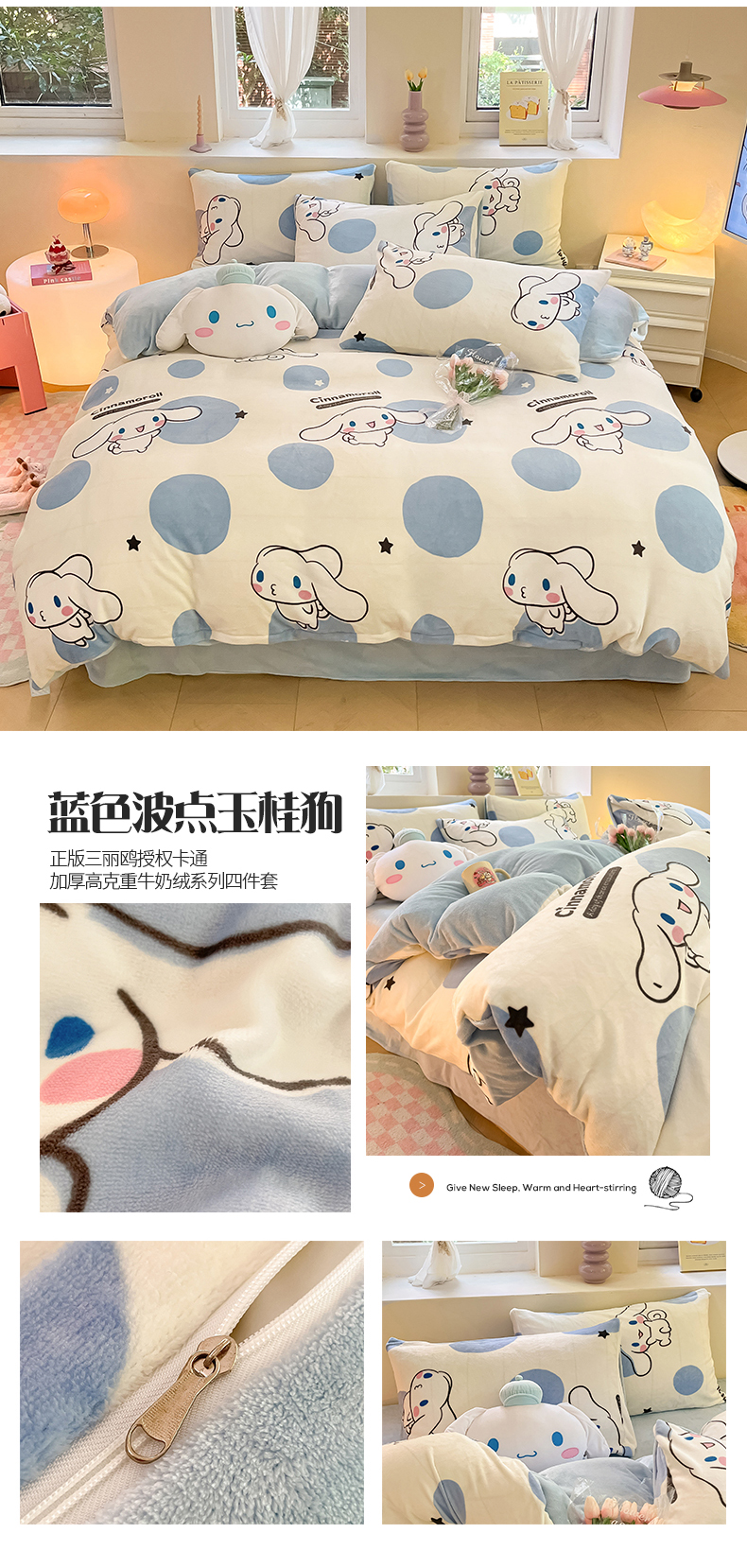 当前位置: 91家纺网 > 商品网购 > 床品套件 > 四件套 > 牛奶绒四件套 > 桃子 2023新款正版三丽鸥授权卡通加厚高克重牛奶绒系列四件套 绒三丽鸥-蓝色波点玉桂狗