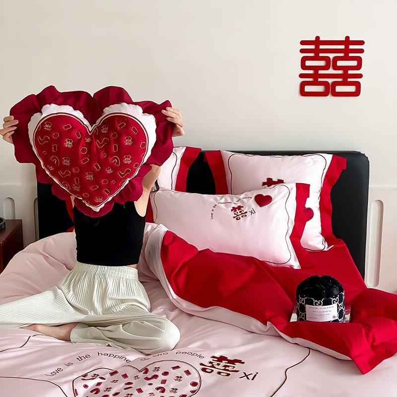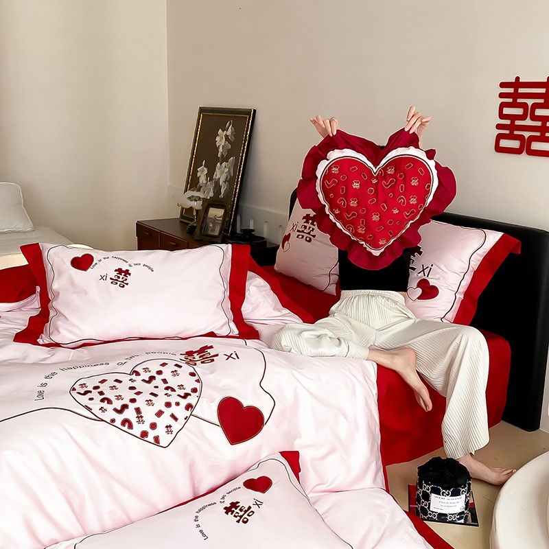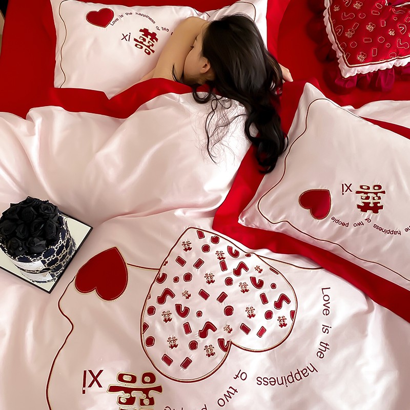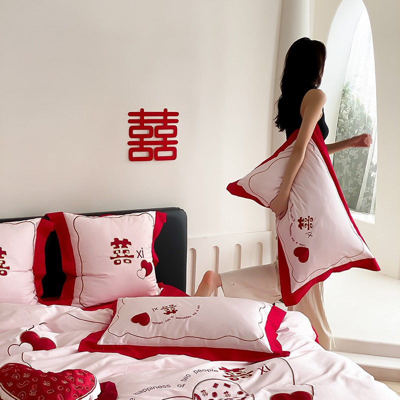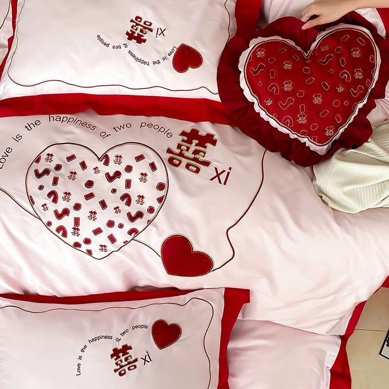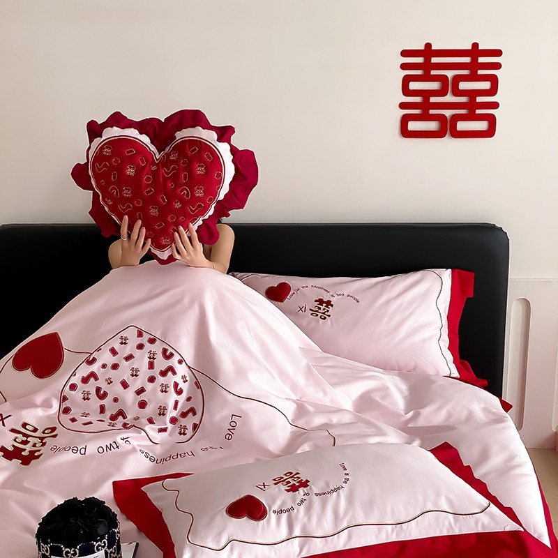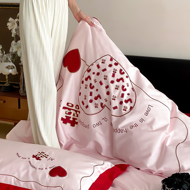 用心 2023新款长绒棉婚庆四件套高端绣花简约家居 心喜