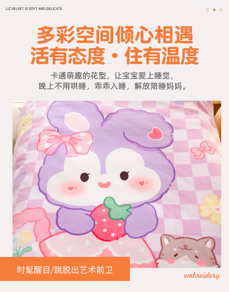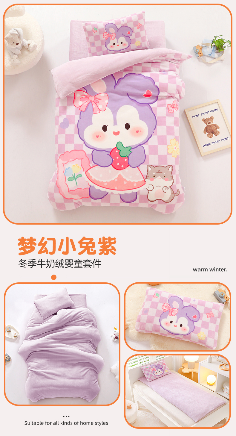 当前位置: 91家纺网 > 商品网购 > 床品套件 > 多件套 > 多件套 > 鱼宝 2023新款大版牛奶绒婴童套件 梦幻小兔紫
