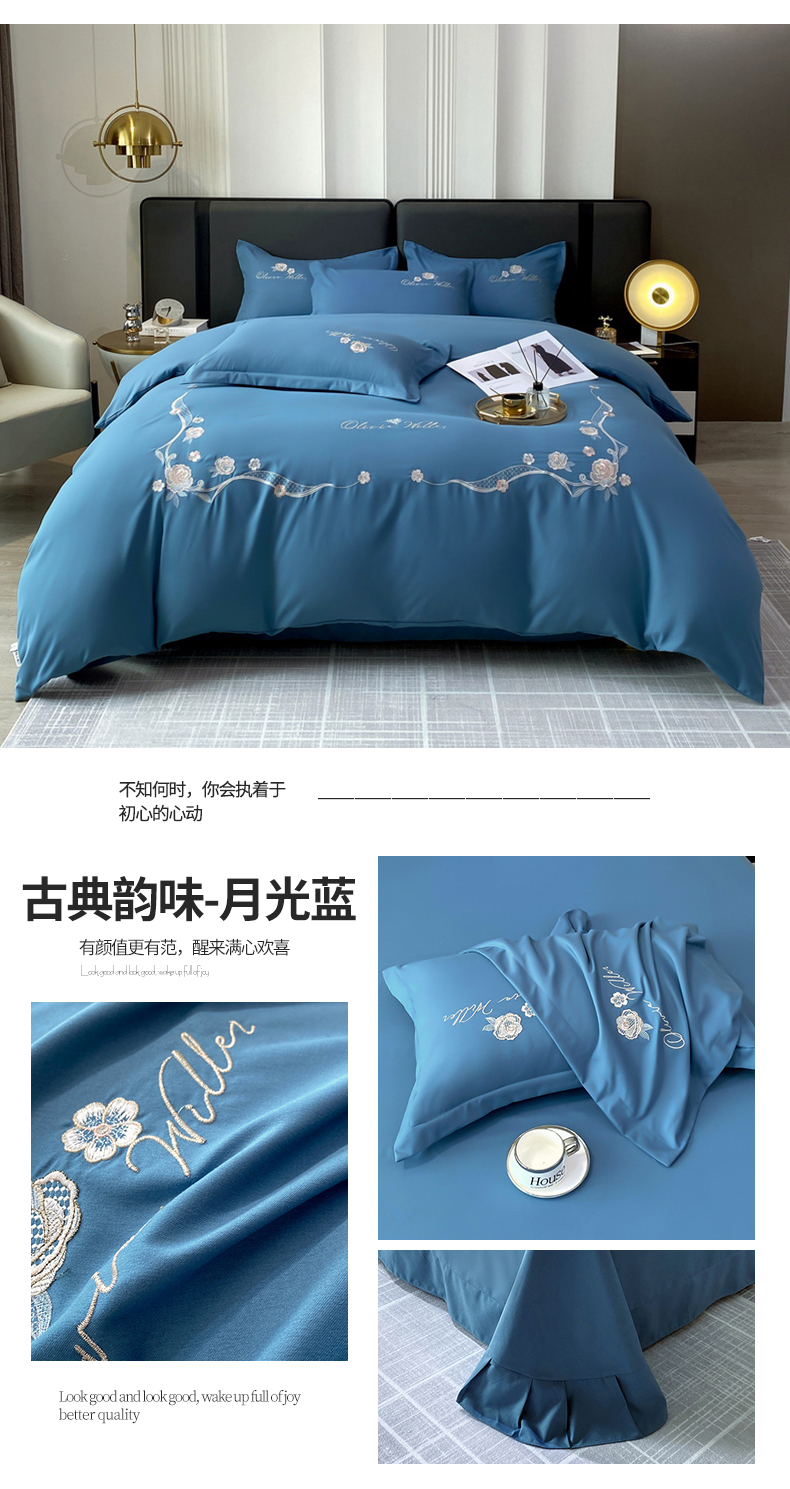 商品名称:帛缔思 2023新款轻奢长绒棉绣花四件套-古典韵味 古典韵味-月光蓝
