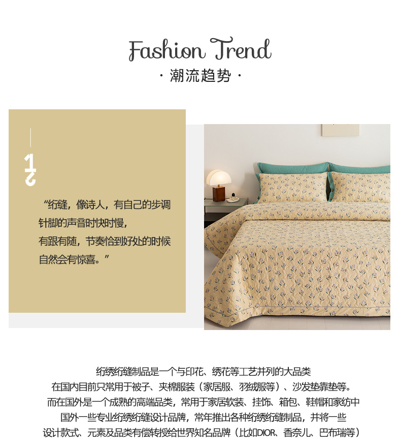 商品名称:优乐家纺 2023新款夹棉绗缝套件及单品系列-单床盖 清风摇曳