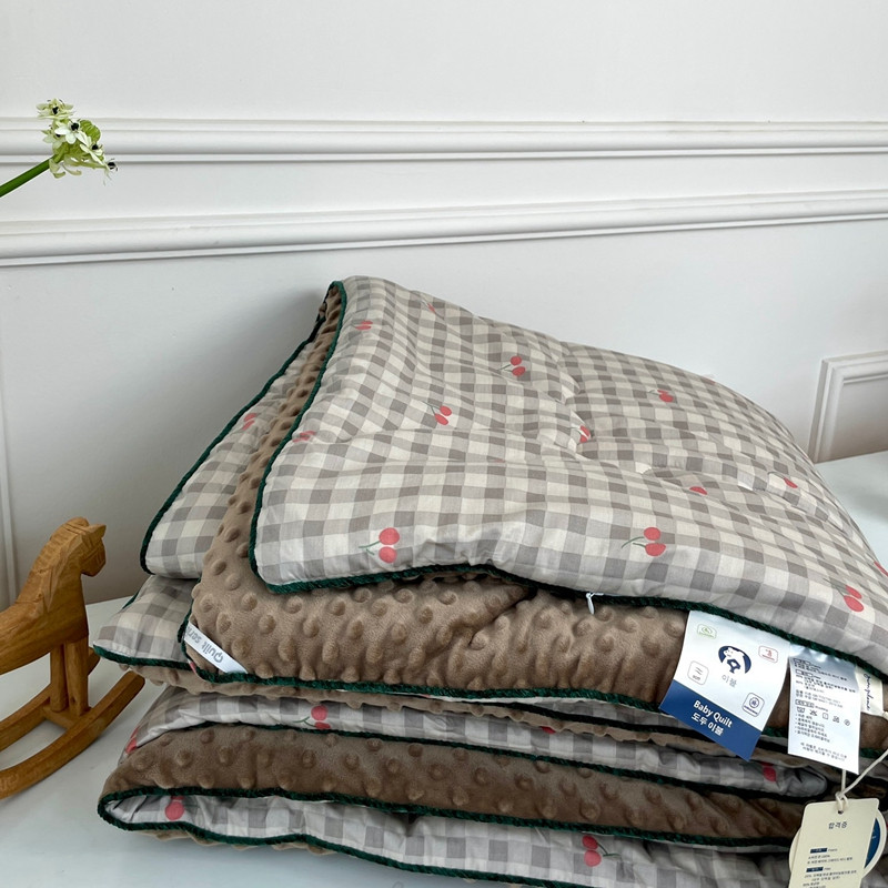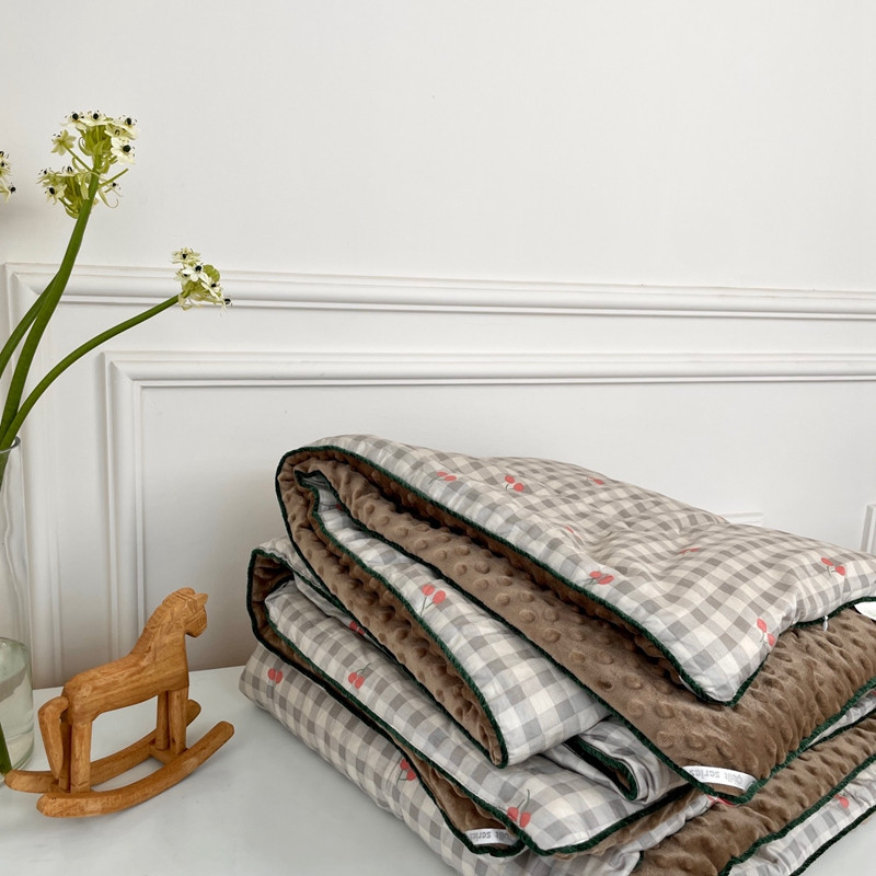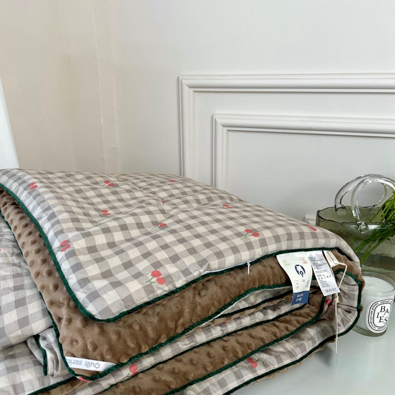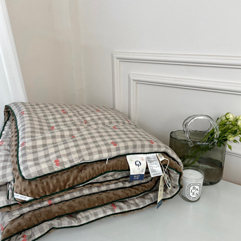 商品名称:源启生活 2023新款韩国小熊双人全棉豆豆四季被 樱桃格