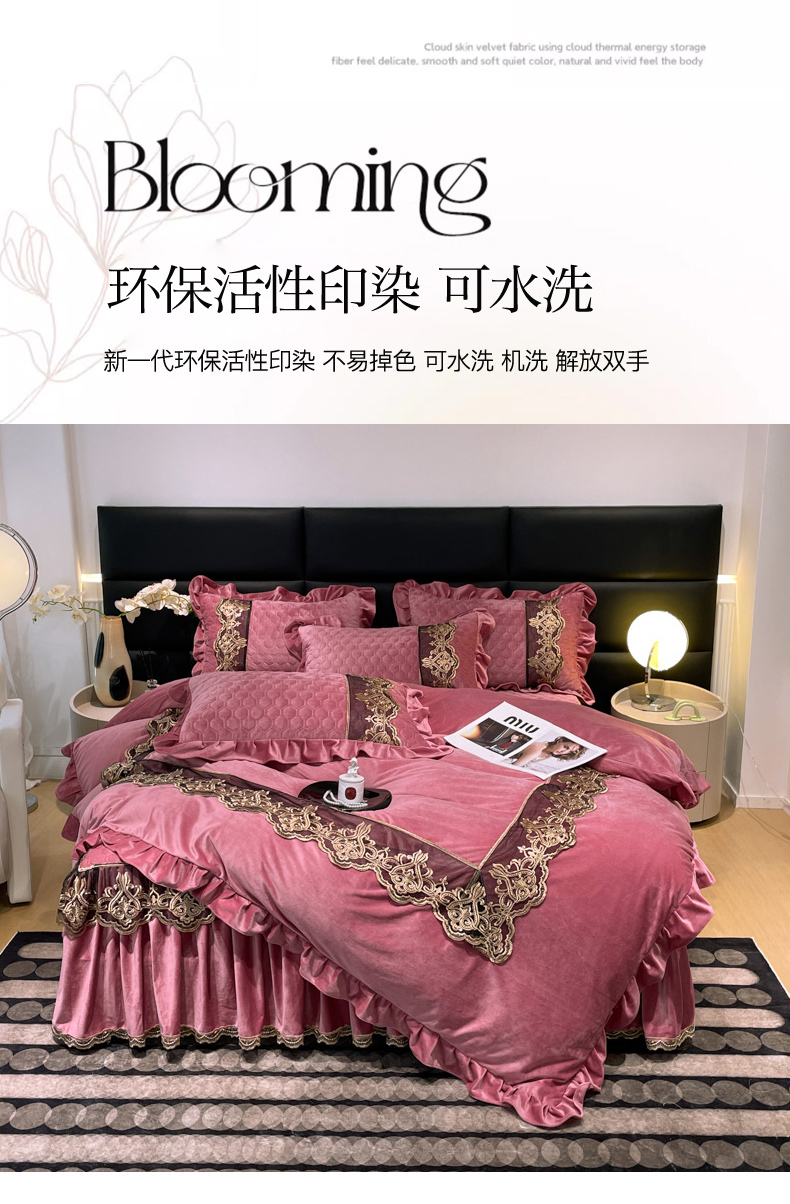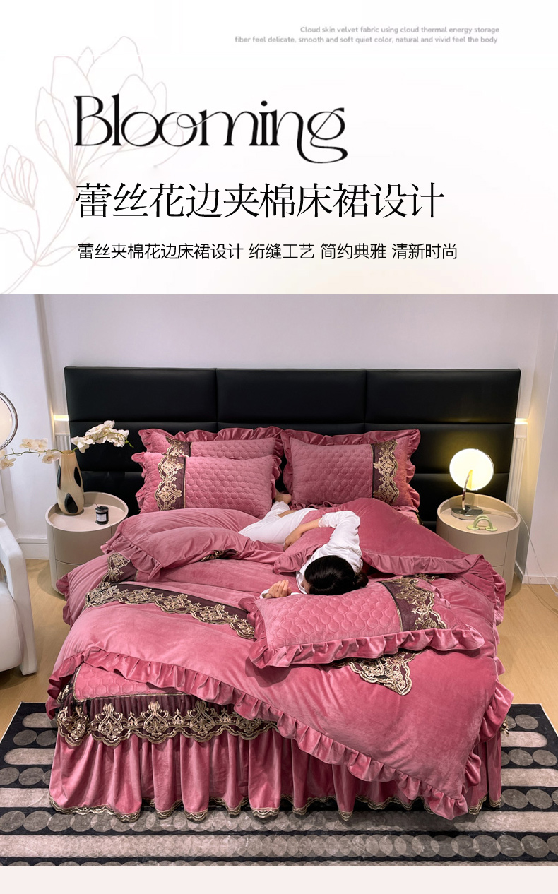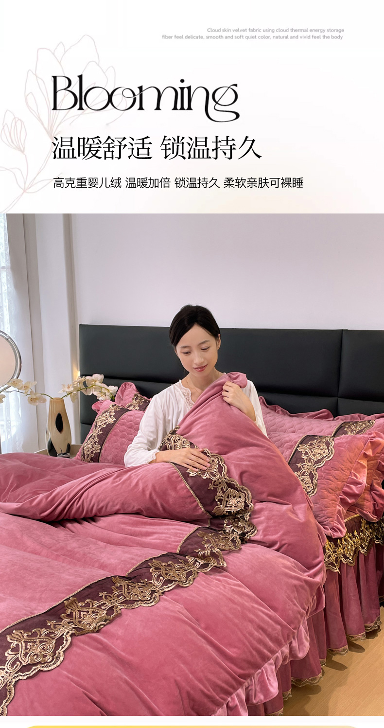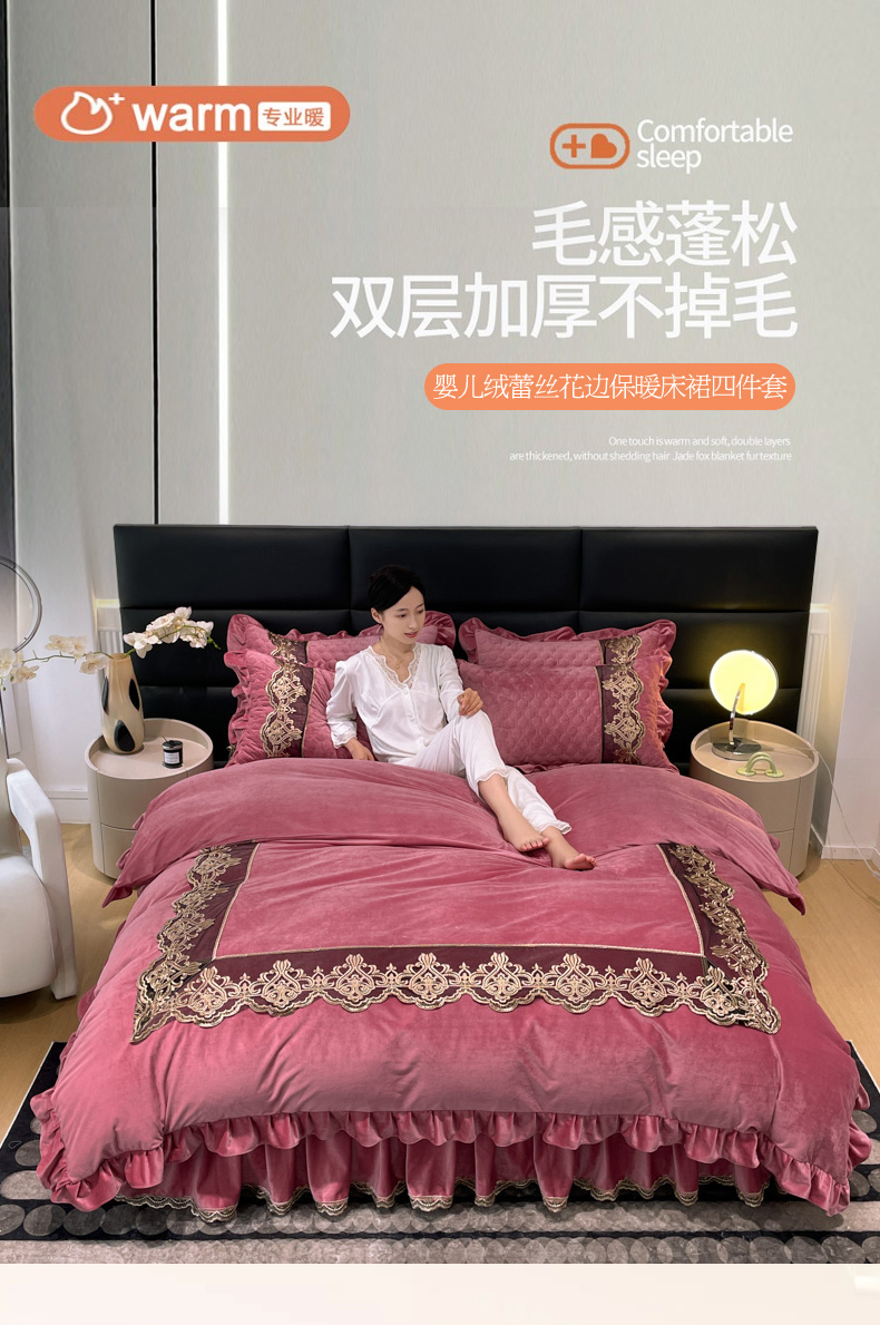 当前位置: 91家纺网 > 商品网购 > 床品套件 > 四件套 > 宝宝绒四件套 > 忘忧草 2023新款婴儿绒夹棉床裙四件套-爱莎 豆沙红