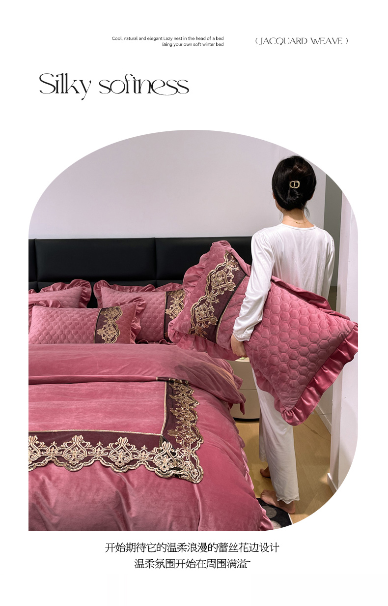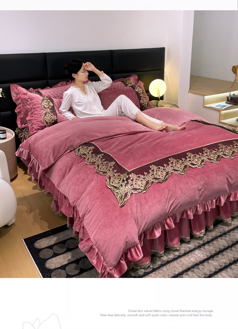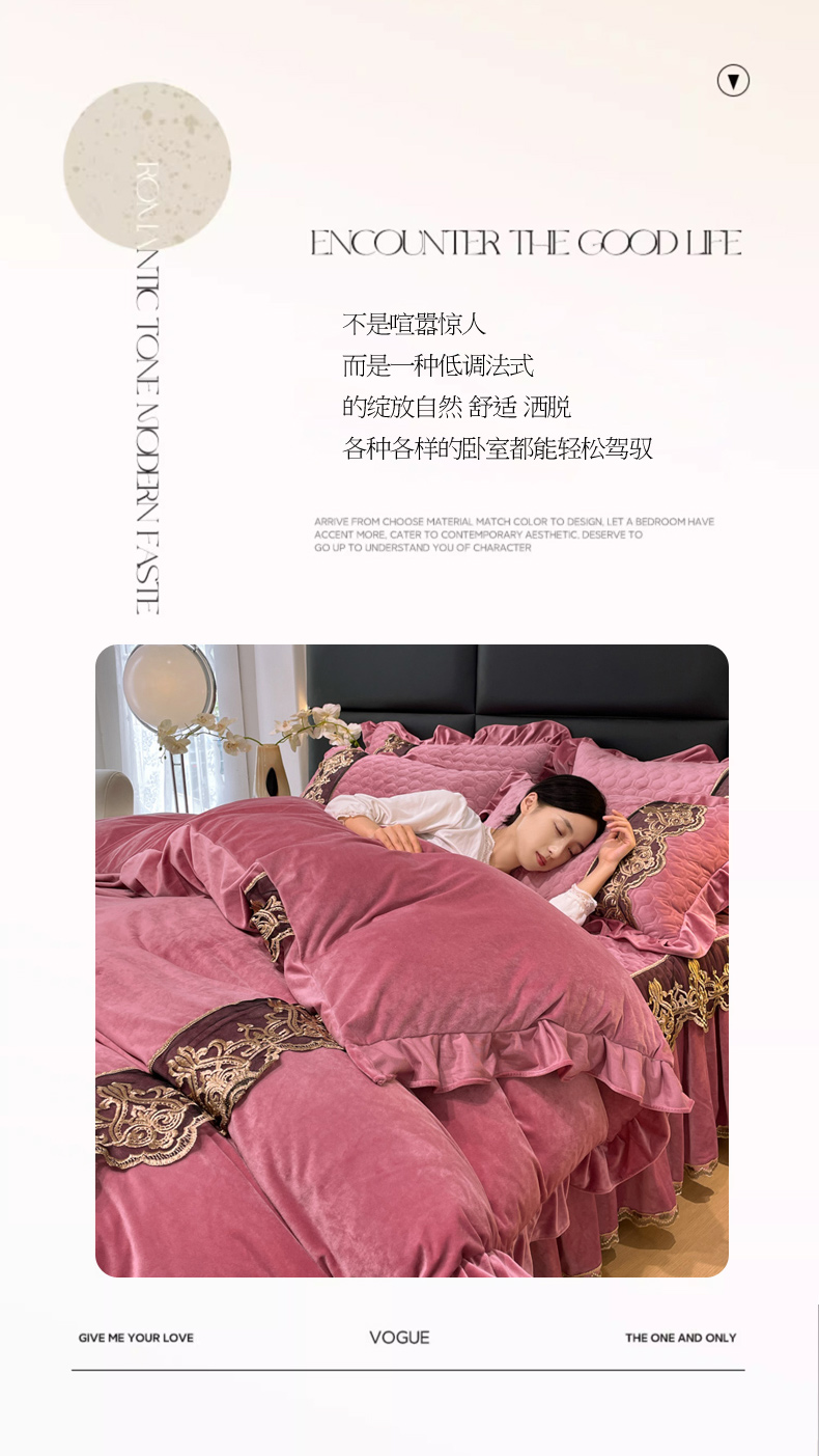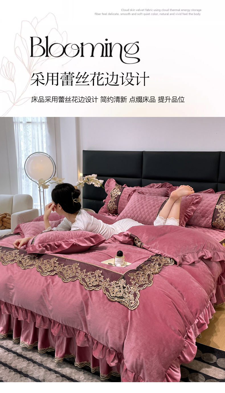 当前位置: 91家纺网 > 商品网购 > 床品套件 > 四件套 > 宝宝绒四件套 > 忘忧草 2023新款婴儿绒夹棉床裙四件套-爱莎 豆沙红