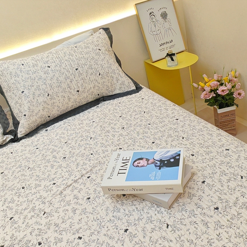 有货 2023秋冬新品韩式13372全棉棉花床盖三件套 床盖-好事花生
