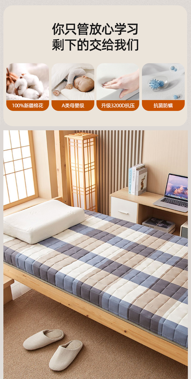 商品名称:暖季家纺 2025新款无印风棉花款学生床垫 蓝大格
