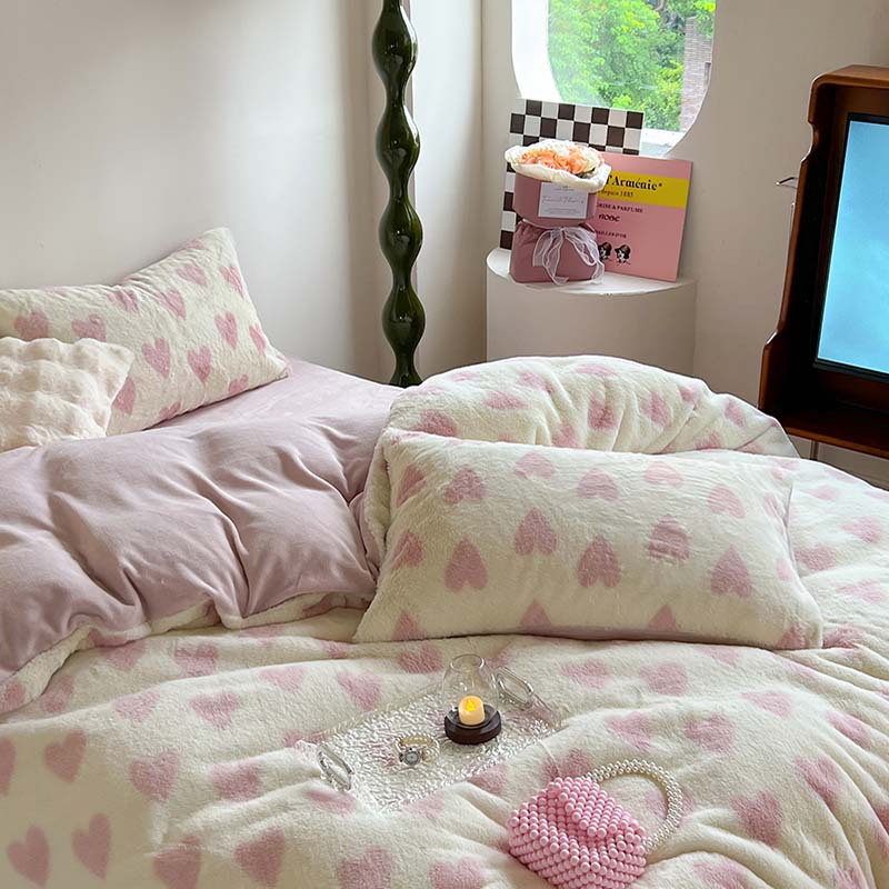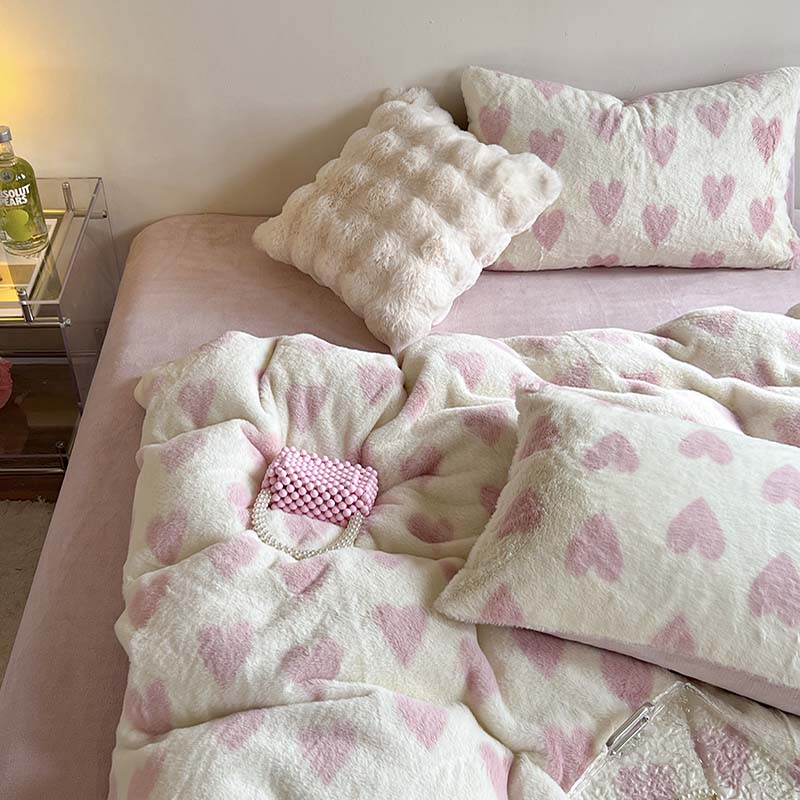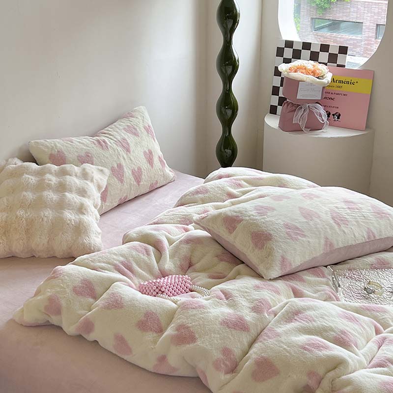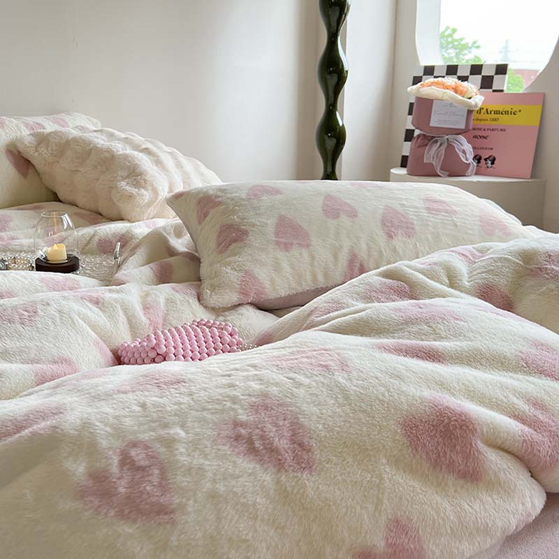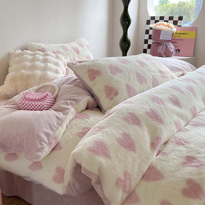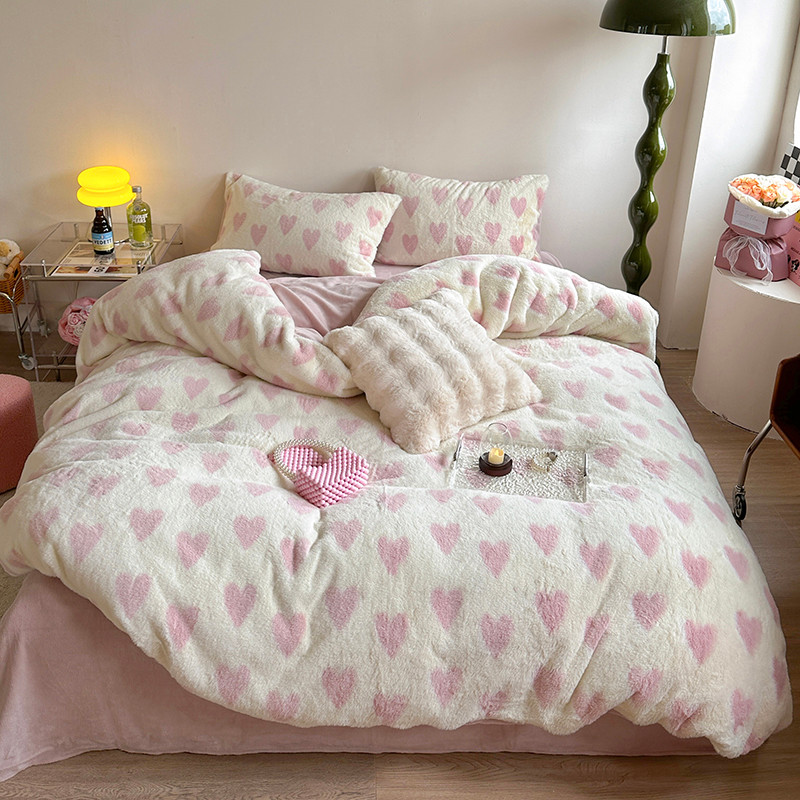 商品名称:柚子家纺 2023新款高克重舒适保暖兔绒印花四件套 心语粉