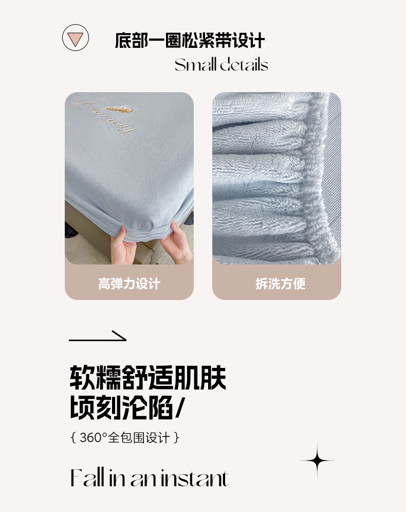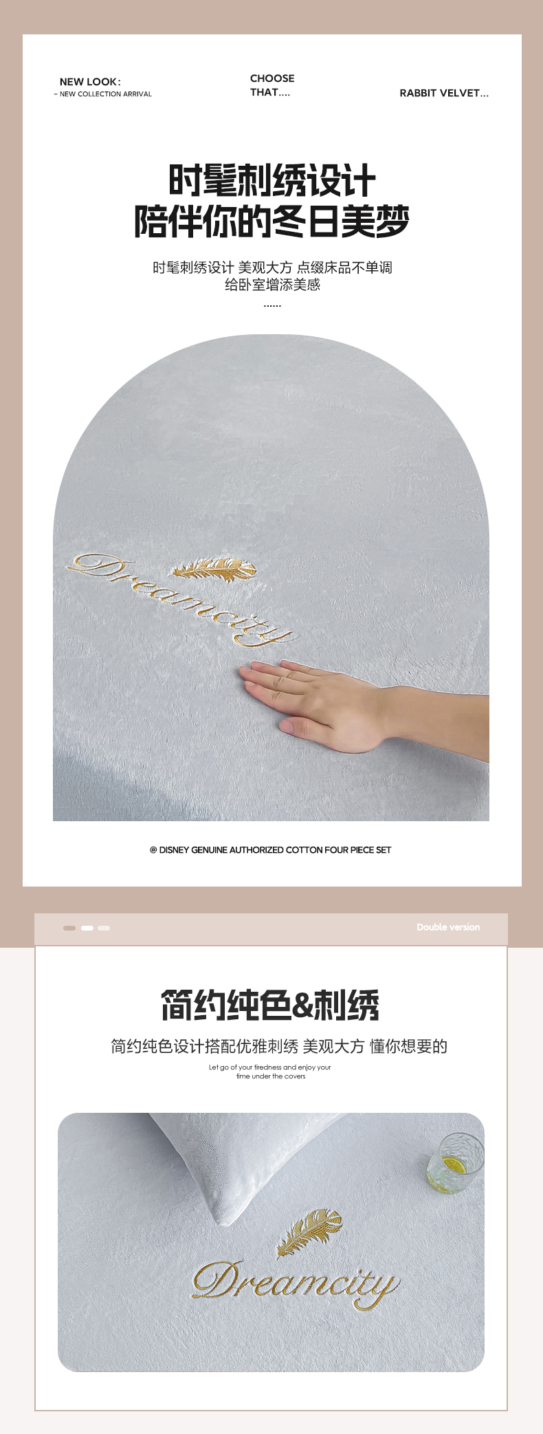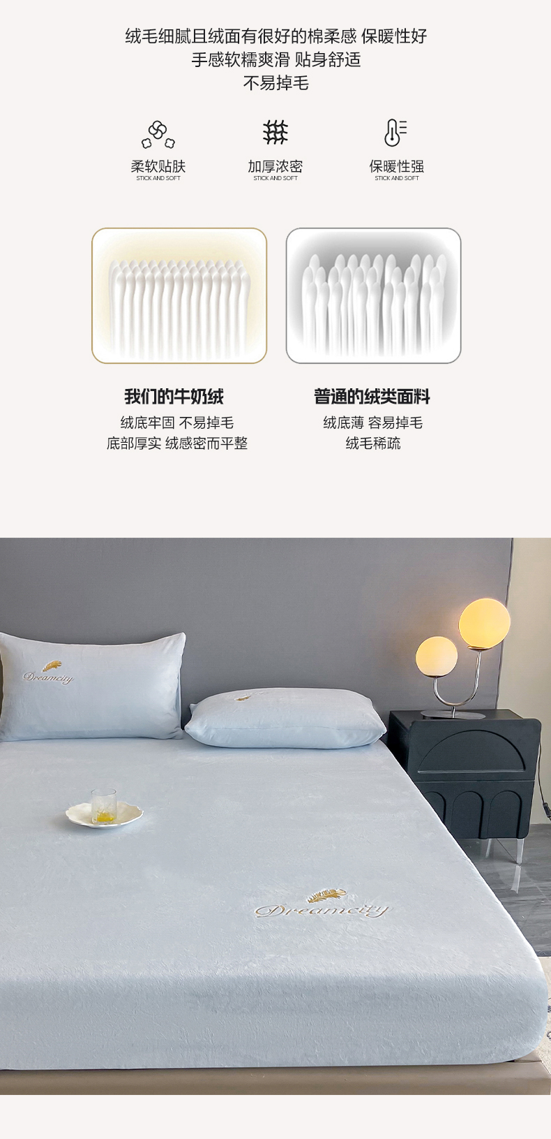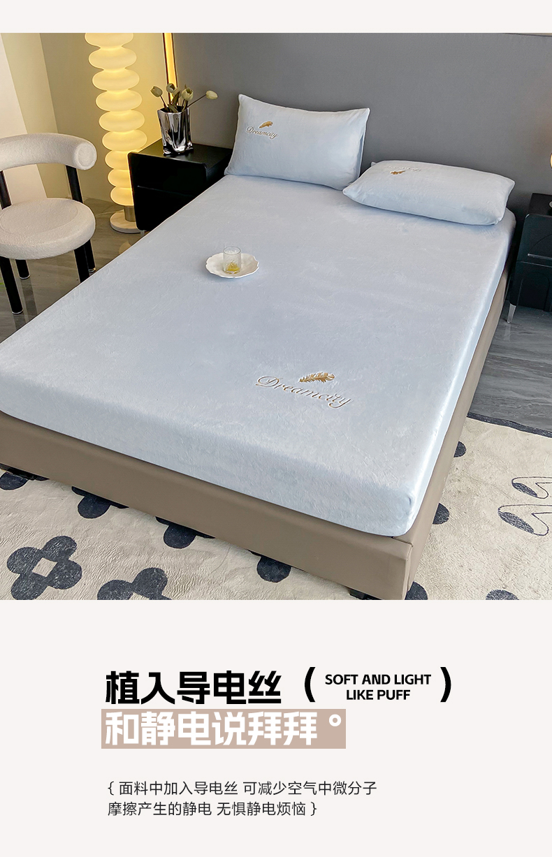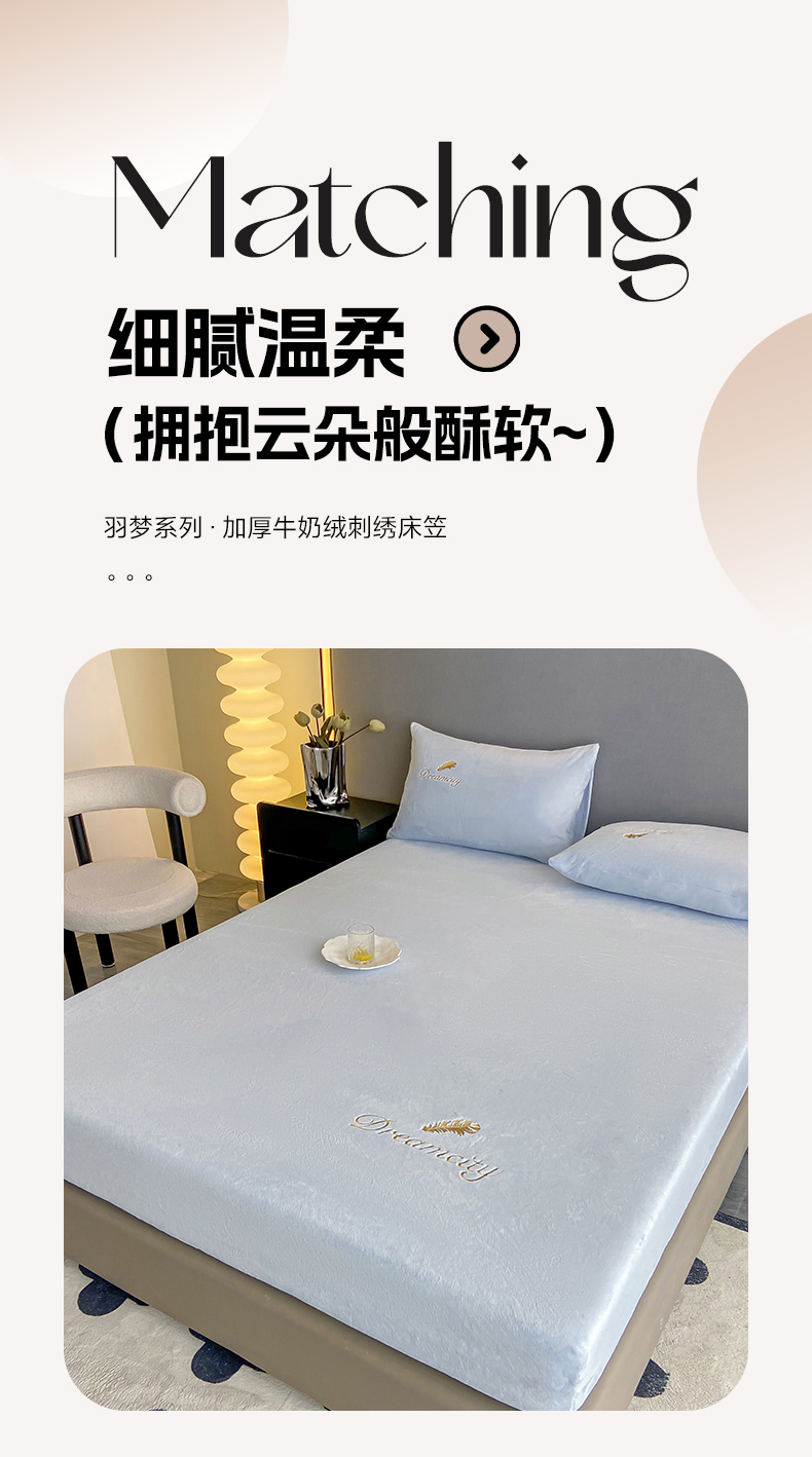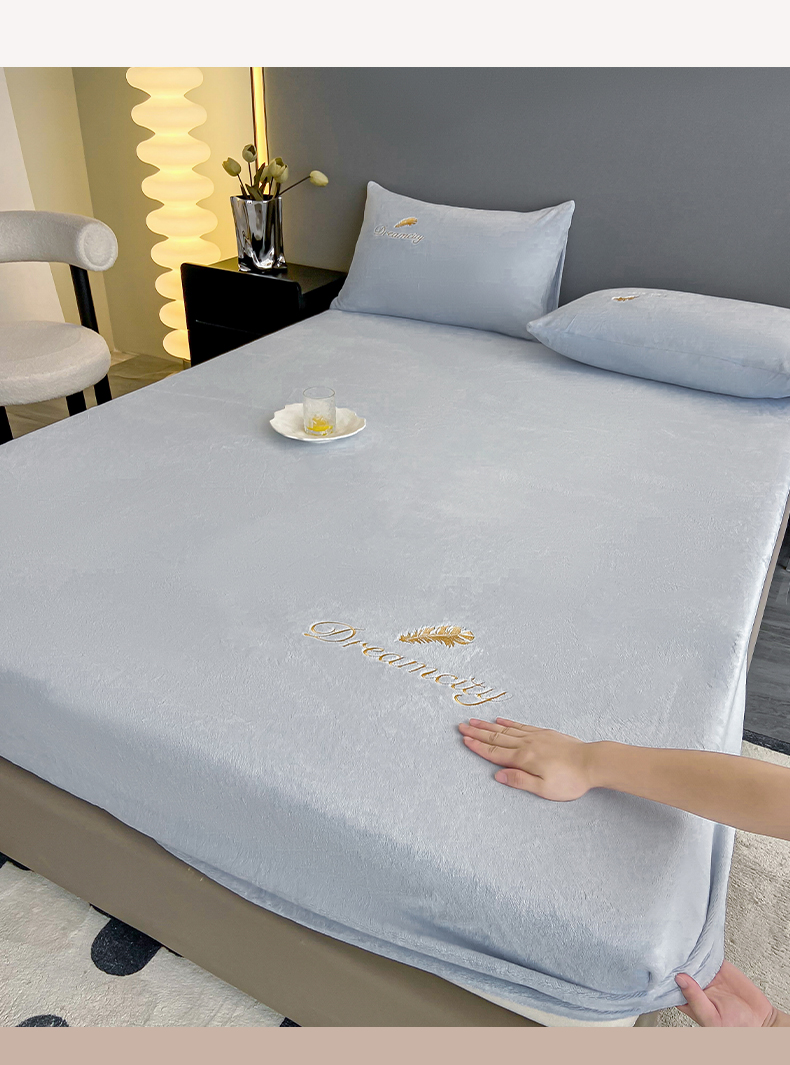 • 91家纺网 家纺一手货源 找家纺 古吉梦 2023新款牛奶绒刺绣床笠-羽梦 羽梦-星辰灰