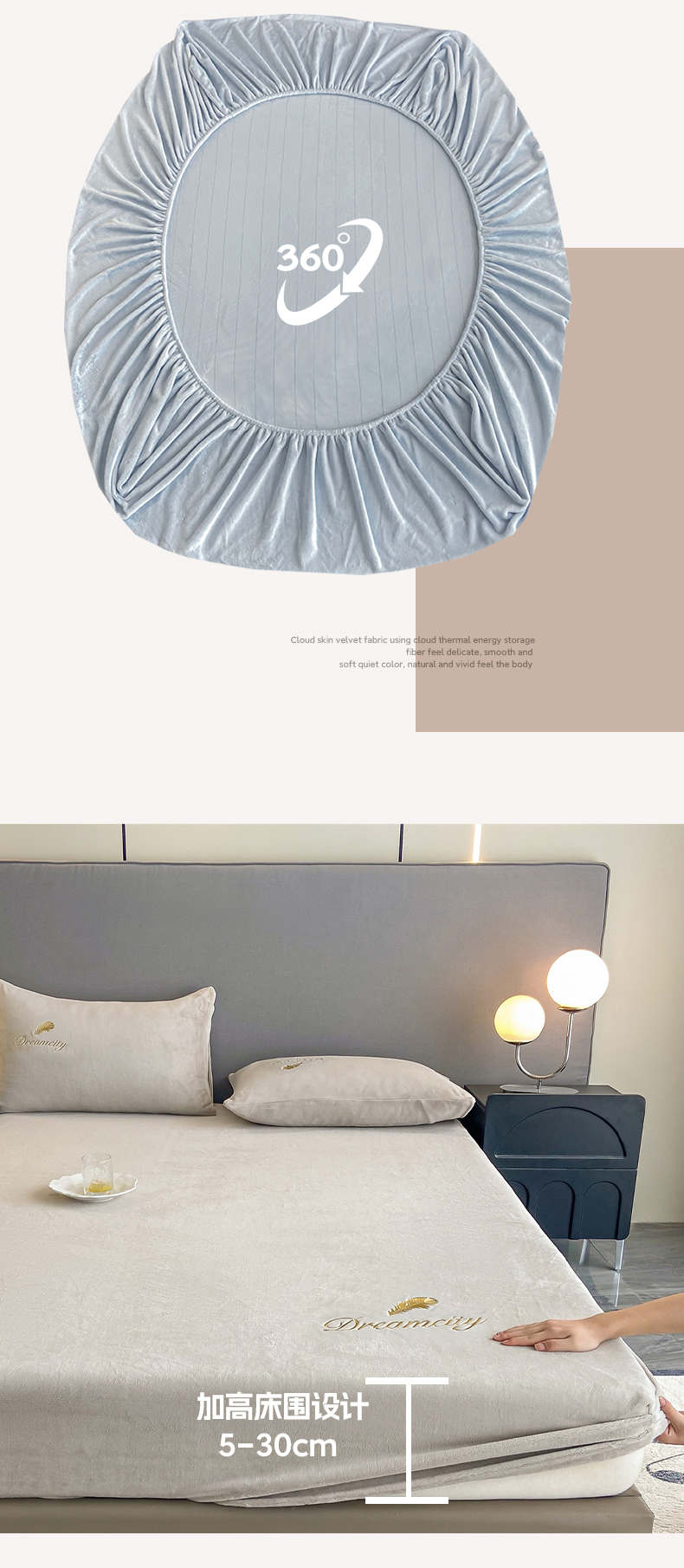 古吉梦 2023新款牛奶绒刺绣床笠-羽梦 羽梦-星辰灰