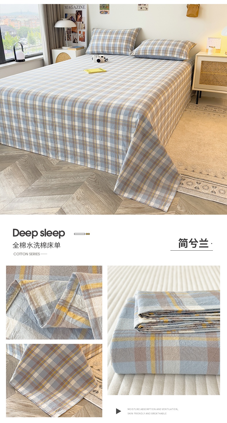 • 91家纺网 家纺一手货源 找家纺 芃成家纺 2023新款全棉水洗棉床单 简兮兰