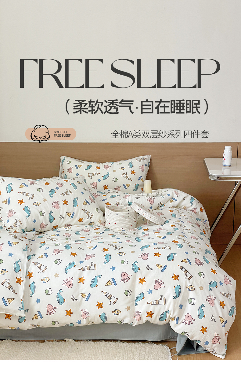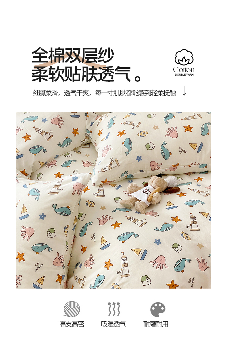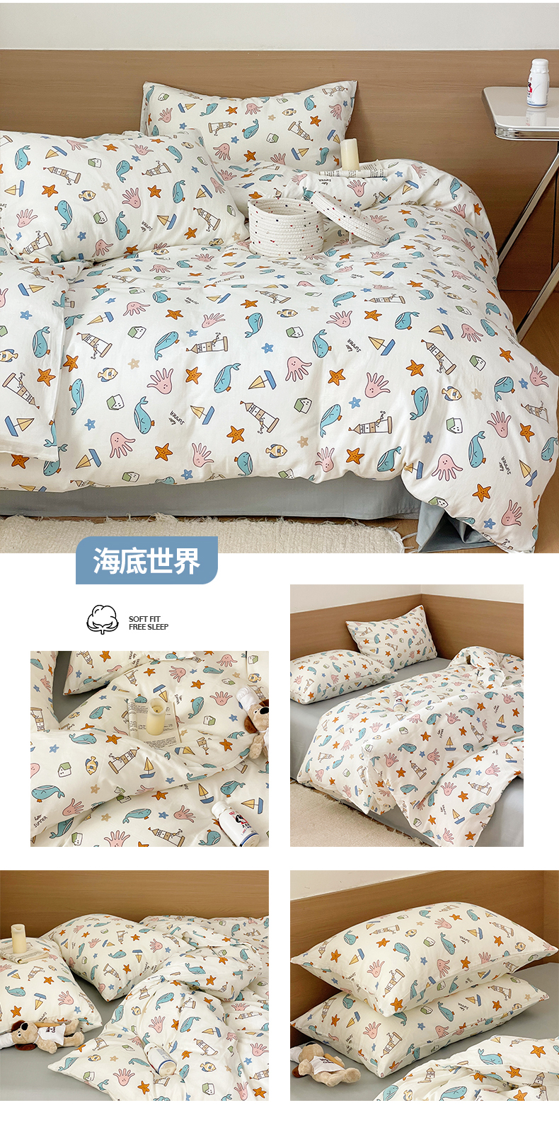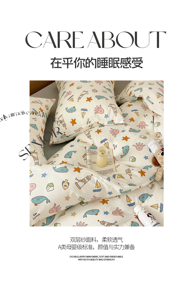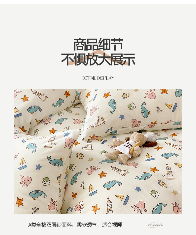 当前位置: 91家纺网 > 商品网购 > 床品套件 > 四件套 > 全棉普通四件套 > 窝米 2023秋季新品全棉双层纱四件套系列 海底世界