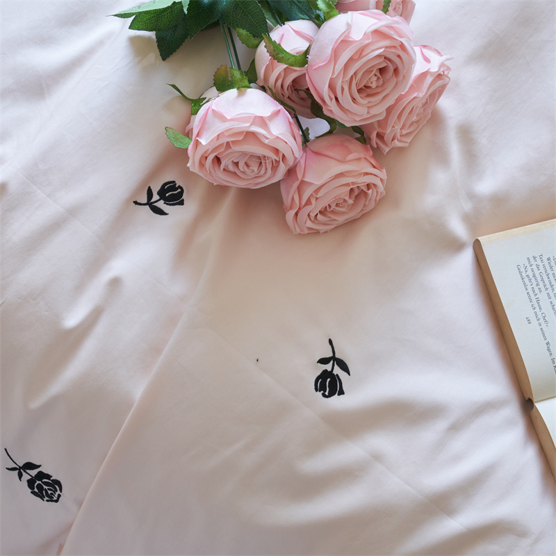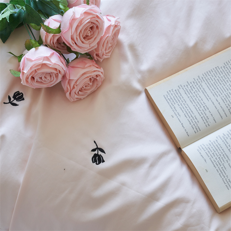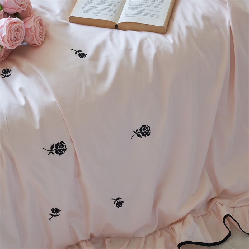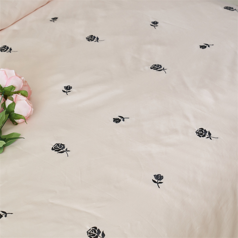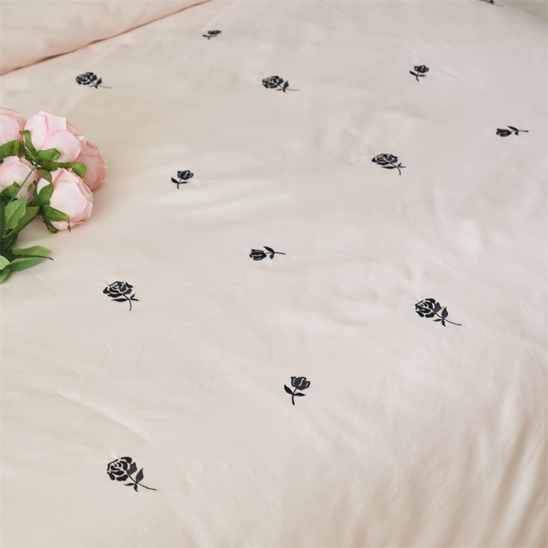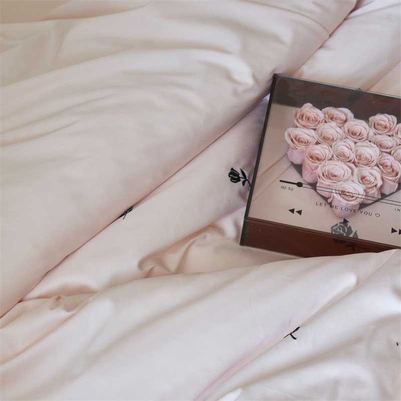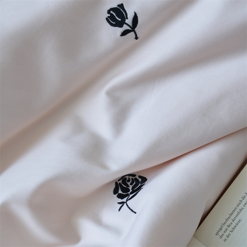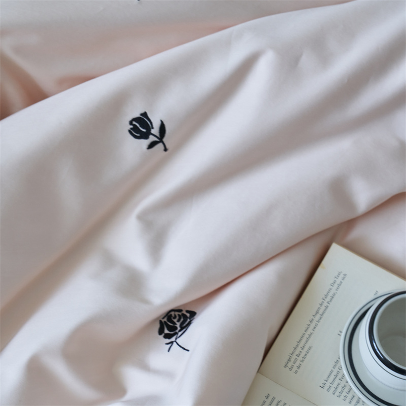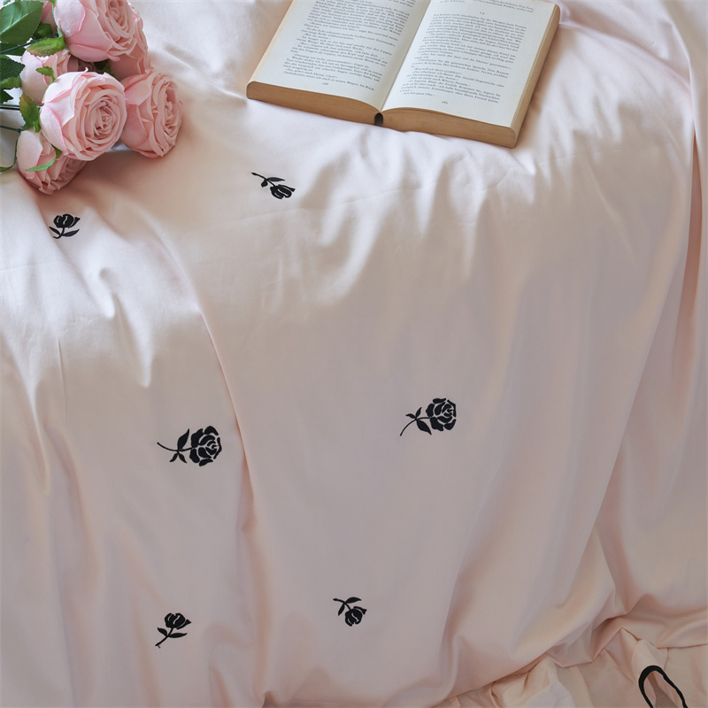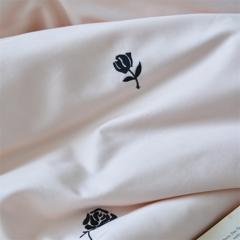 商品名称:窝米 2023新款100支长绒棉刺绣款四件套 玫瑰茶粉