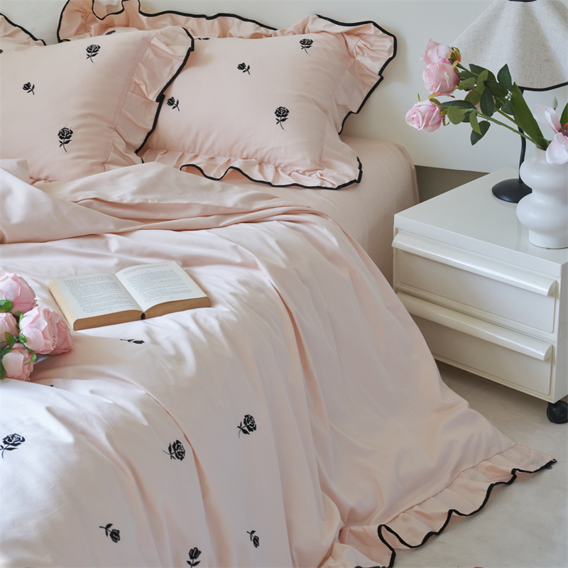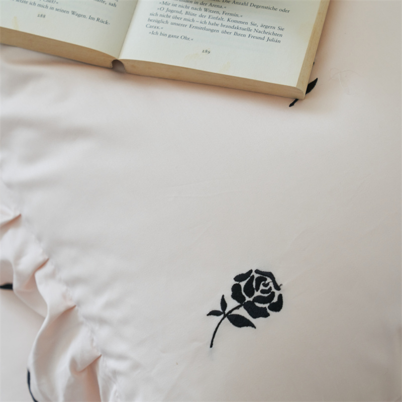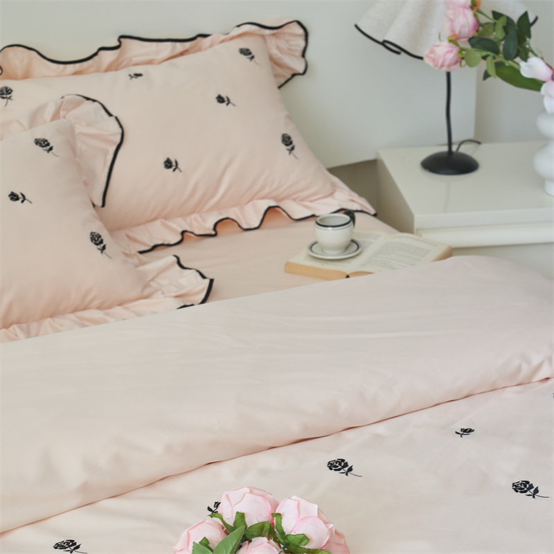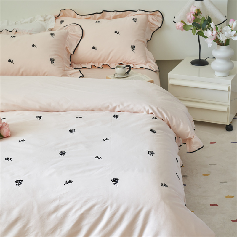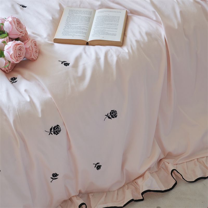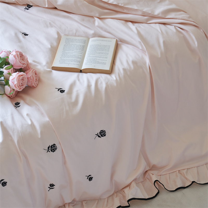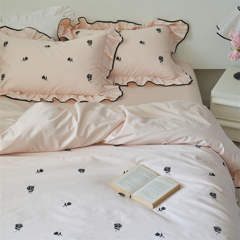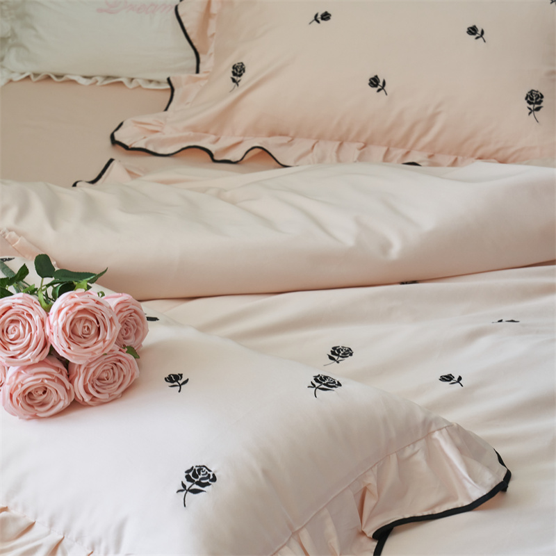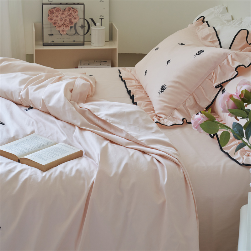 商品名称:窝米 2023新款100支长绒棉刺绣款四件套 玫瑰茶粉