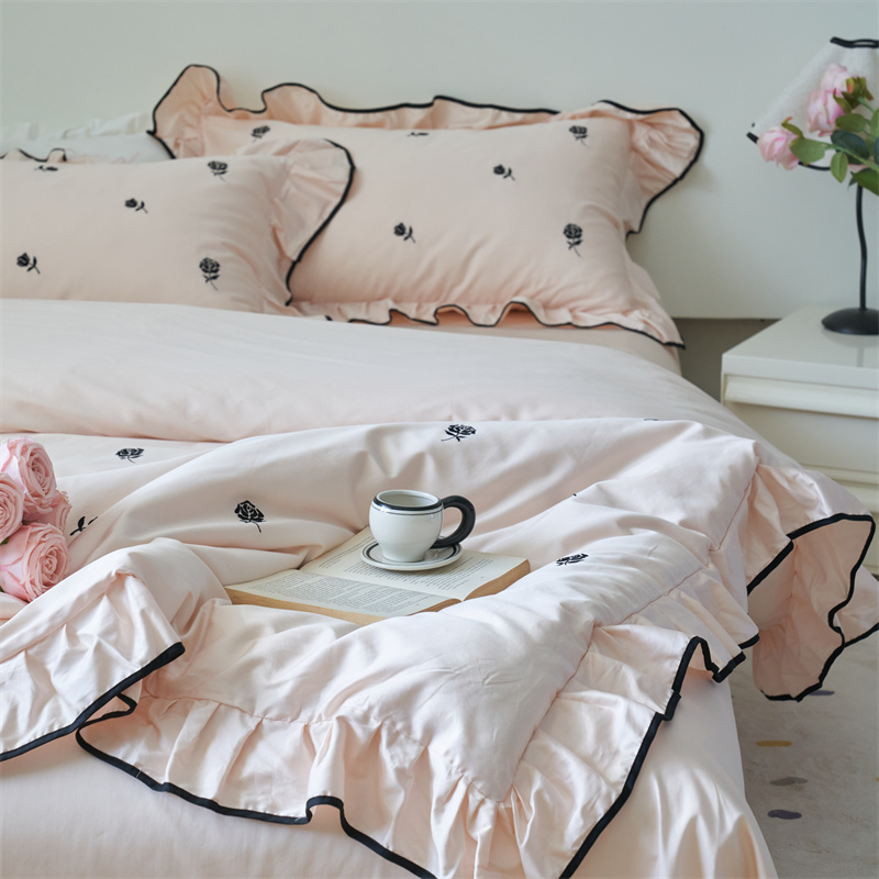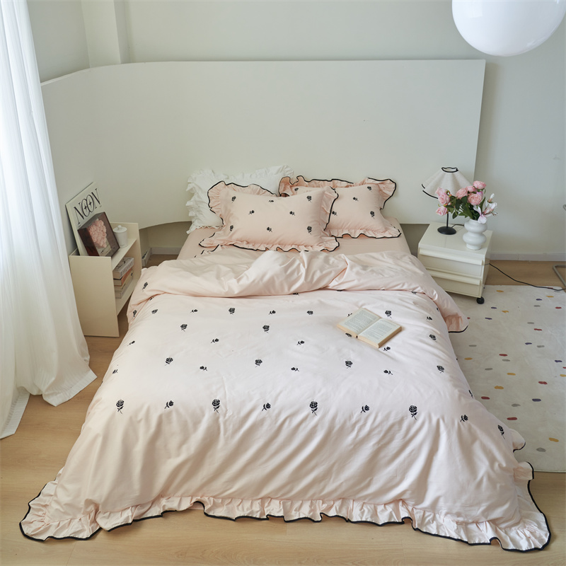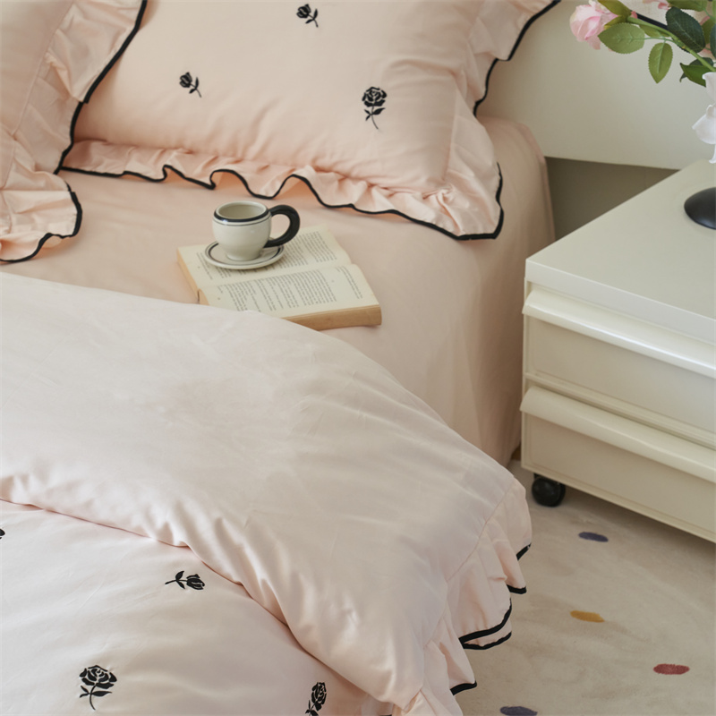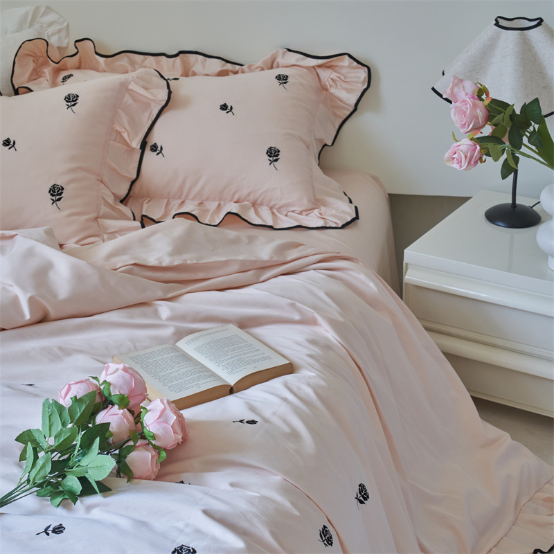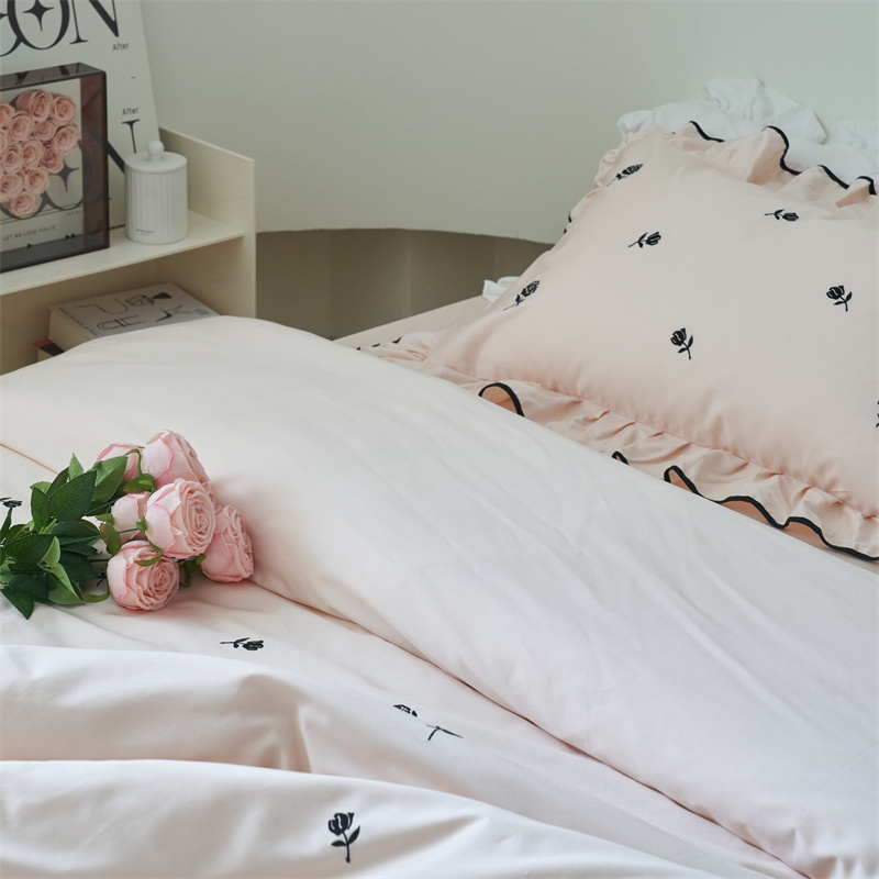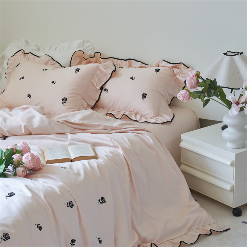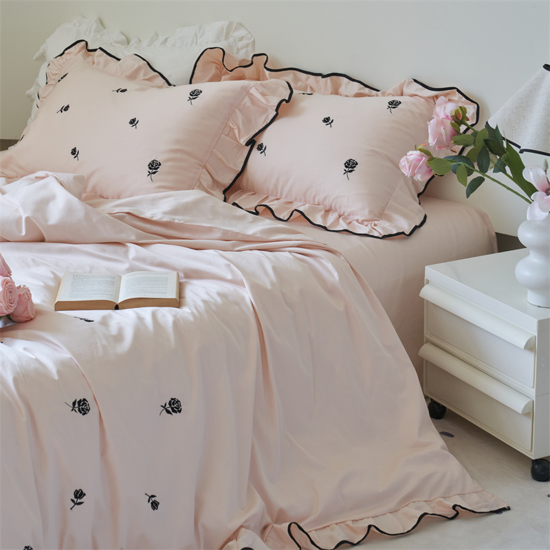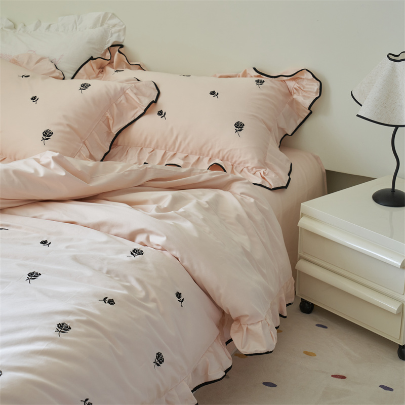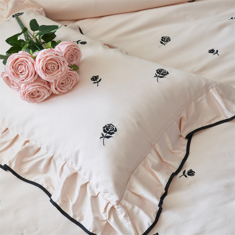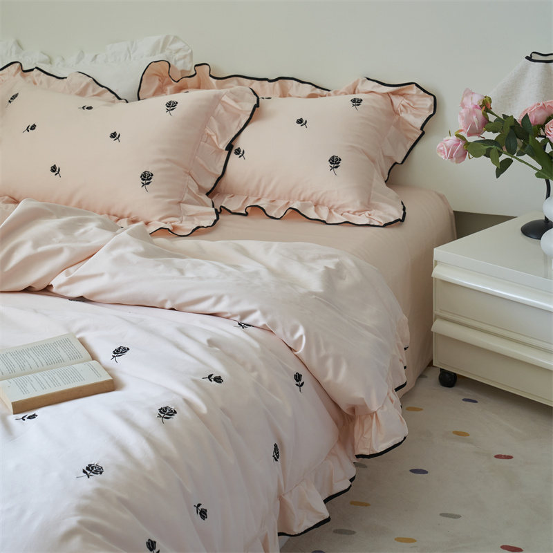 商品名称:窝米 2023新款100支长绒棉刺绣款四件套 玫瑰茶粉