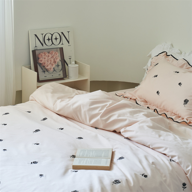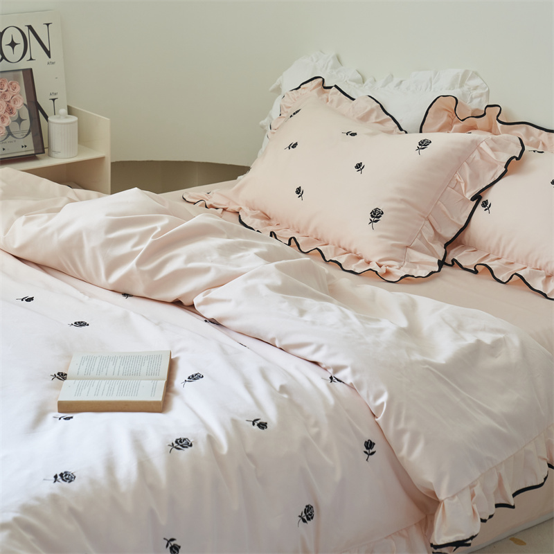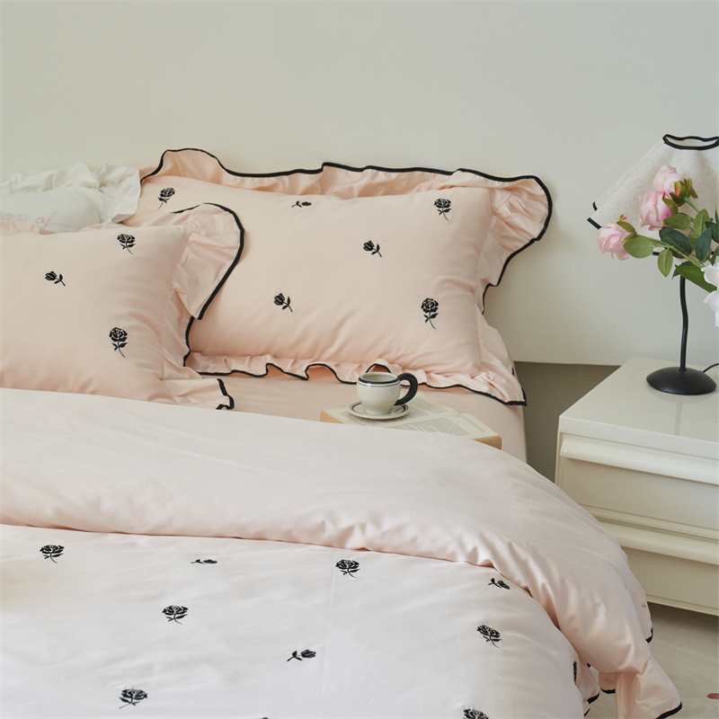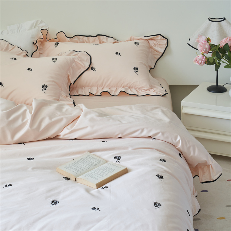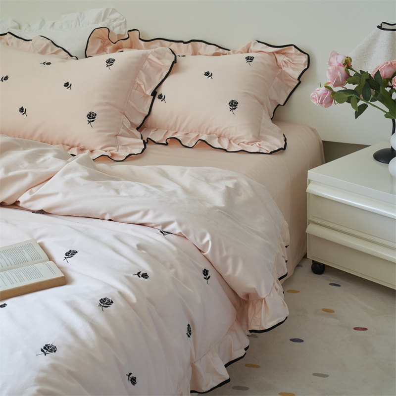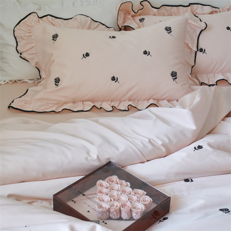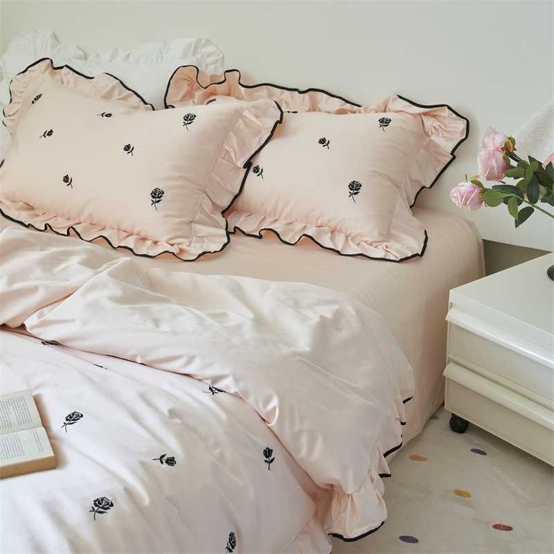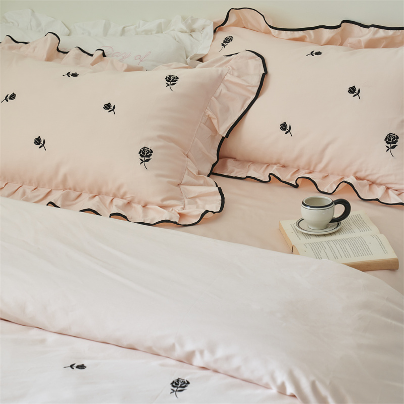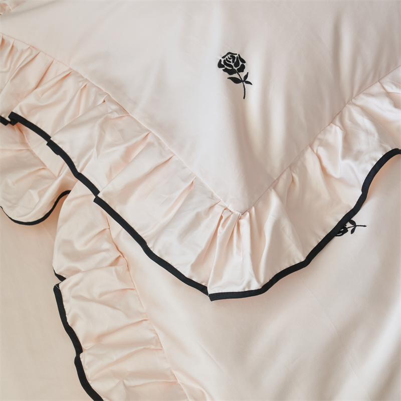 商品名称:窝米 2023新款100支长绒棉刺绣款四件套 玫瑰茶粉