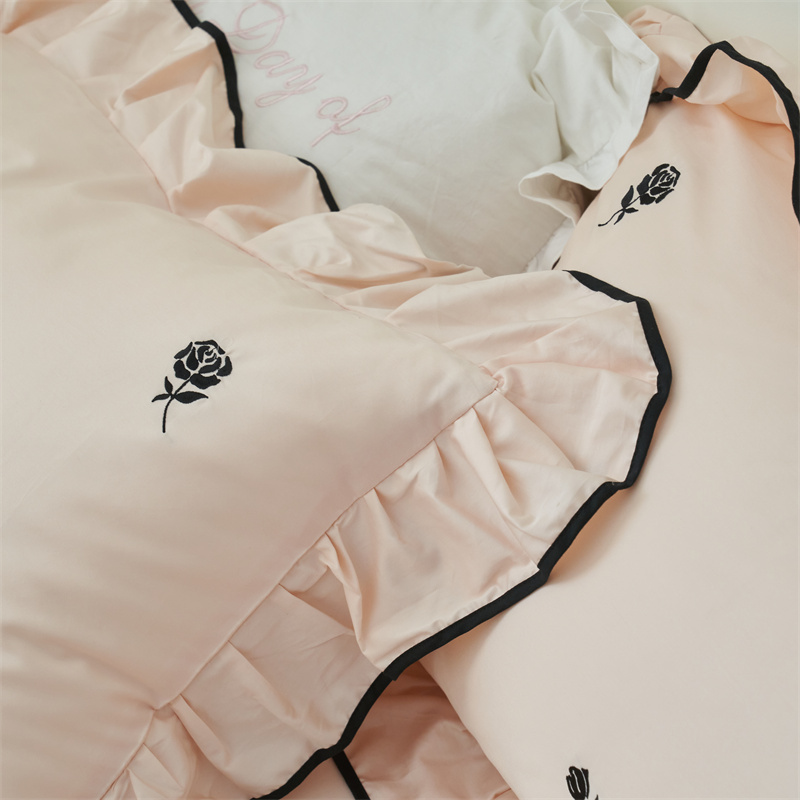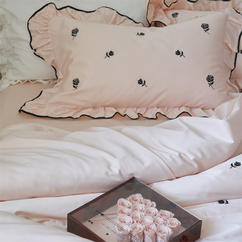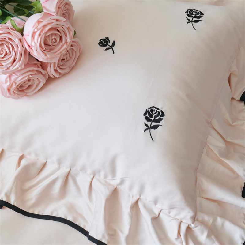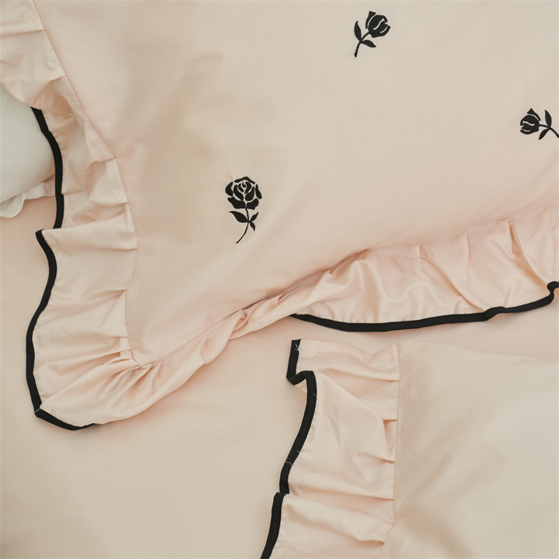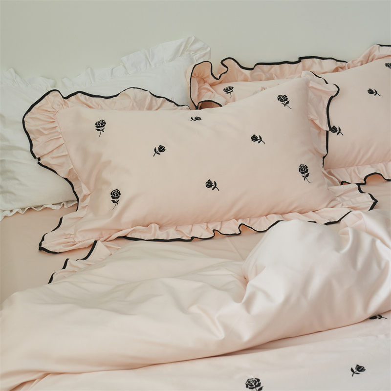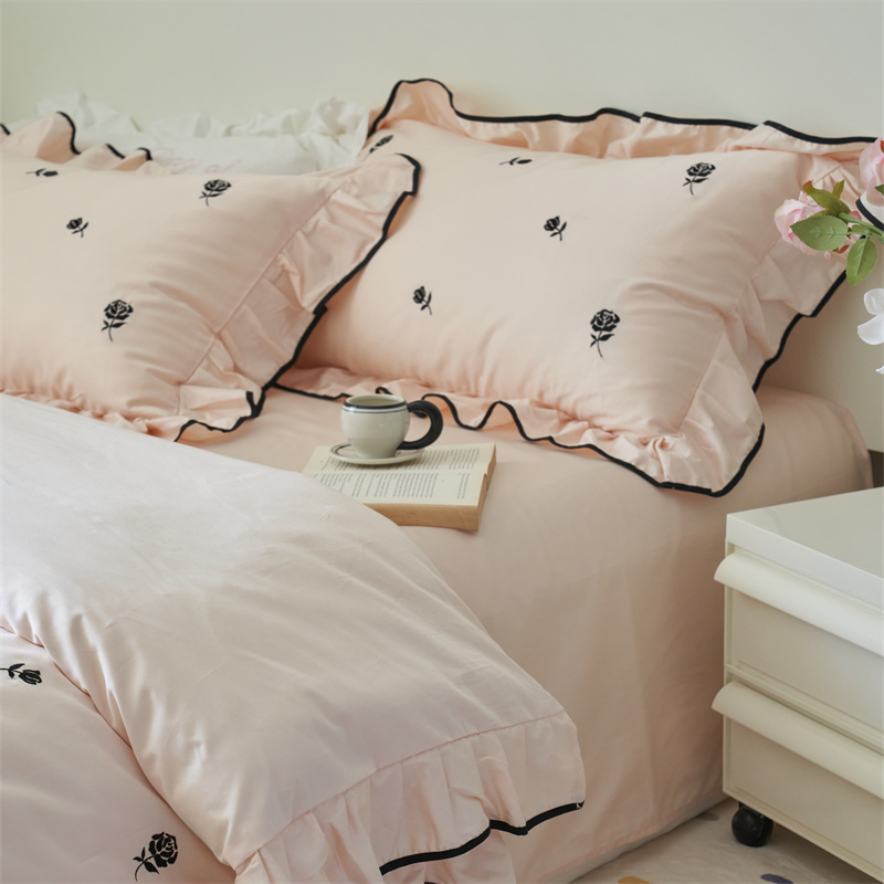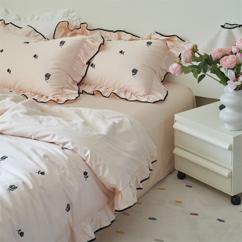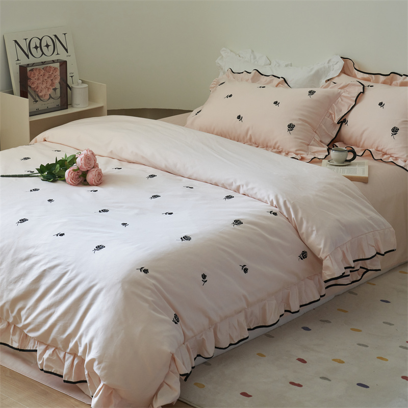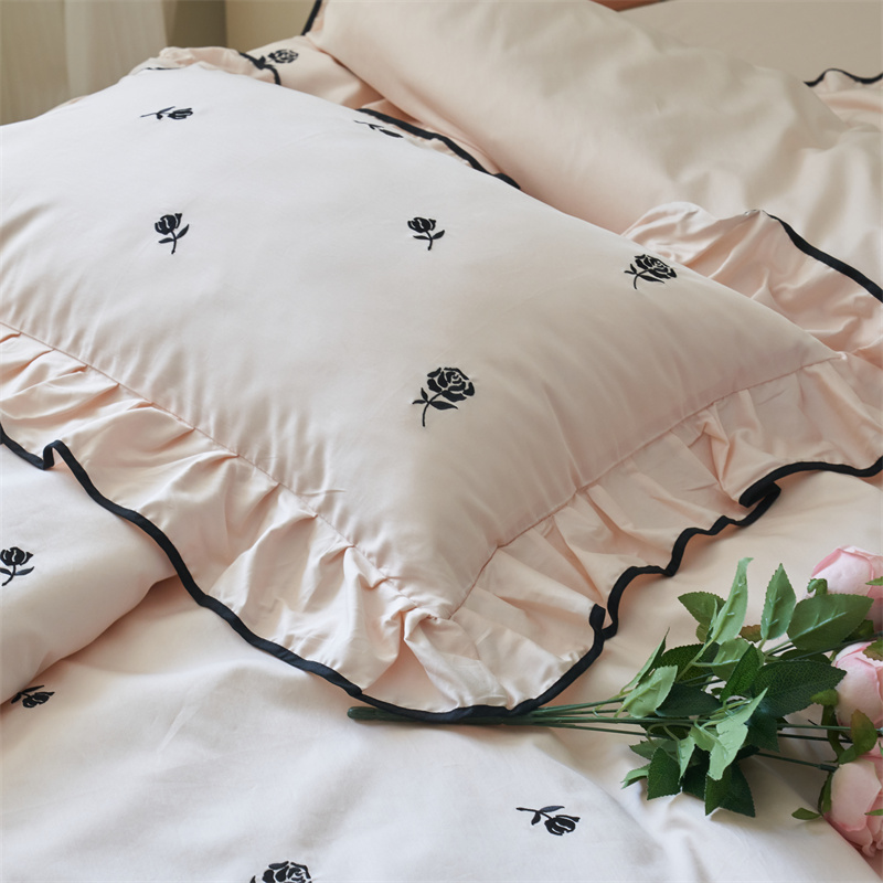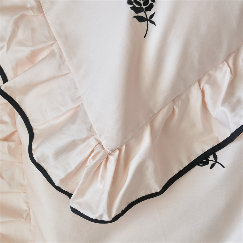 商品名称:窝米 2023新款100支长绒棉刺绣款四件套 玫瑰茶粉