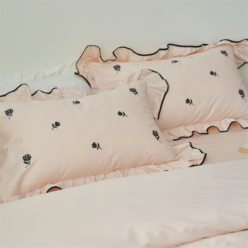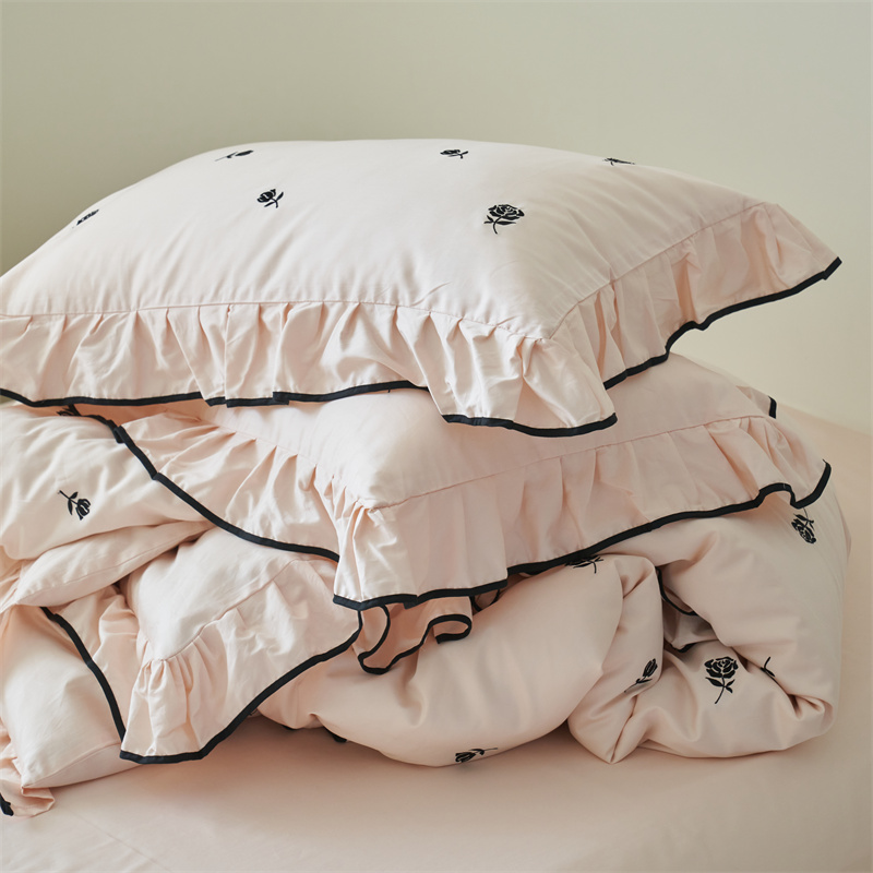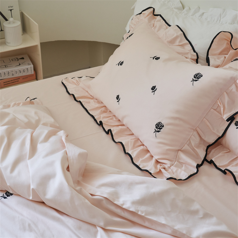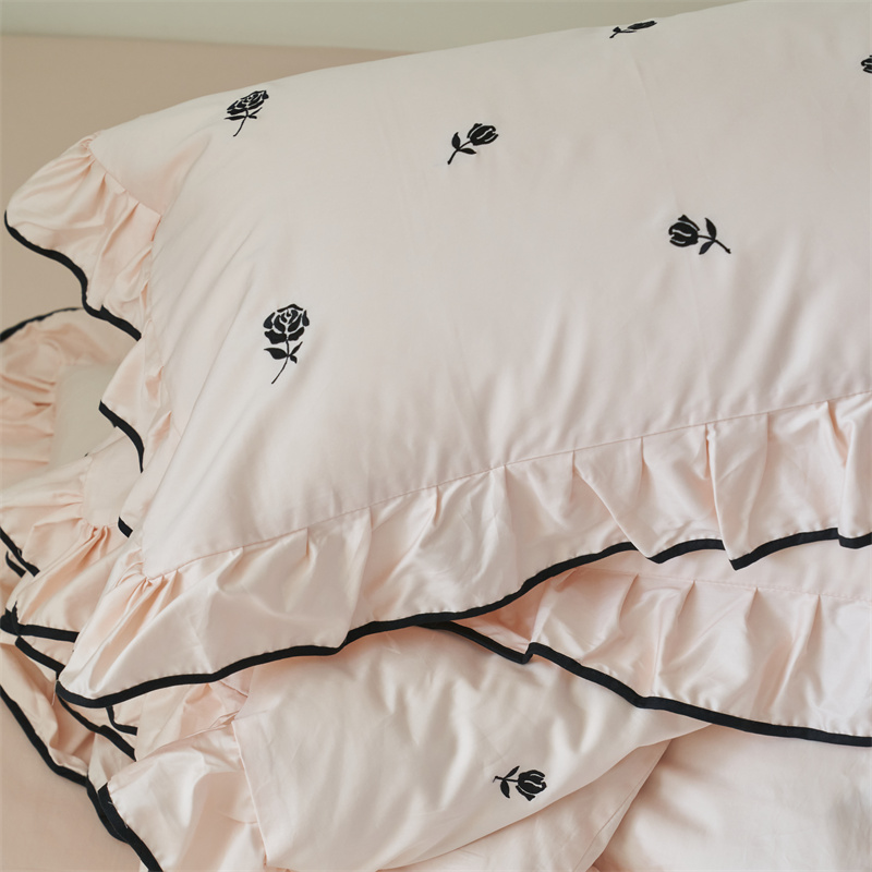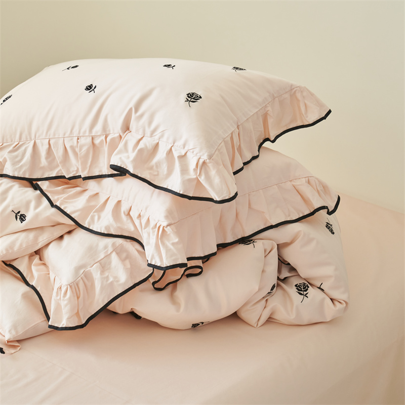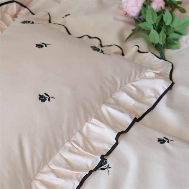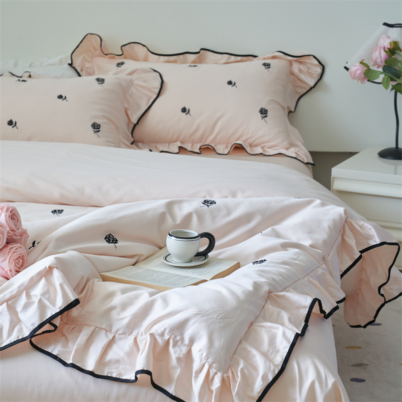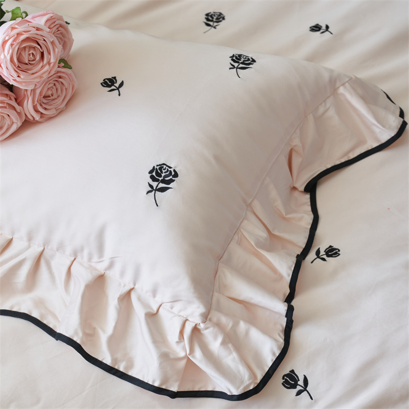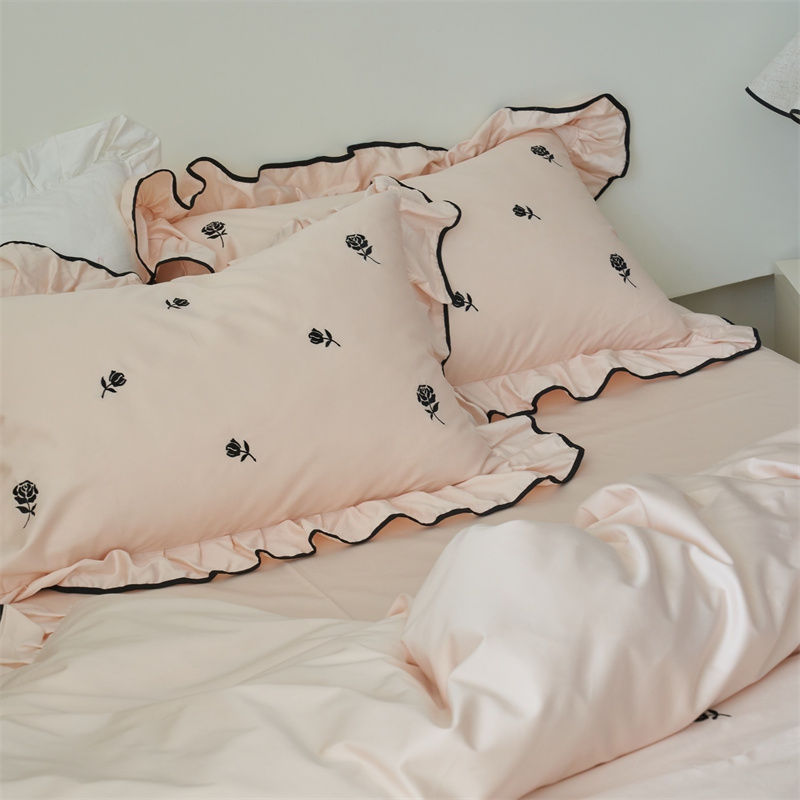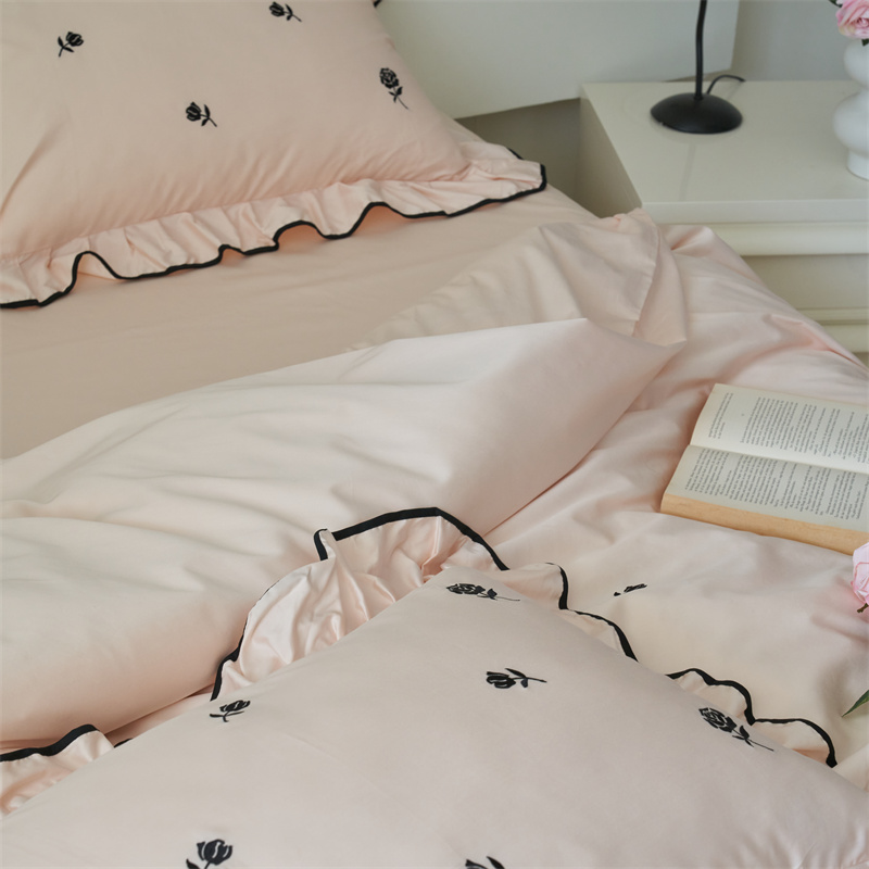 商品名称:窝米 2023新款100支长绒棉刺绣款四件套 玫瑰茶粉