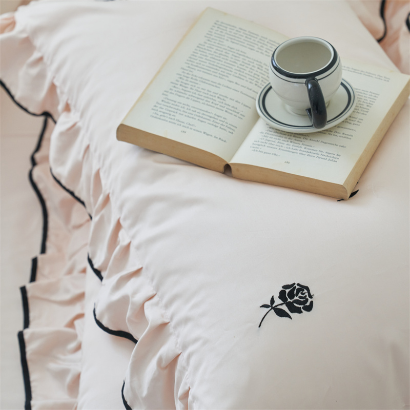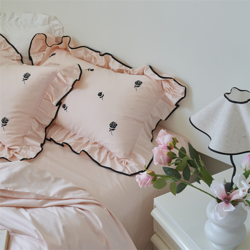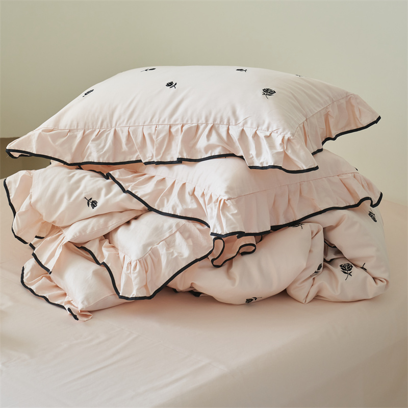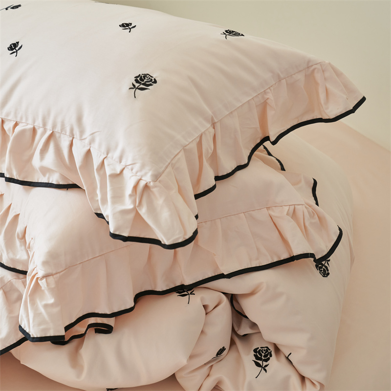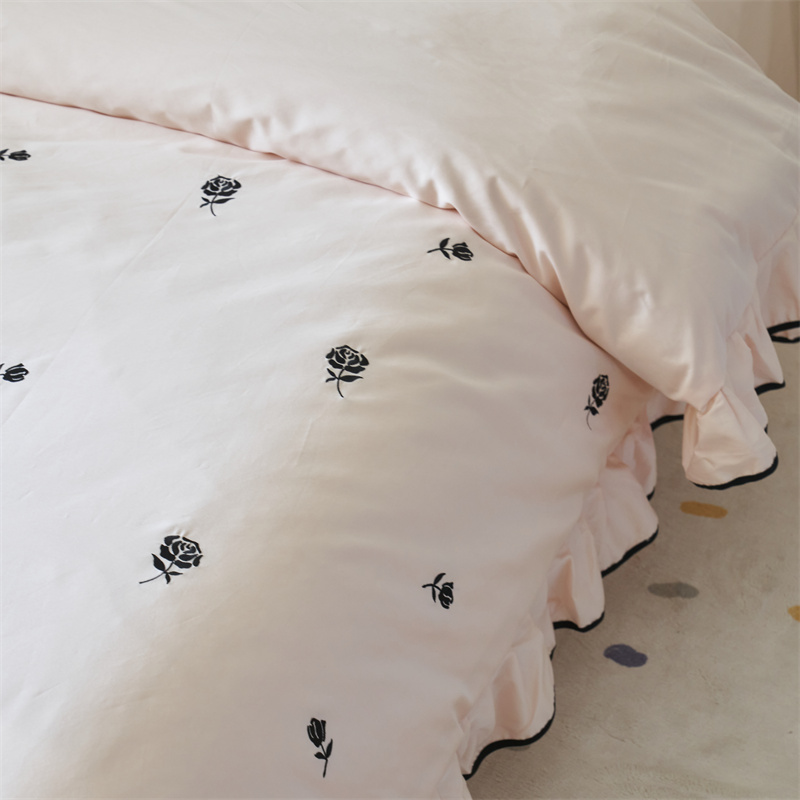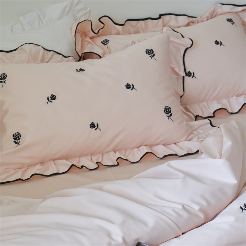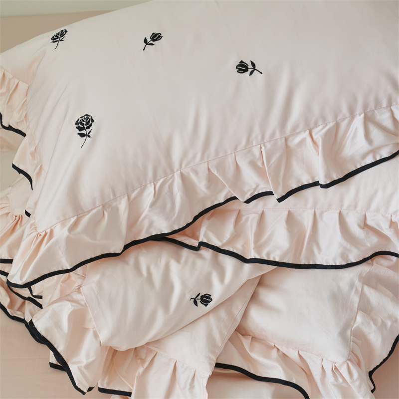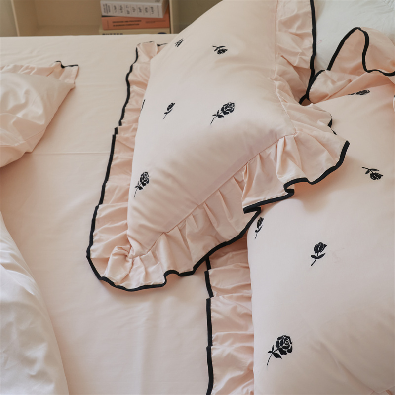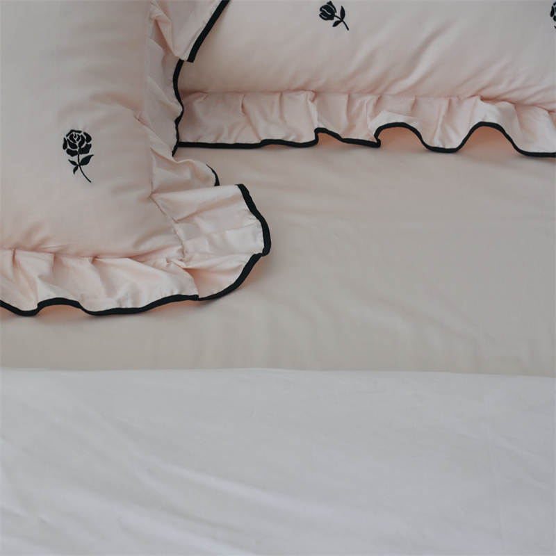 商品名称:窝米 2023新款100支长绒棉刺绣款四件套 玫瑰茶粉