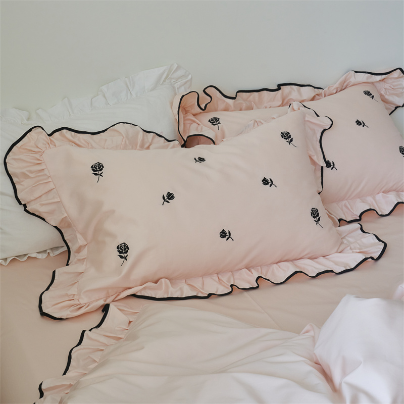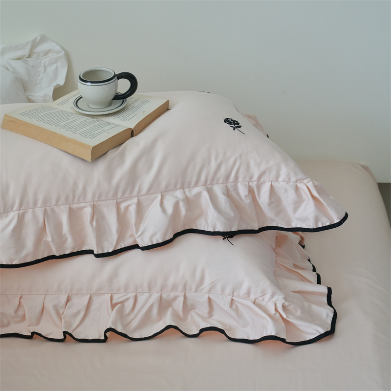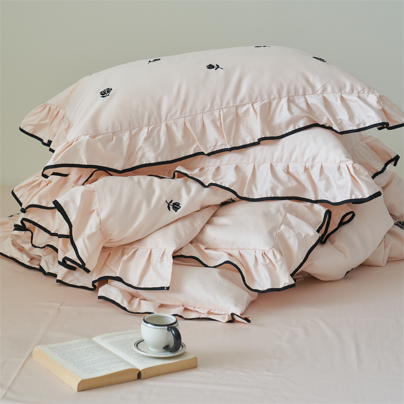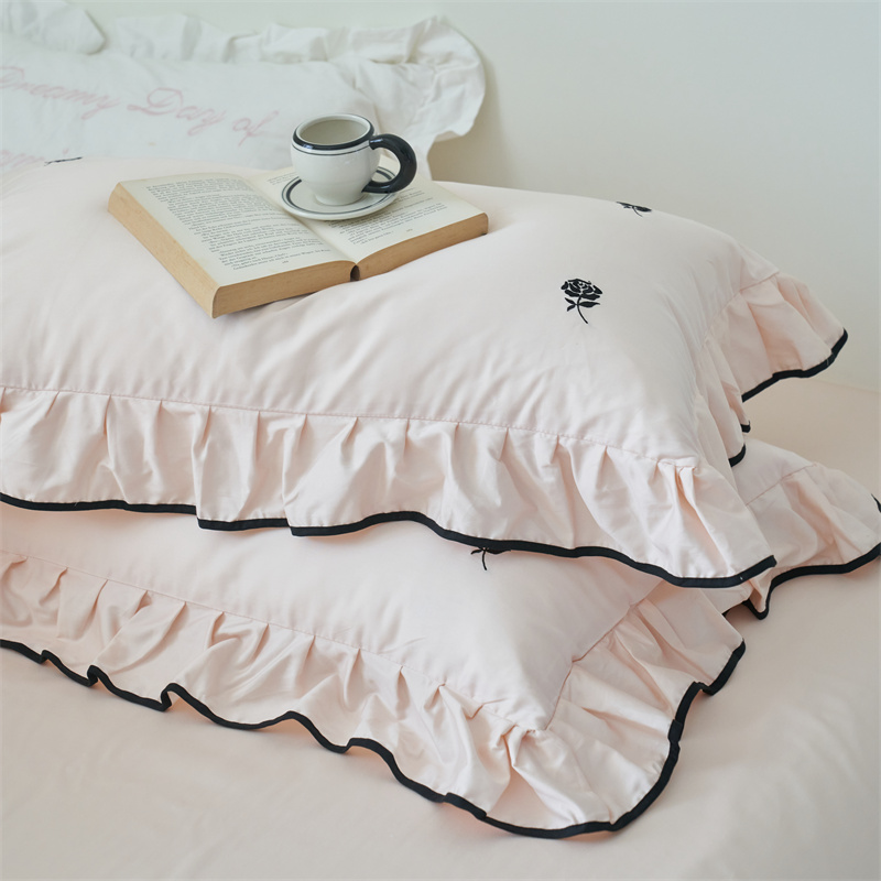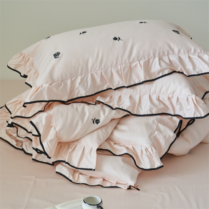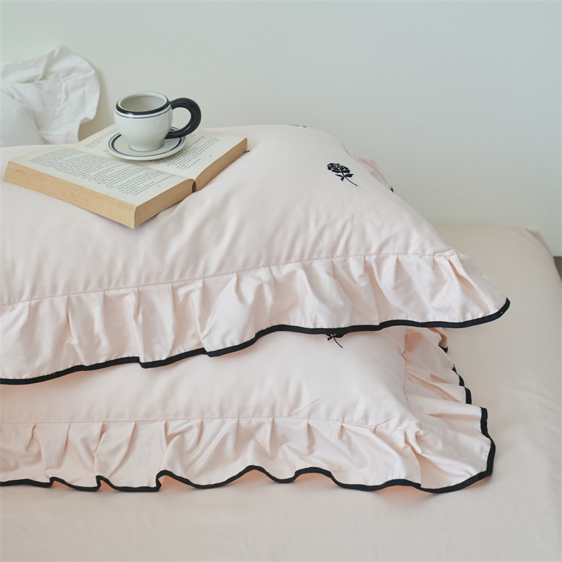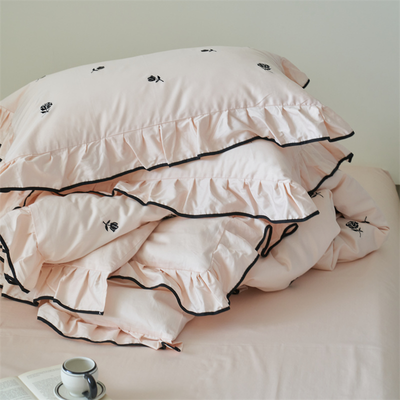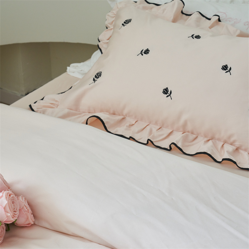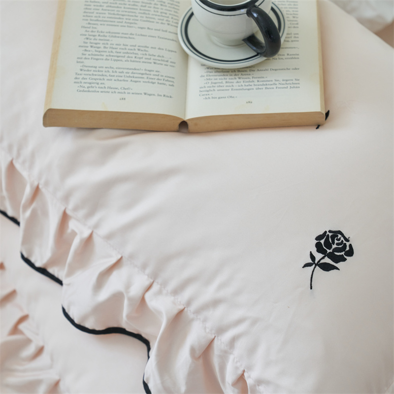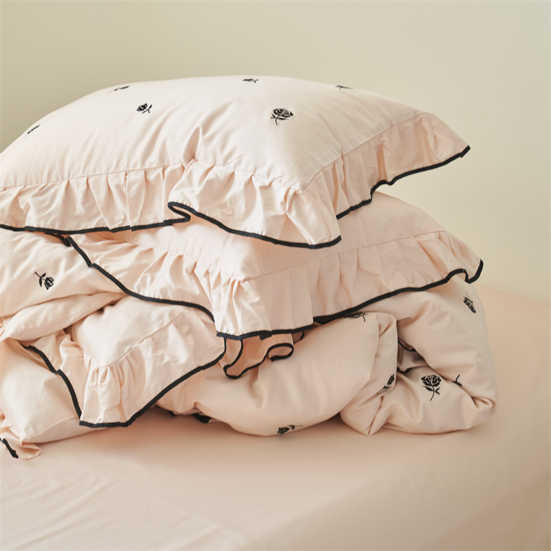 商品名称:窝米 2023新款100支长绒棉刺绣款四件套 玫瑰茶粉