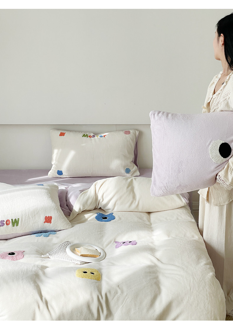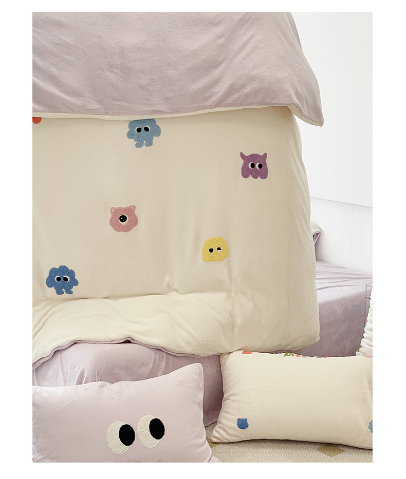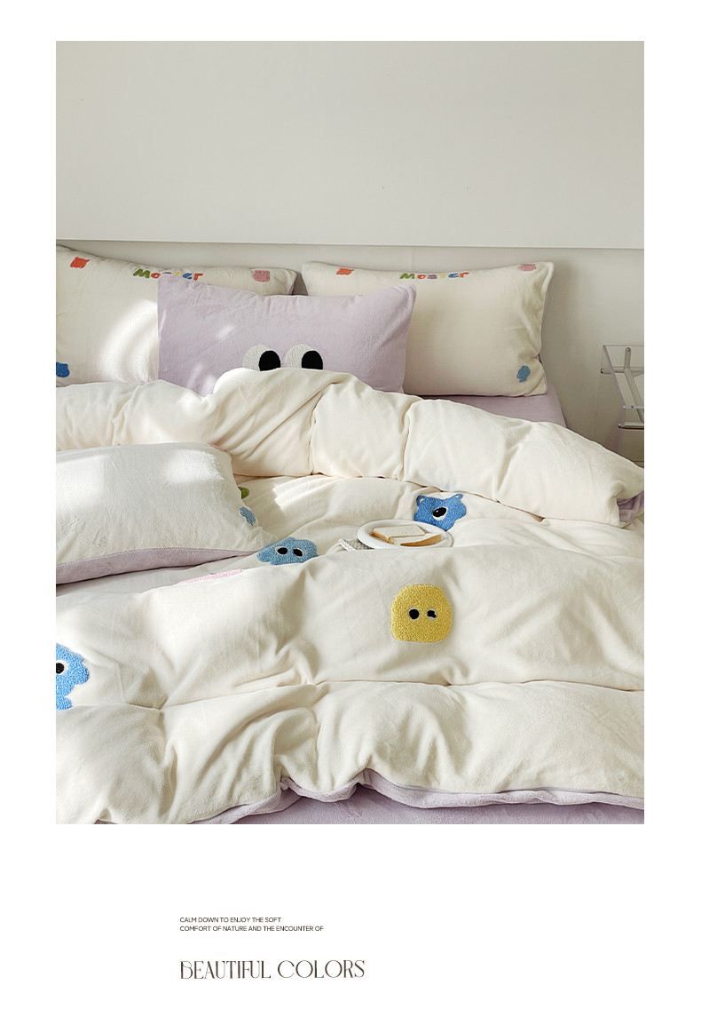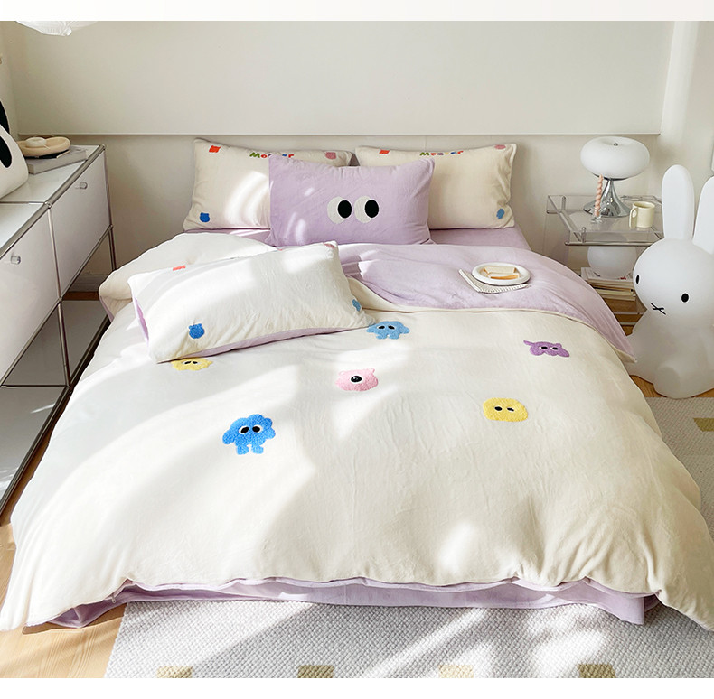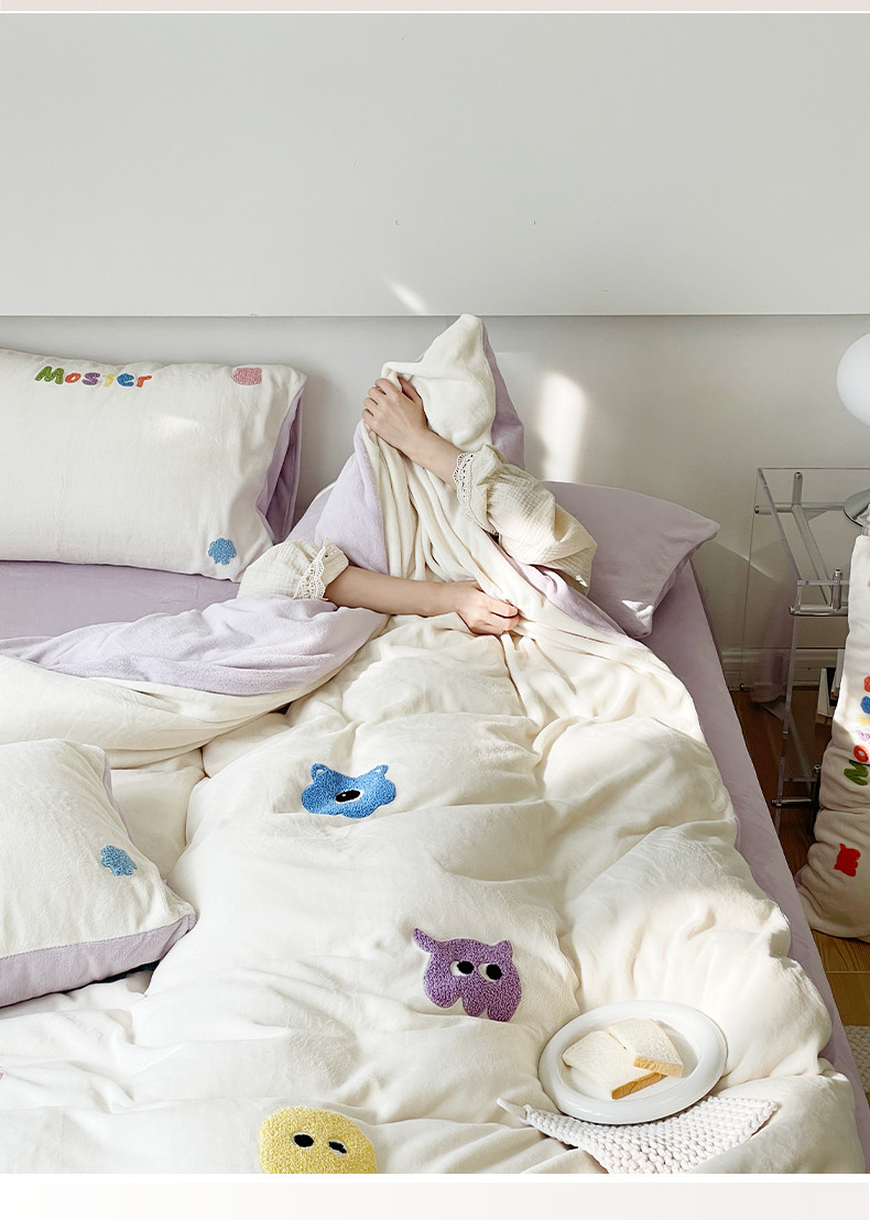 当前位置: 91家纺网 > 商品网购 > 床品套件 > 四件套 > 牛奶绒四件套 > 眠屿家纺 2023新款加厚高克重牛奶绒单边四件套 小怪兽聚会