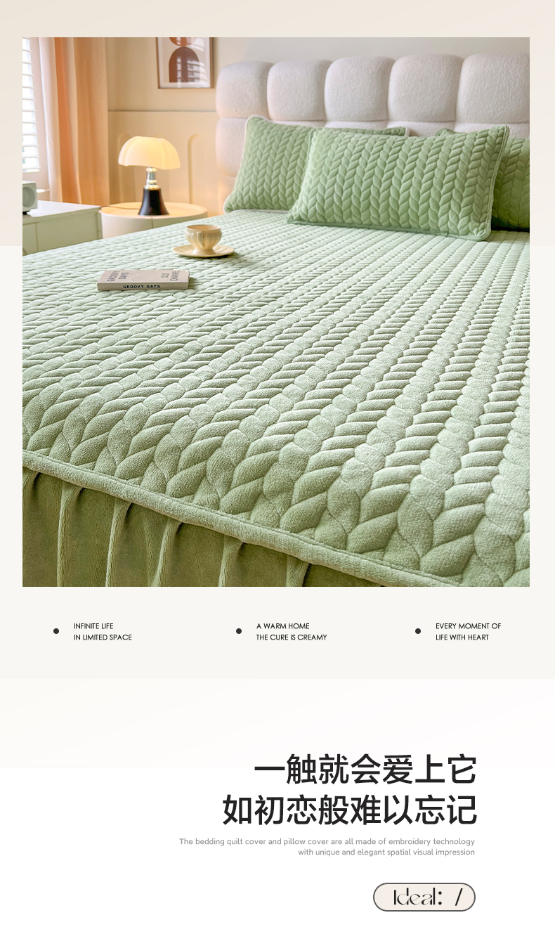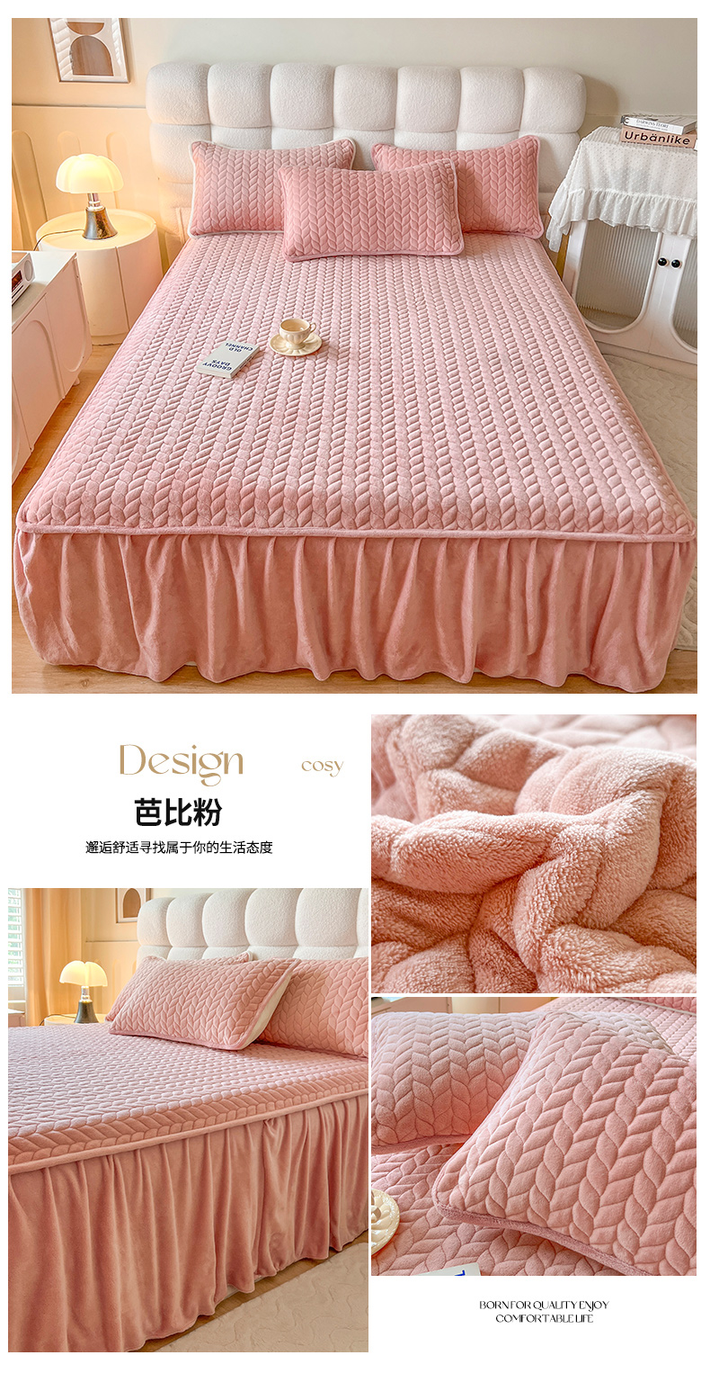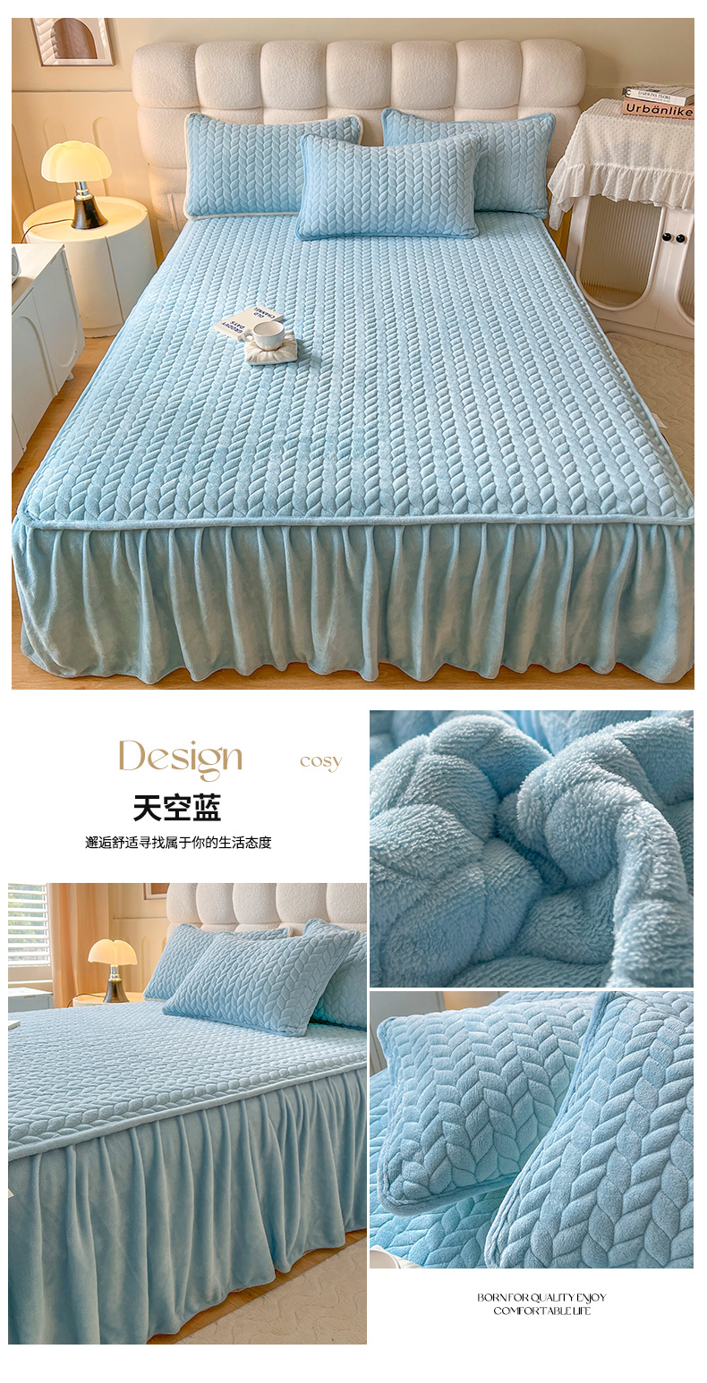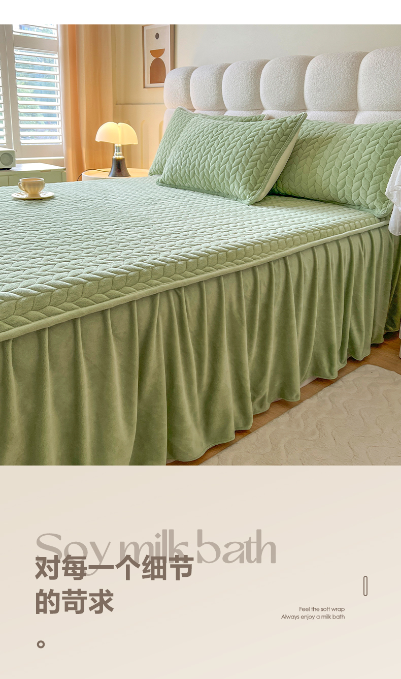 商品名称:(总)格真 2025新款高克重牛奶绒夹棉床裙三件套(裙边高度45公分)